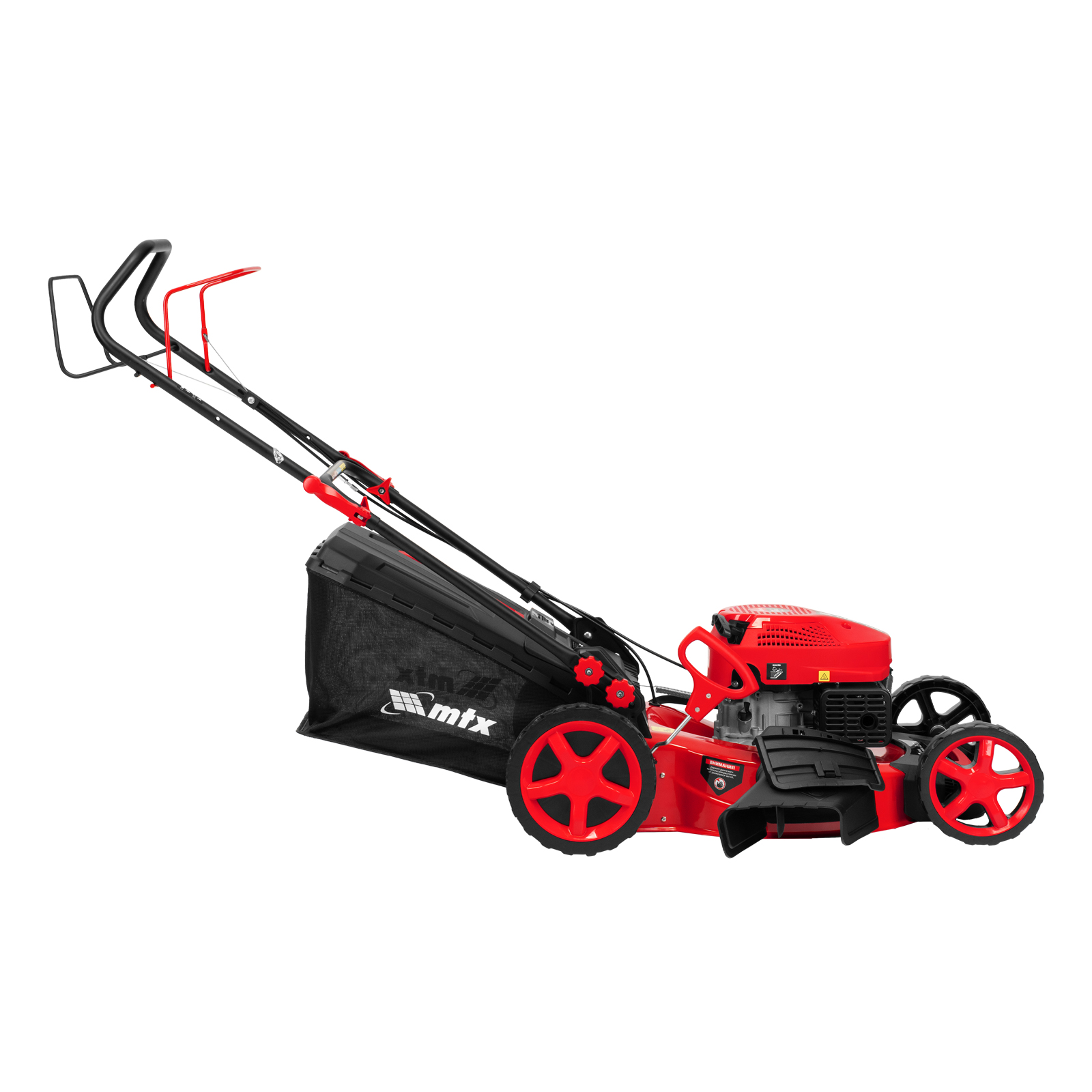 Бензиновая газонокосилка MTX GL51SP-K 58838 с двигателем объемом 170 см³, приводом на колеса и травосборником объемом 50 л обеспечивает ширину скашивания 51 см. Предназначена для кошения травы на газонах и лужайках, оптимальна для ухода за приусадебным участком небольшой площади. Высота скашивания регулируется в диапазоне 25-75 мм (предусмотрено 7 уровней) — можно привести в порядок спортивную площадку, лужайку для отдыха и т.д. Четырехтактный двигатель мощностью 4,5 л.с. позволяет эффективно решать поставленные задачи.