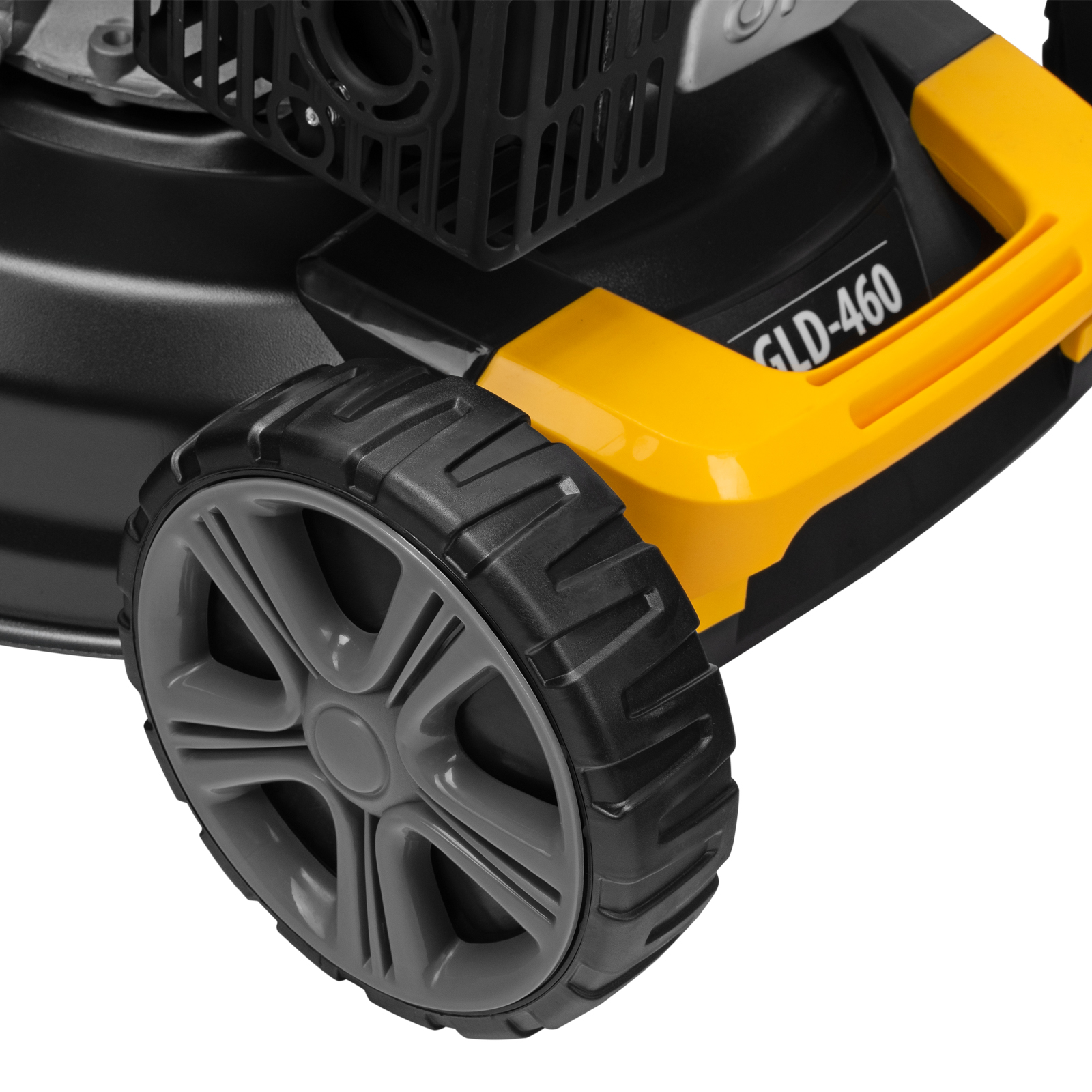 Газонокосилка бензиновая Denzel GLD-460 58802 с двигателем объемом 146 см3, ручным приводом и травосборником на 50 л, с 7 уровнями скашивания и шириной прохода 46 см, предназначена для уходом за молодой травой на приусадебном участке. Благодаря мощности двигателя 4,5 л.с. и ширине скашивания 46 см/проход за 1,5 часа удастся обработать до 2500 м2.