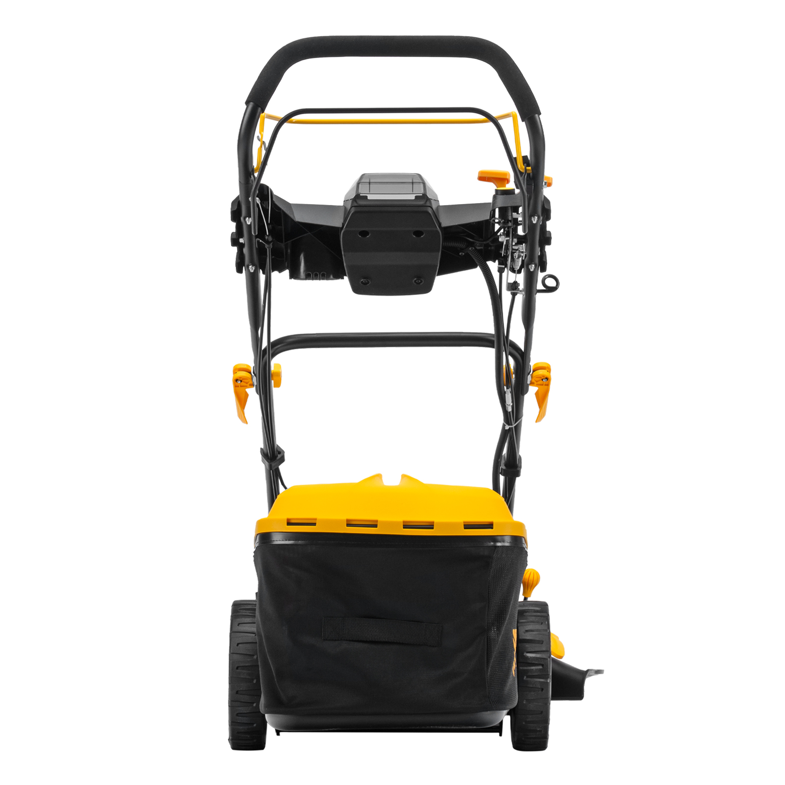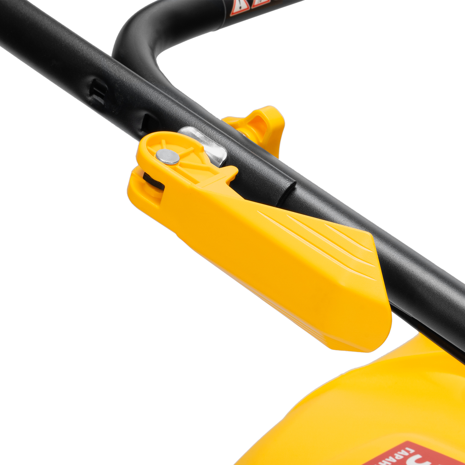- Аккуратный сбор травы и легкая очистка контейнера — компактный травосборник из ткани и пластика на 60 л не требует частого опустошения и очищается без усилий, а также удобен в хранении.