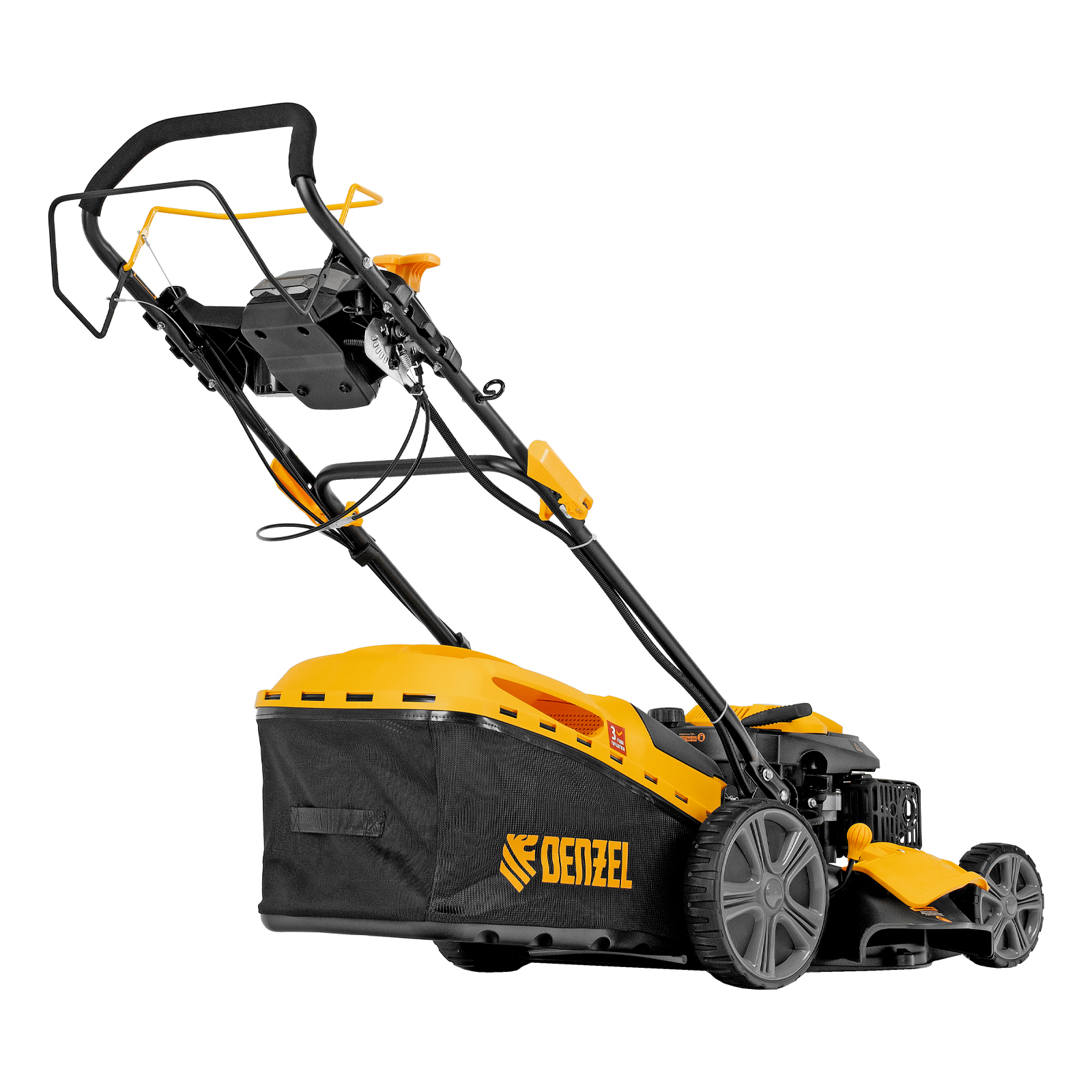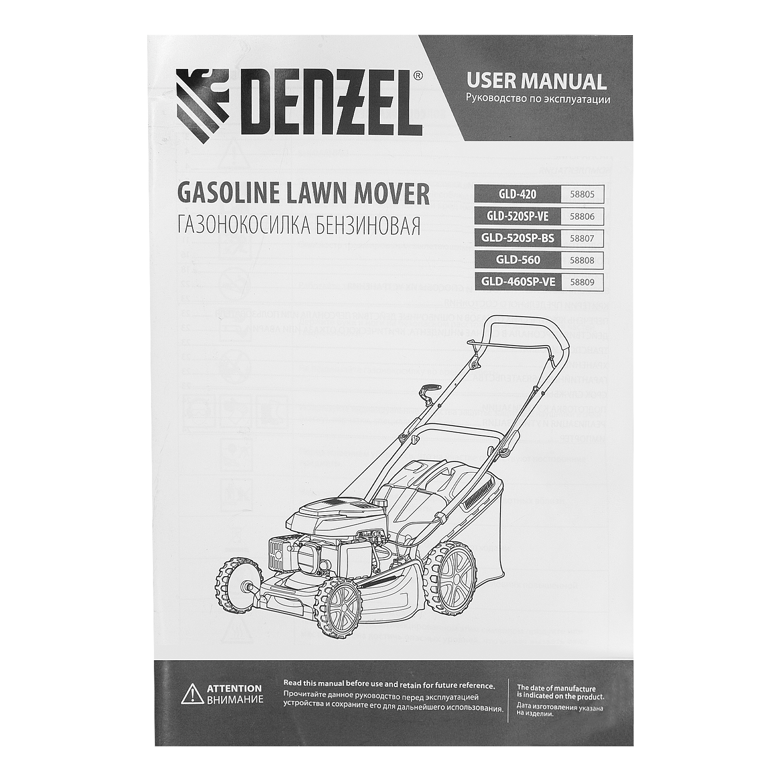 Бензиновая газонокосилка Denzel GLD-460SP-VE 58809 с приводом на колеса и вариатором оснащена двигателем объемом 146 см³ и электрическим стартером. Обеспечивает ширину скашивания 46 см за один проход и собирает траву в контейнер объемом 60 л. Идеально подходит для благоустройства дачной территории, обновления газонов и дорожек. Благодаря двигателю мощностью 4,5 л.с. справляется даже с густым бурьяном.,Ширина прохода составляет 46 см, за 1 час можно обработать участок площадью более 1220 м². Высота среза регулируется при помощи рычага в соответствии с типом газона (всего 7 уровней, от 25 до 75 мм). Можно получить идеально ровный и низко подстриженный парадный покров или площадку для спортивных игр, функциональную лужайку с травой 4-6 см или садово-парковый газон с максимально высокой растительностью.