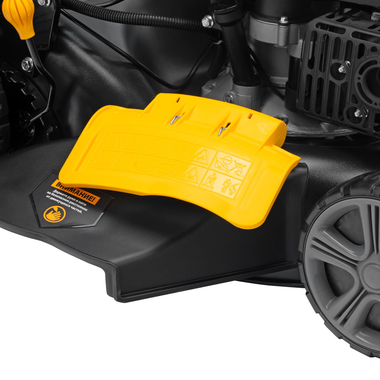- Оптимизированная геометрия деки — форма корпуса обеспечивает максимальную эффективность сбора травы.