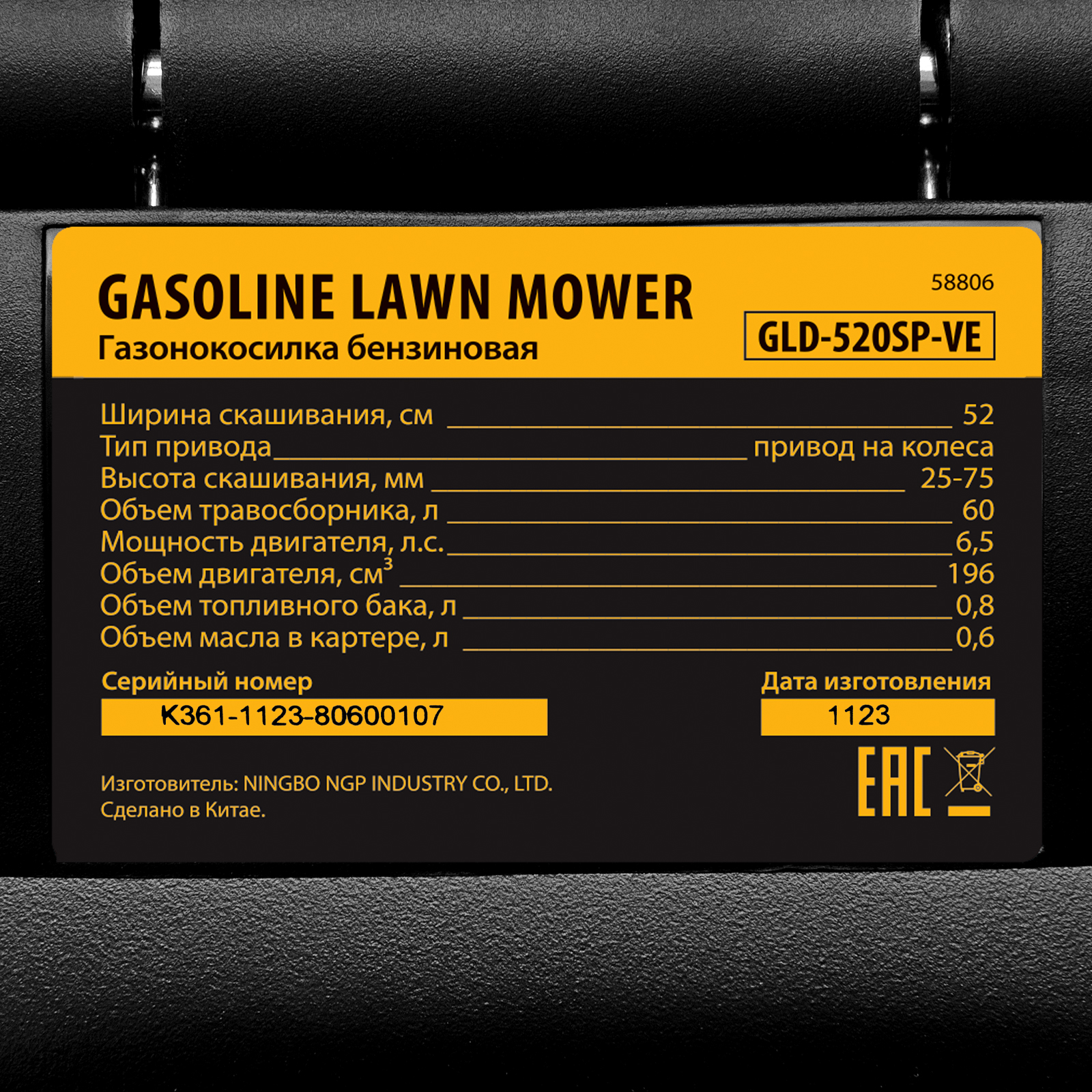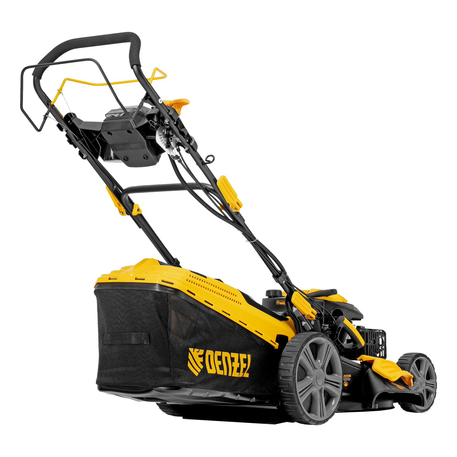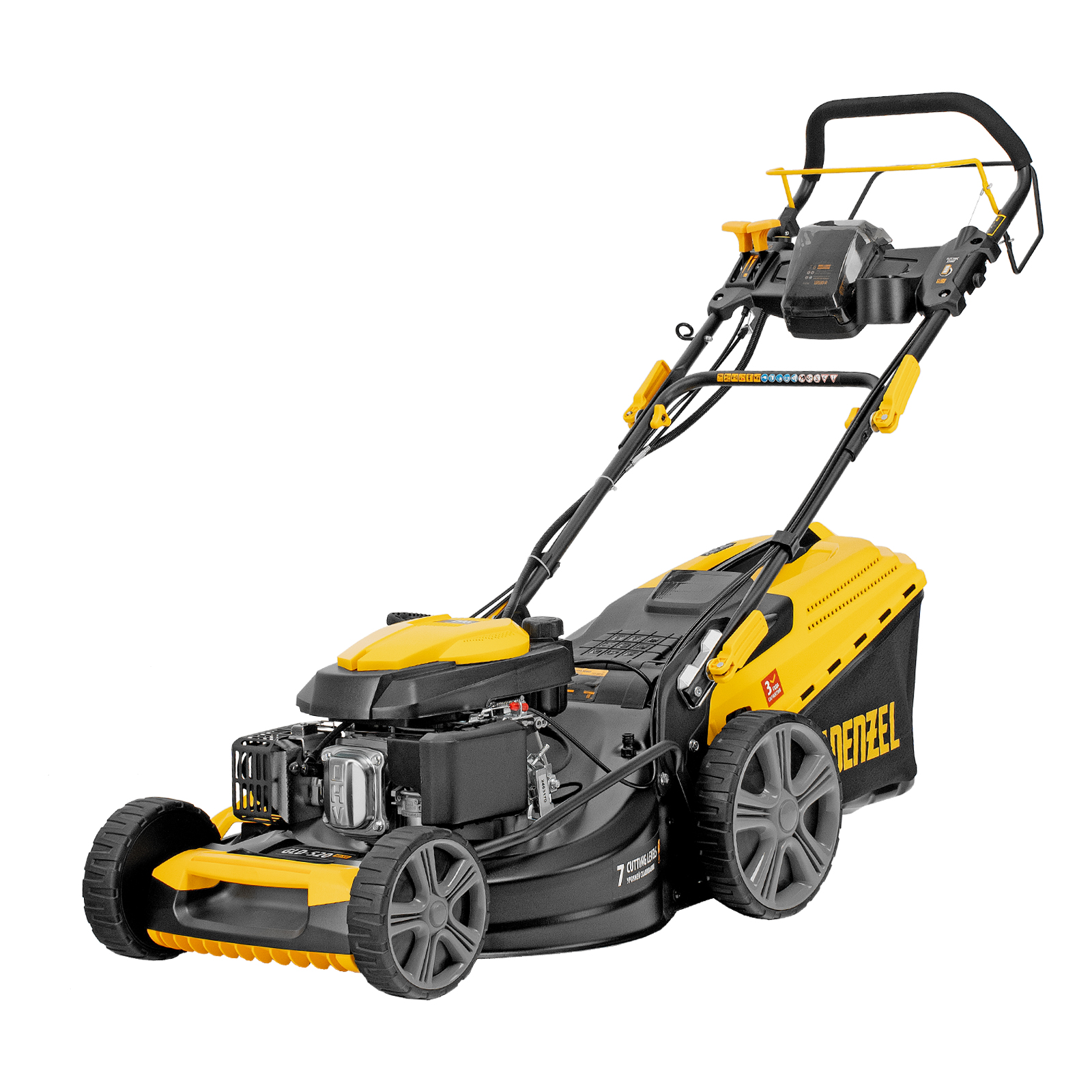 Бензиновая газонокосилка Denzel GLD-520SP-VE 58806 с приводом на колеса и вариатором оснащена двигателем объемом 196 см³ и электрическим стартом. Обеспечивает ширину скашивания 52 см за один проход и собирает траву в контейнер объемом 60 л. Идеально подходит для благоустройства дачной территории, обновления газонов и дорожек. Благодаря двигателю мощностью 6,5 л.с. справляется даже с густым бурьяном.,Ширина прохода составляет 52 см, за 1 час можно обработать участок площадью более 1800 м². Высота среза регулируется при помощи рычага в соответствии с типом газона (всего 7 уровней, от 25 до 75 мм). Можно получить идеально ровный и низко подстриженный парадный покров или площадку для спортивных игр, функциональную лужайку с травой 4-6 см или садово-парковый газон с максимально высокой растительностью.