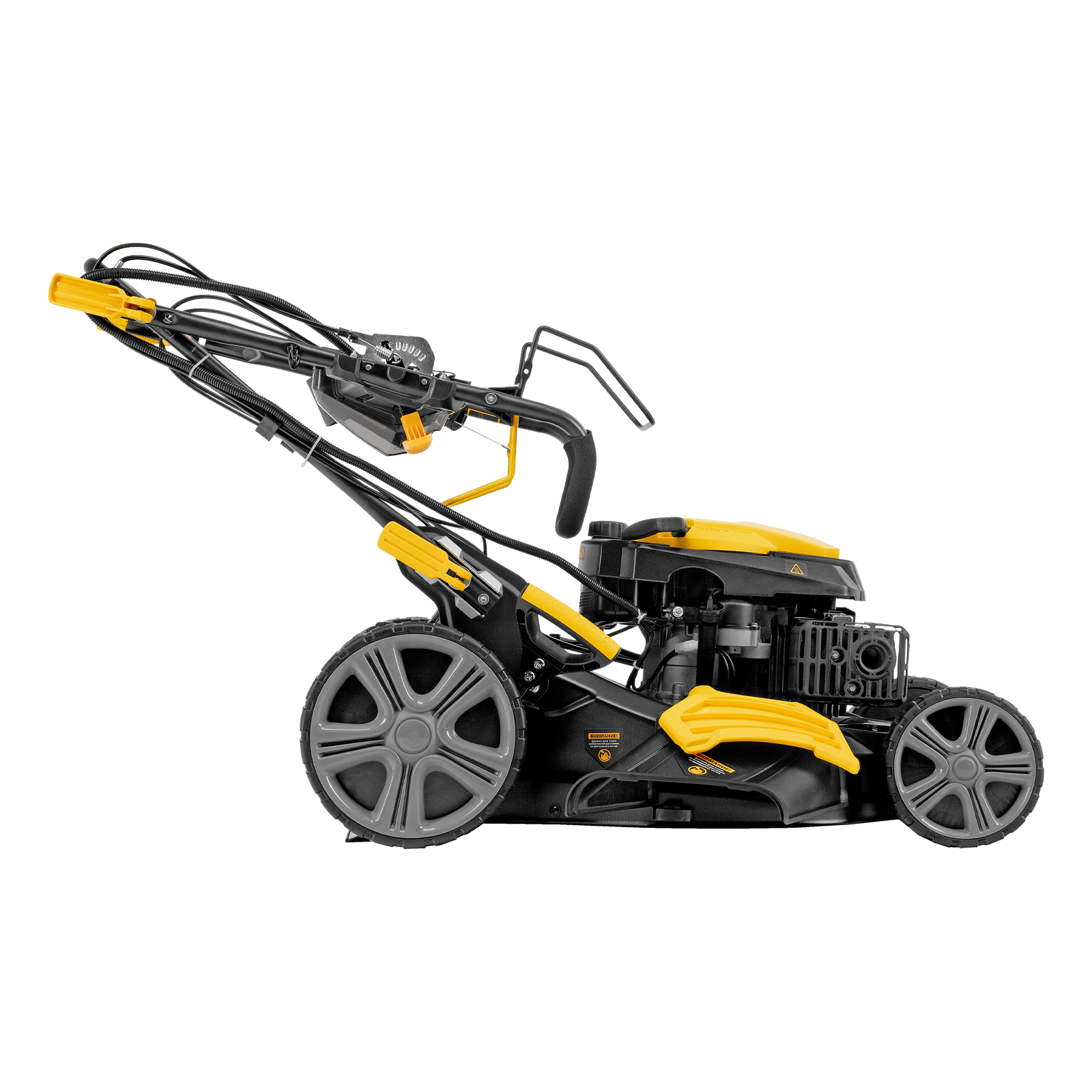 - Привод на колеса — достаточно только направлять косилку, ее не нужно постоянно толкать.