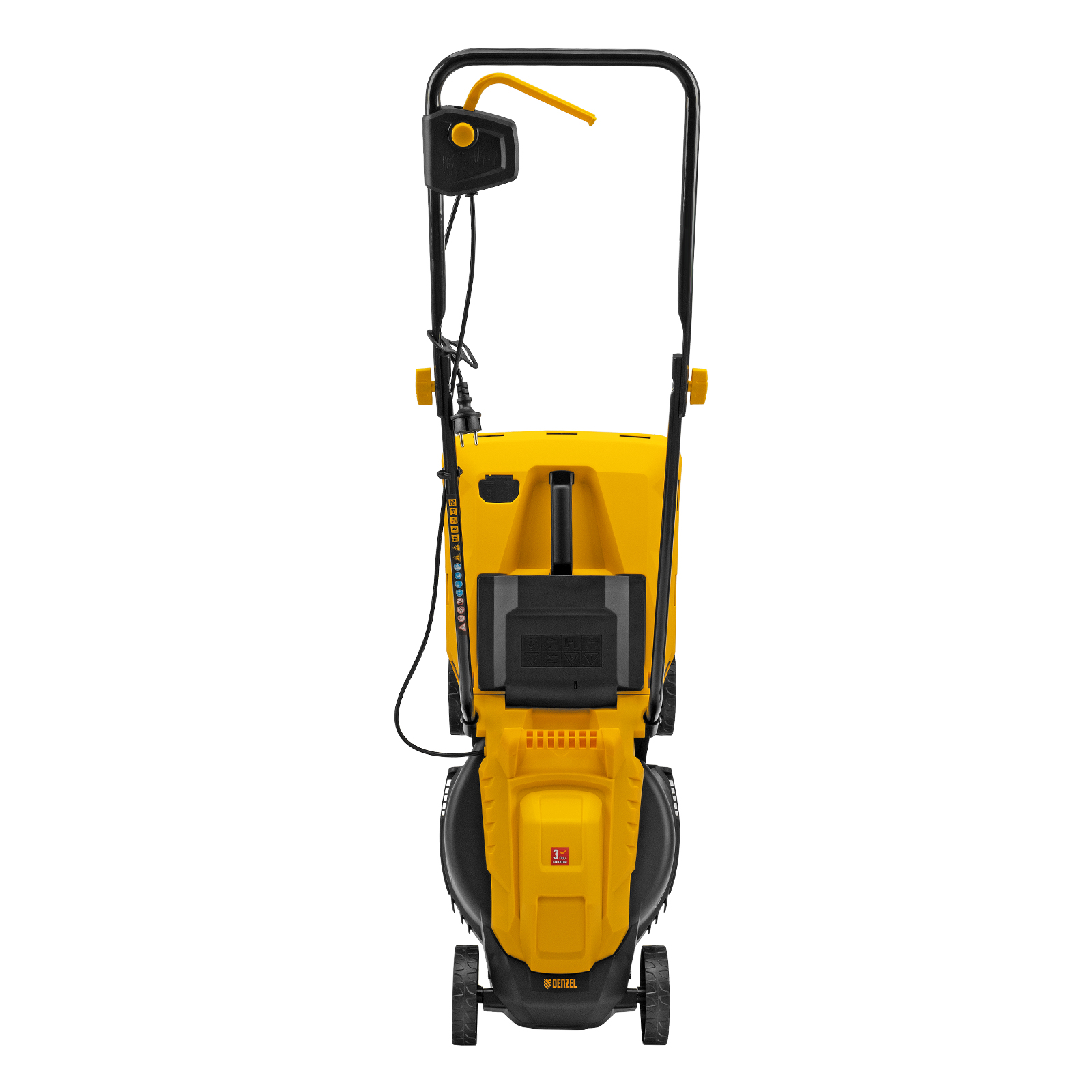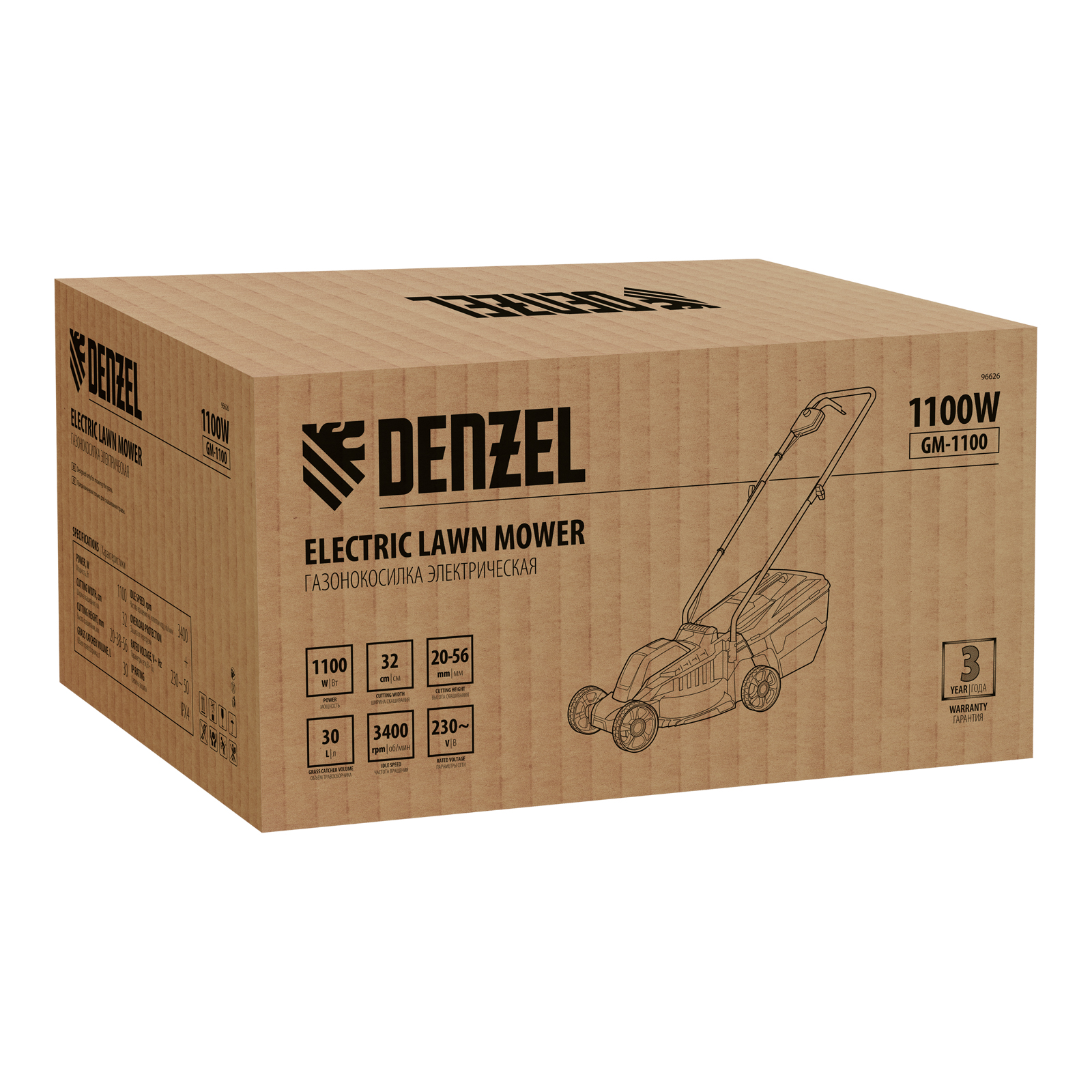 Газонокосилка электрическая Denzel GM-1100 96626 мощностью 1100 Вт, с травосборником объемом 30 л и 3 уровнями скашивания, обеспечивает ширину прохода 32 см и предназначена для стрижки газонов, кошения травы в саду и на небольшом приусадебном участке. Высота скашивания устанавливается на уровне 30, 50 или 70 мм в зависимости от типа газона. Газонокосилка проста в управлении и обслуживании, с ней легко справится неопытный пользователь.