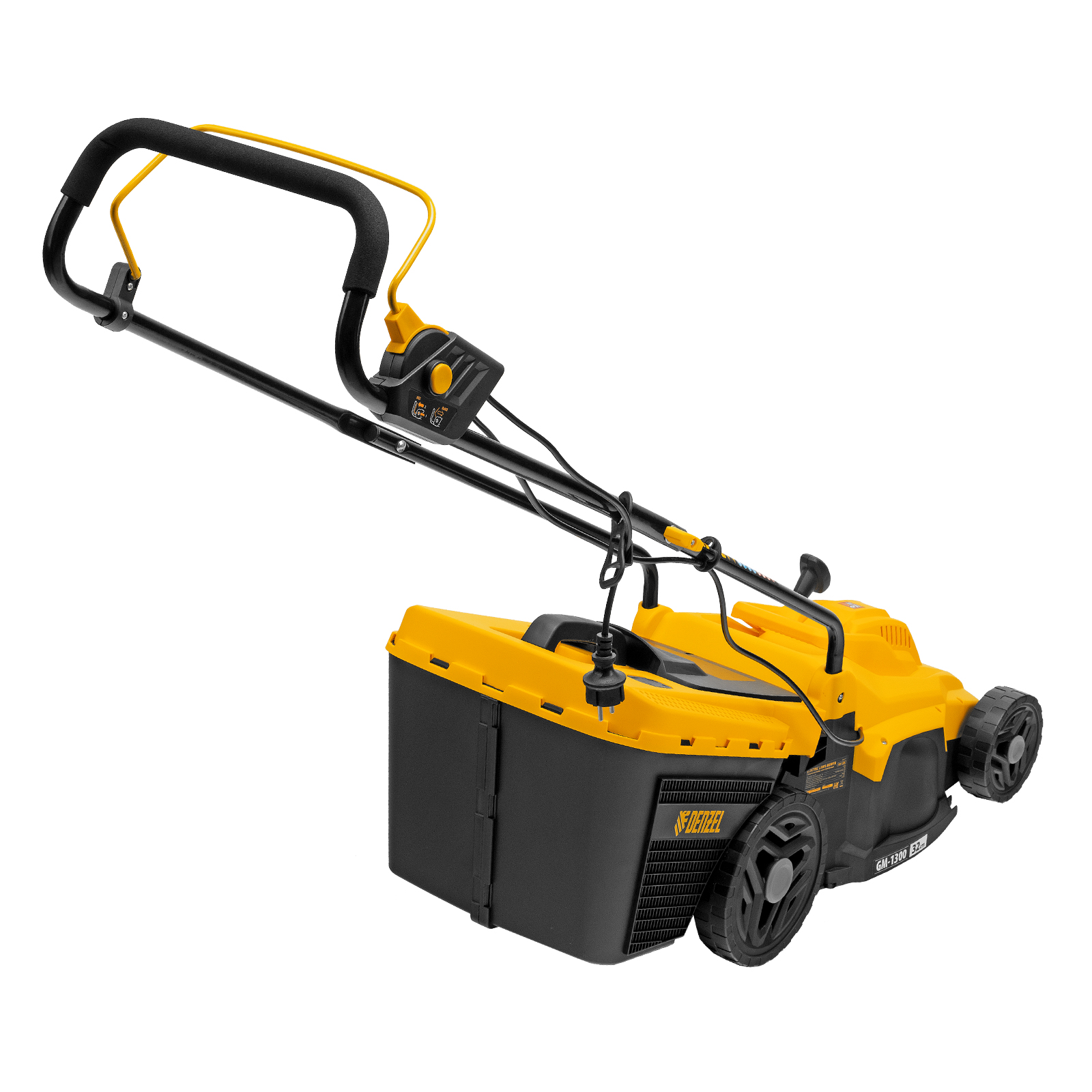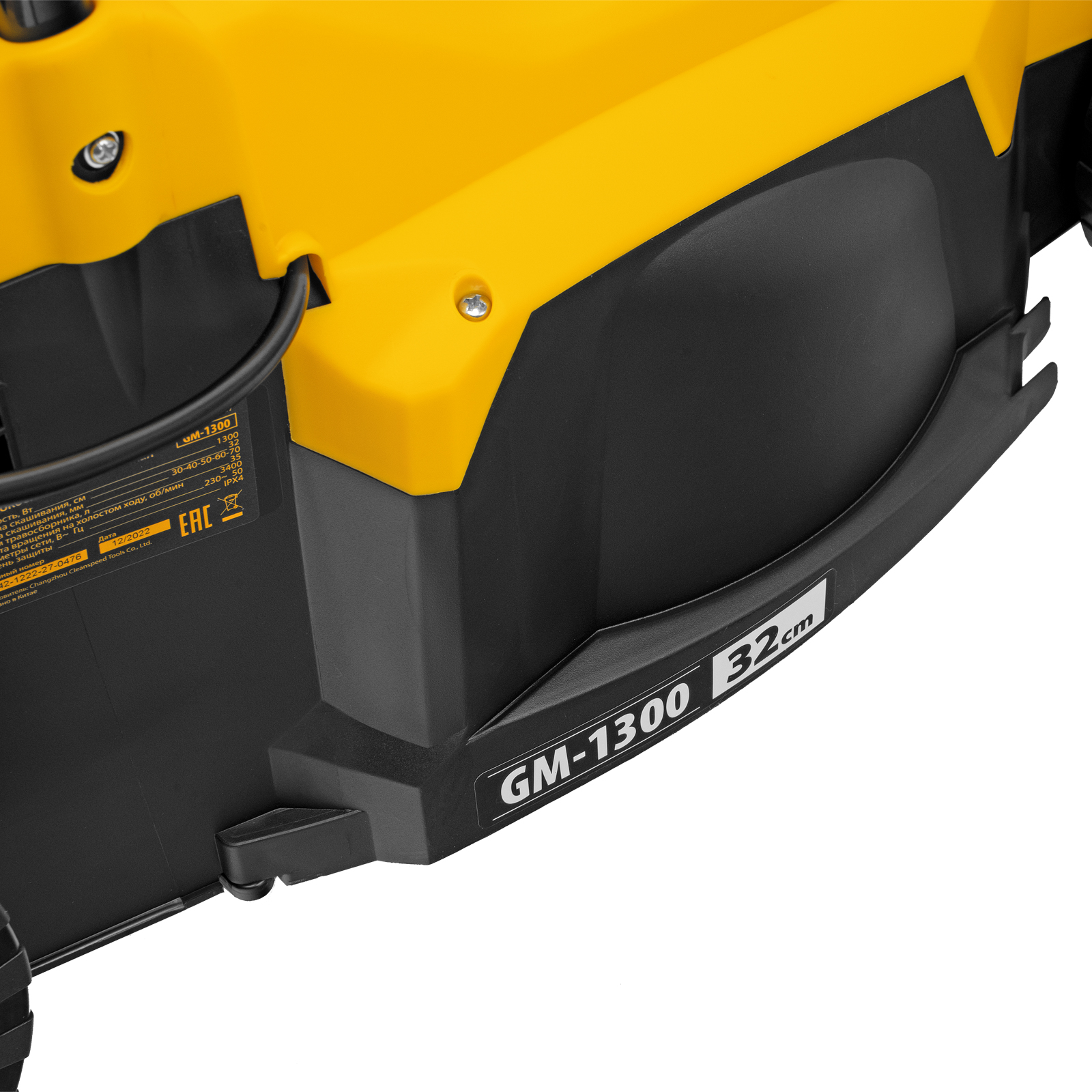 Газонокосилка электрическая Denzel GM-1300 96627 мощностью 1300 Вт, с травосборником объемом 35 л и 5 уровнями скашивания, обеспечивает ширину прохода 32 см и предназначена для стрижки газонов, кошения травы в саду и на небольшом приусадебном участке. Предусмотрена 5-ступенчатая регулировка высоты скашивания (от 30 до 70 мм) в зависимости от типа газона. Газонокосилка проста в управлении и обслуживании, с ней легко справится неопытный пользователь.