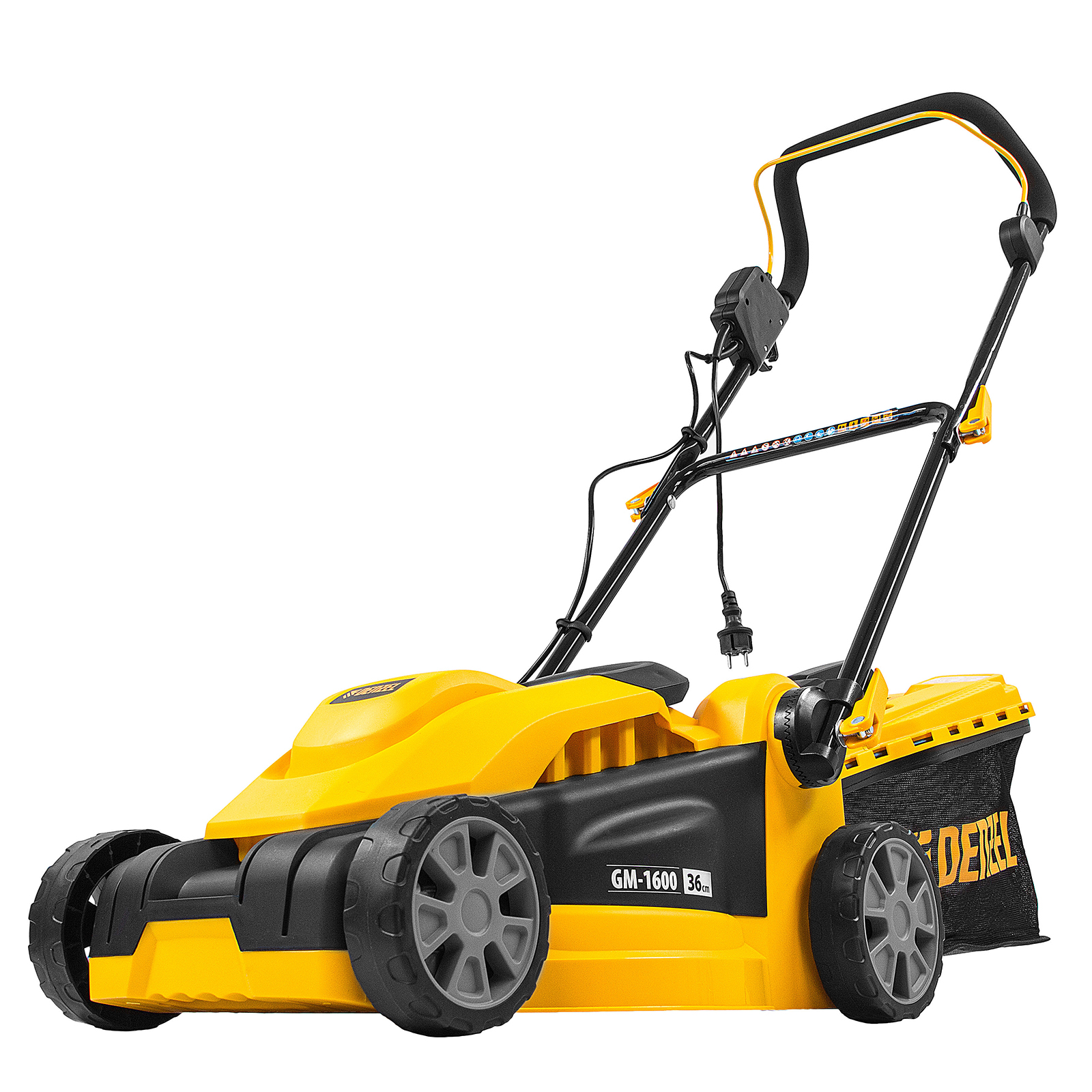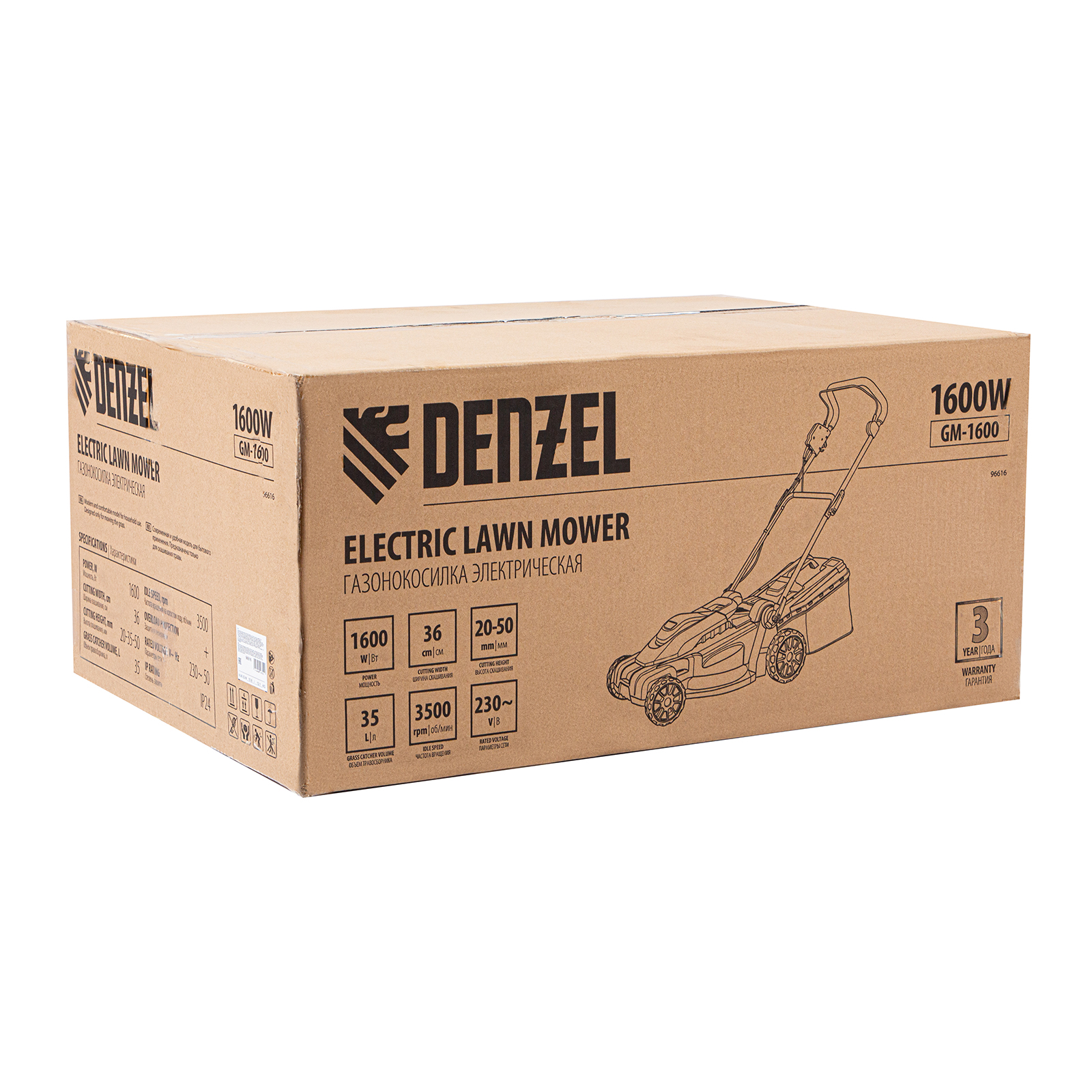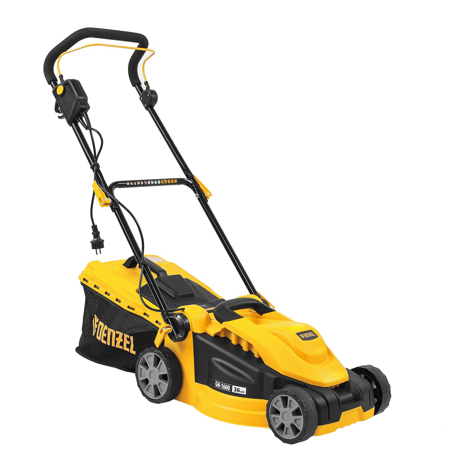 Электрическая газонокосилка Denzel GM-1600 96665 с 3 уровнями скашивания и травосборником на 35 л — маневренная и простая в управлении техника, обеспечивающая ширину скашивания 96 см. Быстро справляется с работой на небольшом участке площадью примерно 4 сотки, помогает оформлять аккуратный газон на дачном участке. Для достижения наилучшего результата предусмотрено 3 уровня скашивания травы: 20 мм, 35 мм и 50 мм.,Косилка не требует особых навыков и сложного технического обслуживания — не нужно менять масло и свечи, заливать и сливать бензин, долго заводить и прогревать двигатель. Электродвигатель мощностью 1600 Вт работает тихо и без вредных выхлопов, он экологичен и экономичен.