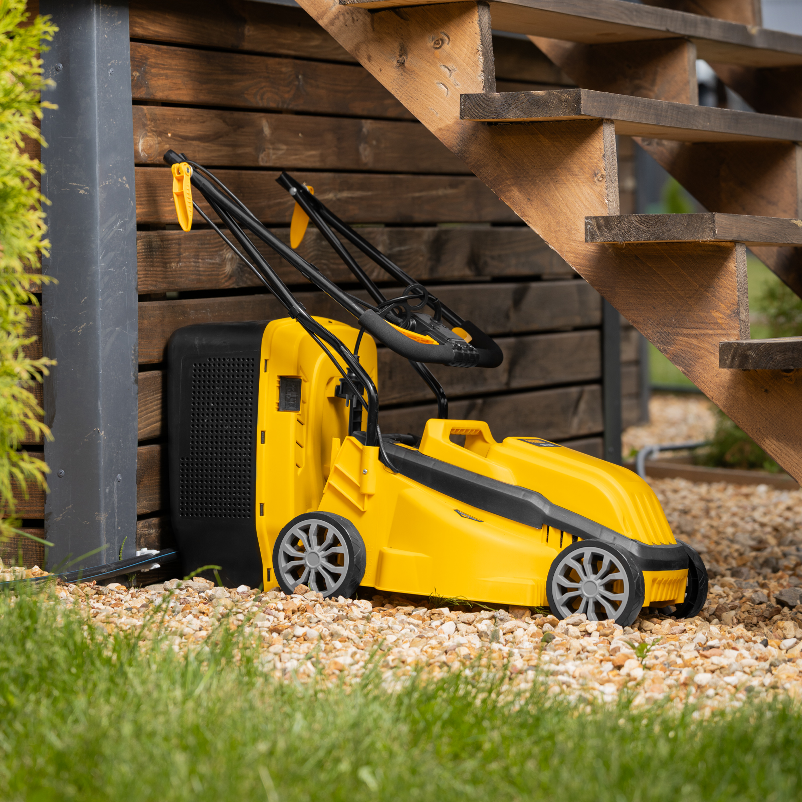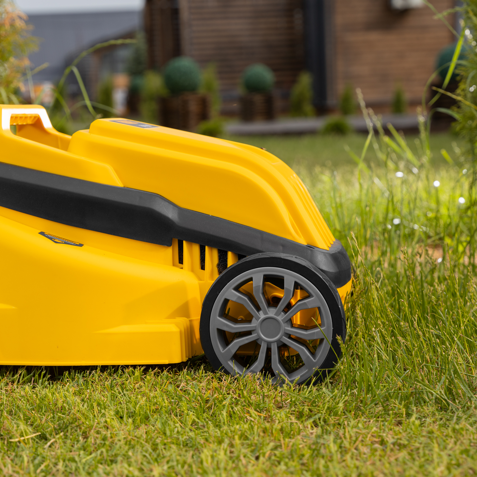 - Комфортная транспортировка — газонокосилку удобно перемещать при помощи специальной рукоятки.