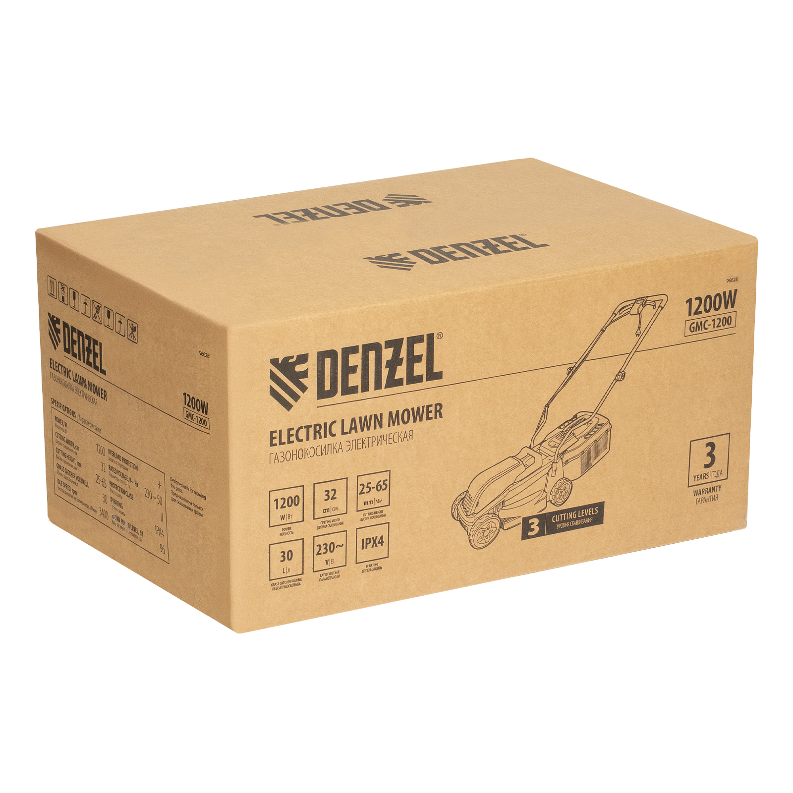 Электрическая газонокосилка Denzel GMC-1200 96628 мощностью 1200 Вт, с травосборником объемом 30 л, обеспечивает ширину скашивания 32 см и позволяет регулировать высоту скашивания — предусмотрено 3 уровня. Предназначена для ухода за газоном и садом, оптимальна для бытового применения. Можно выбрать тип травяного покрытия, установив 1 из 3 уровней высоты в диапазоне от 25 до 65 мм. Газонокосилка пригодится владельцам небольших дачных участков.
