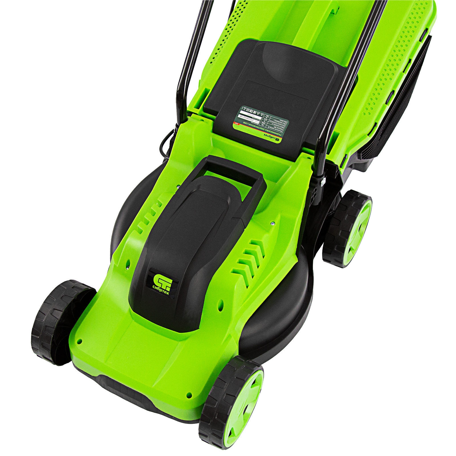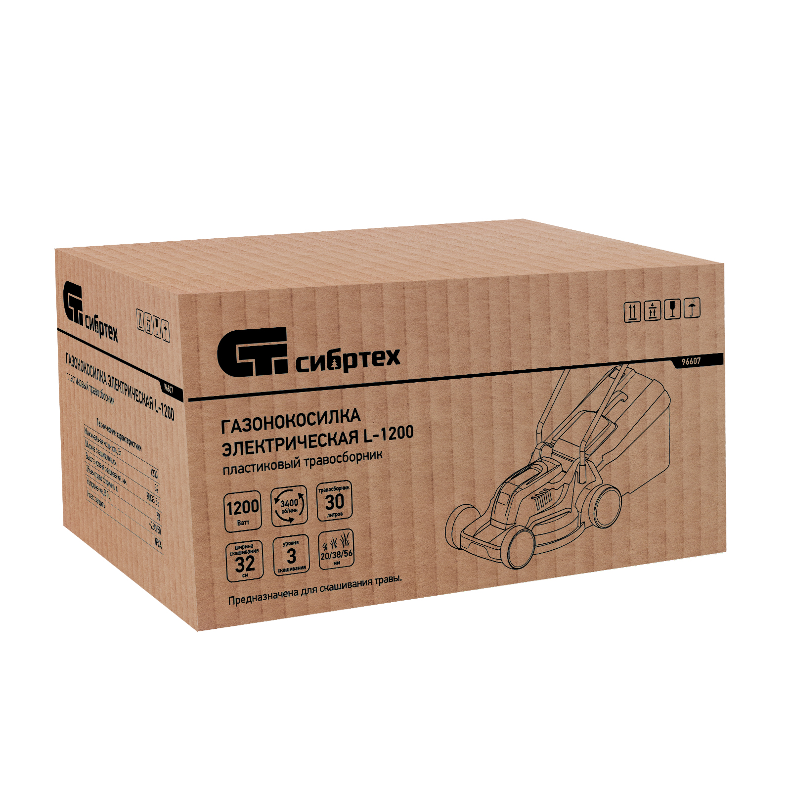 Электрическая газонокосилка Сибртех L1200 96607 мощностью 1200 Вт, с 3 уровнями скашивания, оснащена пластиковым травосборником на 30 л, а ширина ее прохода составляет 32 см. В зависимости от поставленных задач можно установить уровень скашивания 20, 38 и 56 мм. Косилка позволяет справиться в течение часа с газоном площадью до 1200 кв.м. Подойдет даже новичкам, т.к. очень проста в обслуживании и не требует смешивания и заливки топлива и масла.