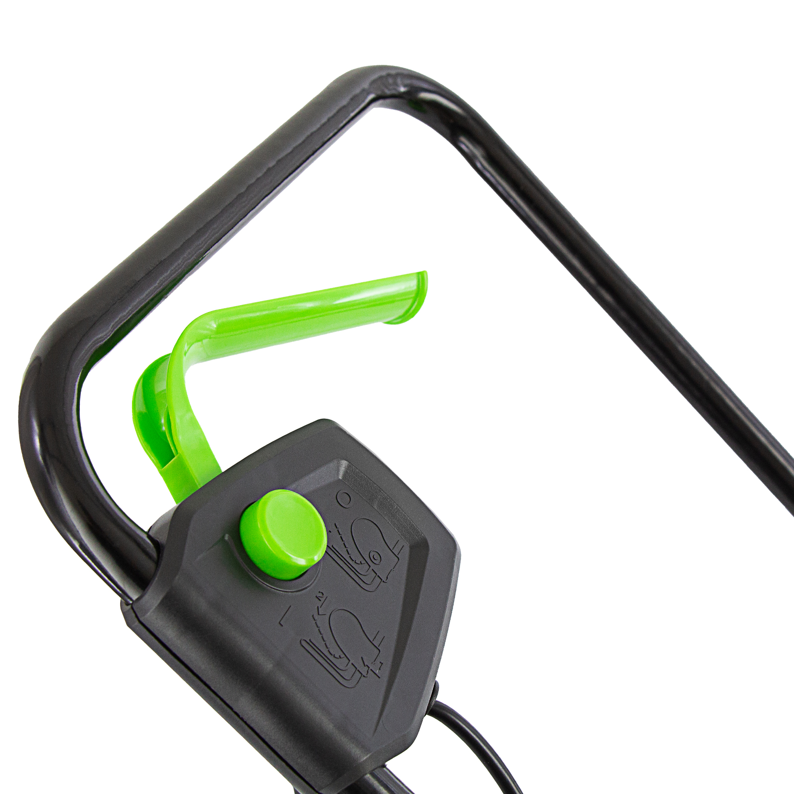 - Мобильность — удобная складная ручка и небольшой вес косилки (всего 8,2 кг) позволяют легко транспортировать ее.