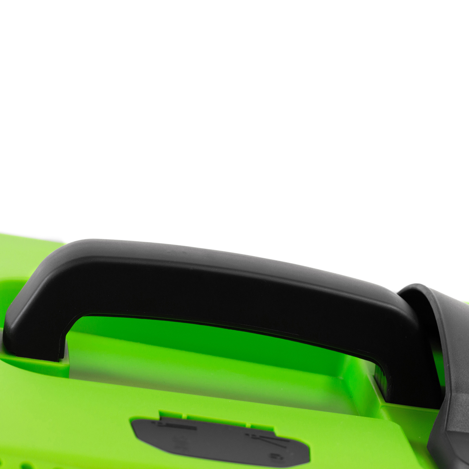 - Отдельная ручка для переноски — косилку легко поднимать за широкий пластиковый держатель.