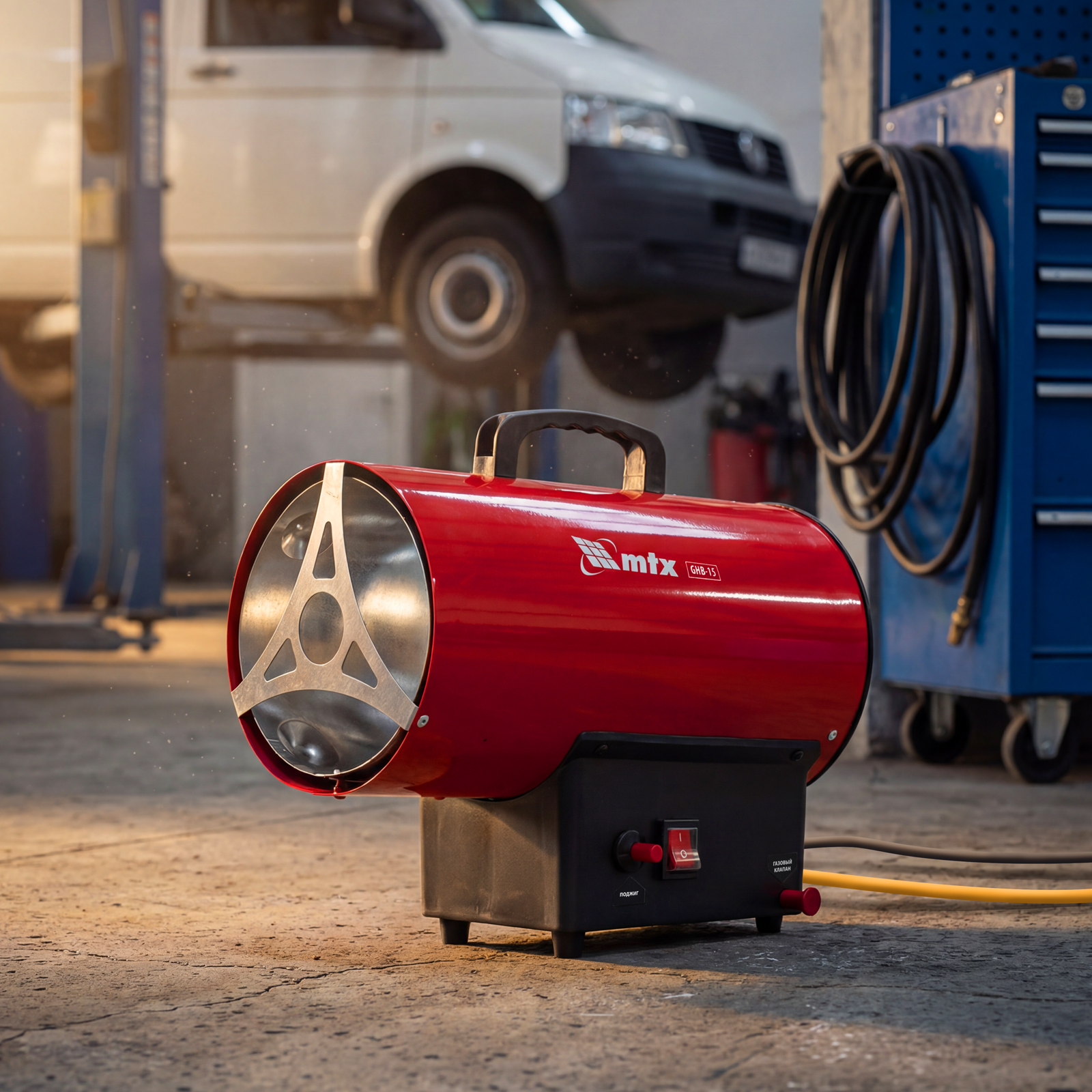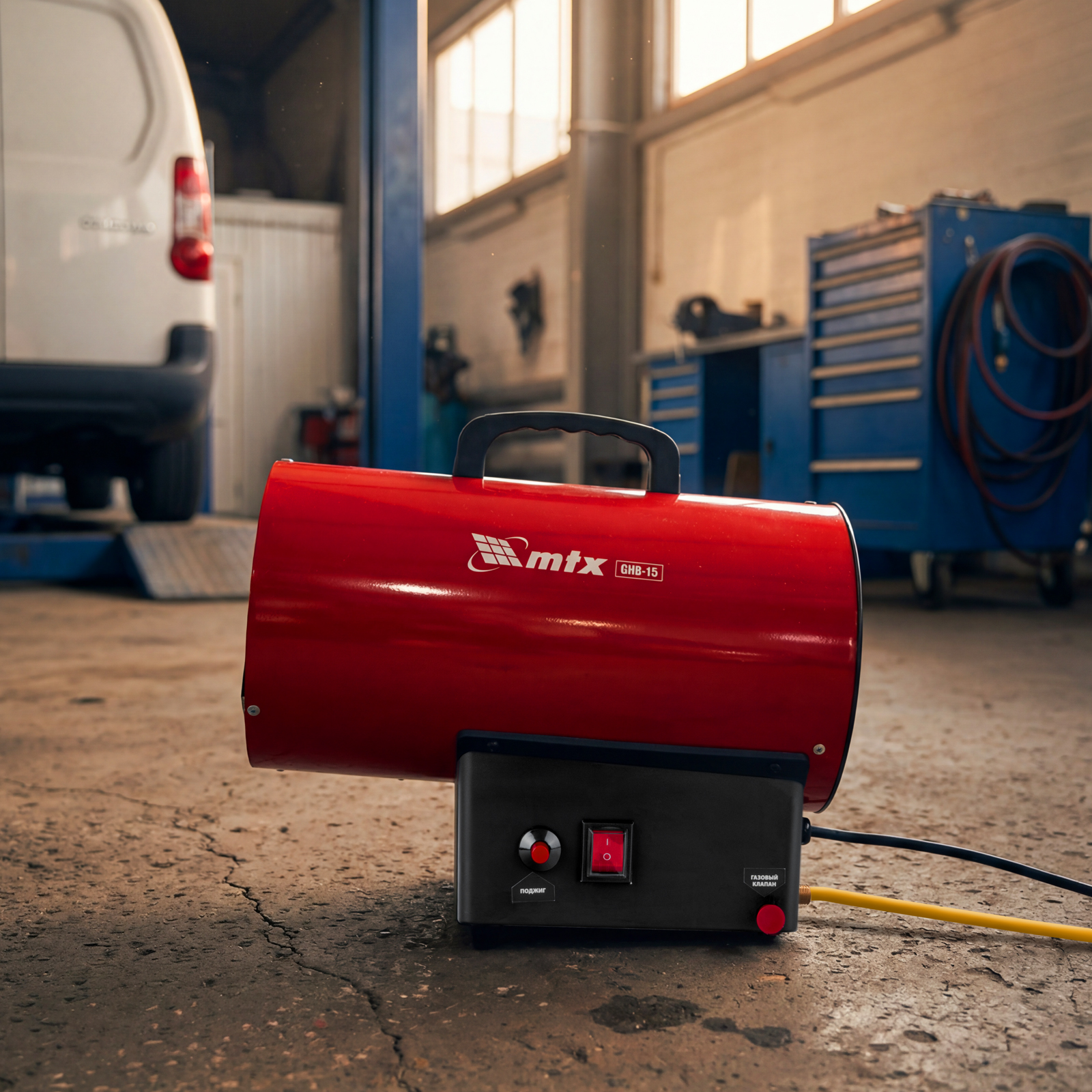 Газовая тепловая пушка MTX GHB-15 98805 номинальной тепловой мощностью 15 кВт работает на смеси пропан-бутан и генерирует поток теплого воздуха объемом 320 м³/ч. Используется для обогрева цехов, складов, теплиц и других нежилых помещений. Также будет полезна во время установки натяжных потолков. С помощью пушки можно быстро просушить стены, разморозить траншею, подогреть бетон. Газовая тепловая пушка незаменима на строительной площадке, пригодится во время проведения ремонтных работ.