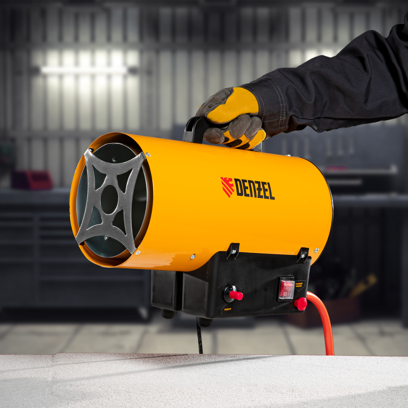 Газовая тепловая пушка Denzel GHG-10 96476 мощностью 10 кВт работает на смеси пропан-бутан и выдает тепловой поток со скоростью 300 м³/ч. Используется для обогрева складов, цехов, гаражей, теплиц и других нежилых помещений площадью до 100 м². Будет полезна на строительных площадках и в производственных помещениях, а также для монтажа натяжных потолков.
