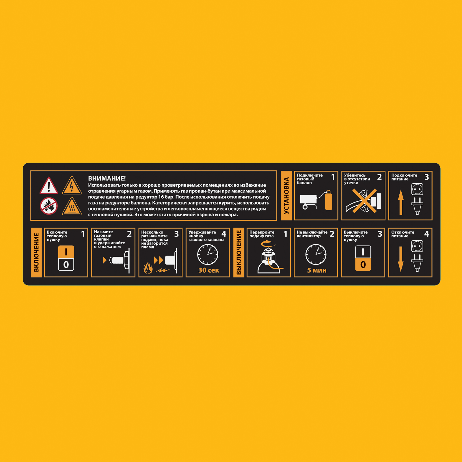 - Быстрый старт — для запуска тепловой пушки предусмотрен пьезоподжиг.