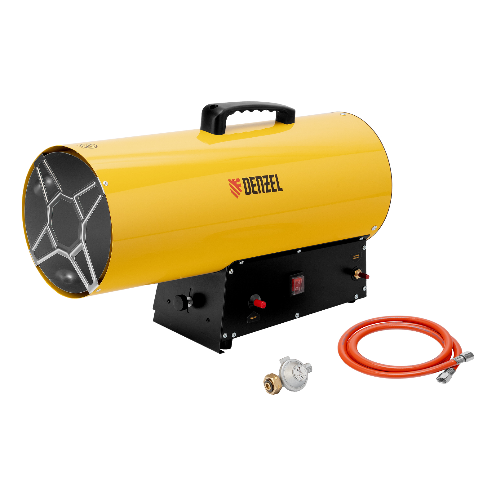 Газовая тепловая пушка Denzel GHG-50 96480 мощностью 50 кВт работает на смеси пропан-бутан и выдает тепловой поток со скоростью 1400 м³/ч. Используется для обогрева складов, цехов, гаражей, теплиц и других нежилых помещений площадью до 500 м². Будет полезна на строительных площадках и в производственных помещениях.