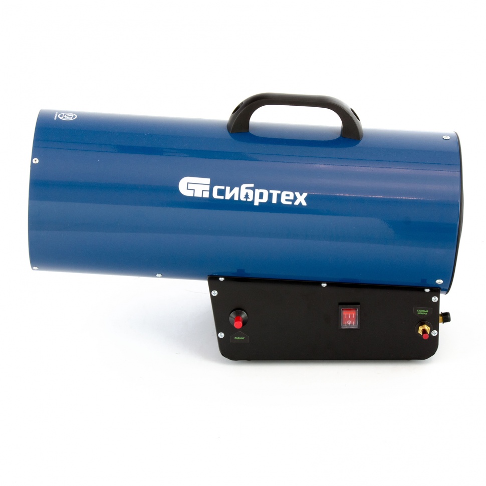 Газовая тепловая пушка Сибртех СТГ-50 96454, работающая на смеси пропан-бутан, имеет тепловую мощность 50 кВт и генерирует воздушный поток объемом 1400 м3/ч. Подходит для обогрева цеха, строительного объекта, склада и других нежилых помещений объемом до 500 м2. Может использоваться также для точечного обогрева: размораживания земли под траншеи, просушки поверхностей и т.д.