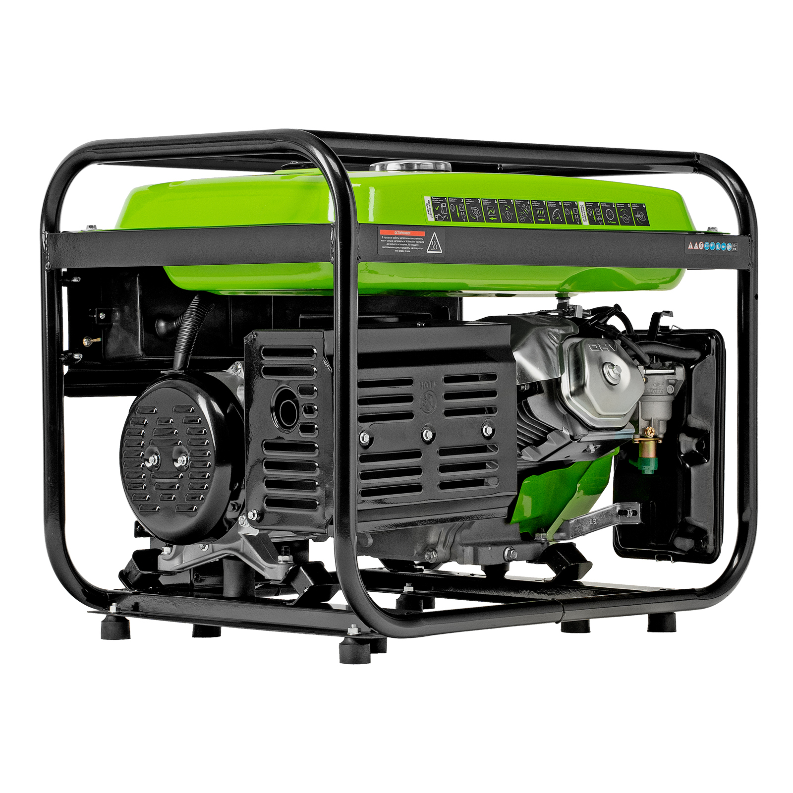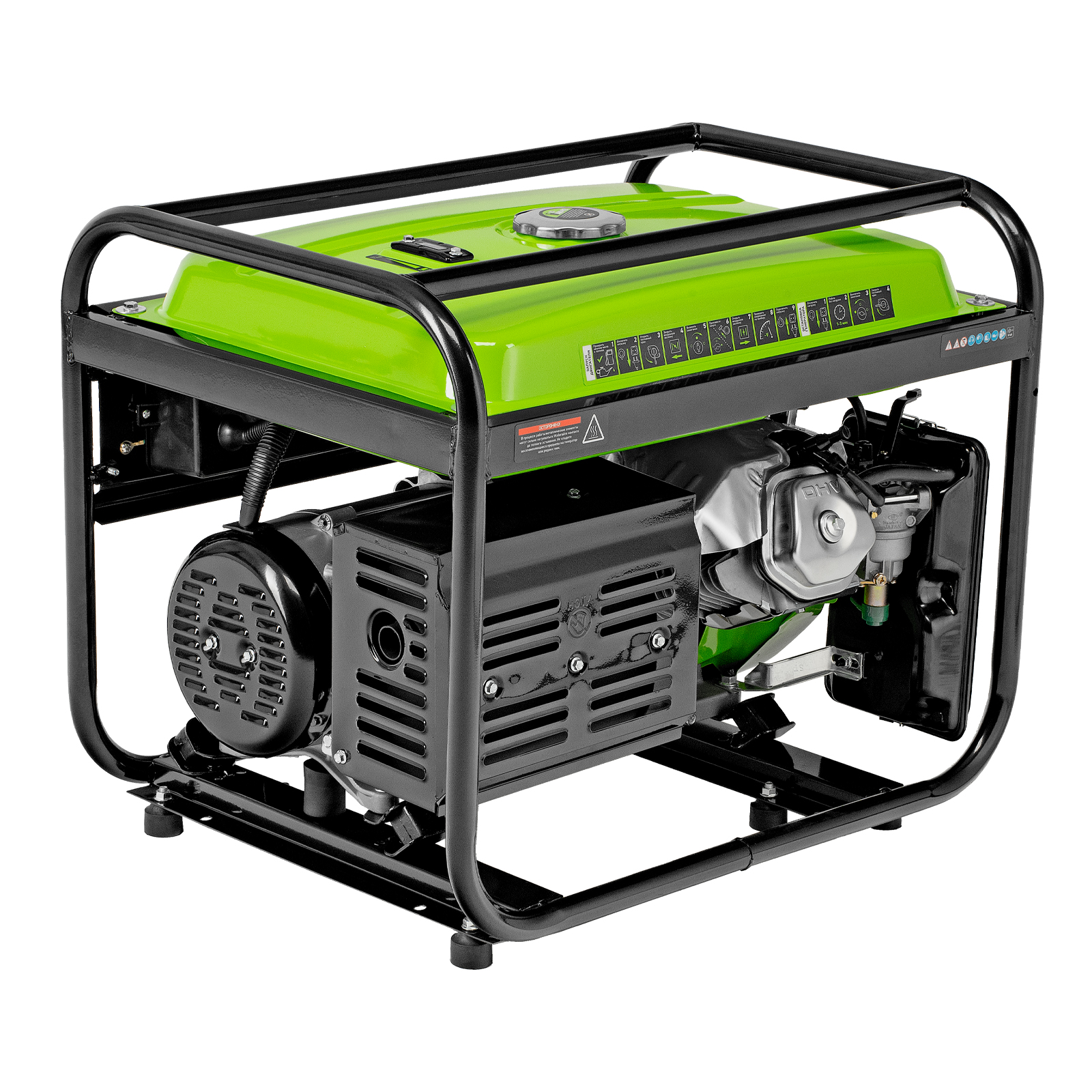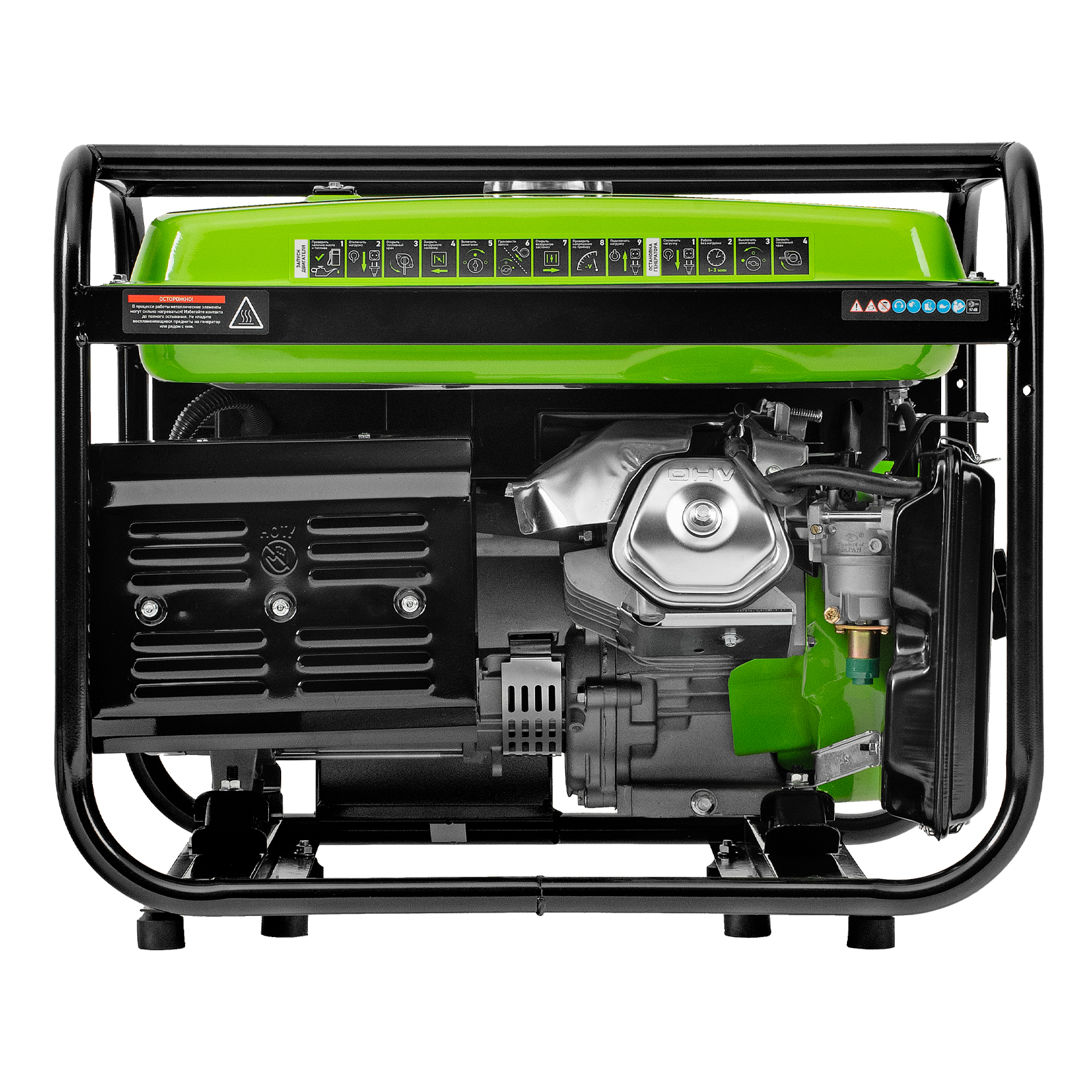 - Надежность — медная обмотка альтернатора и стальной распредвал выдерживают высокие нагрузки, прочная стальная рама защищает от повреждений.