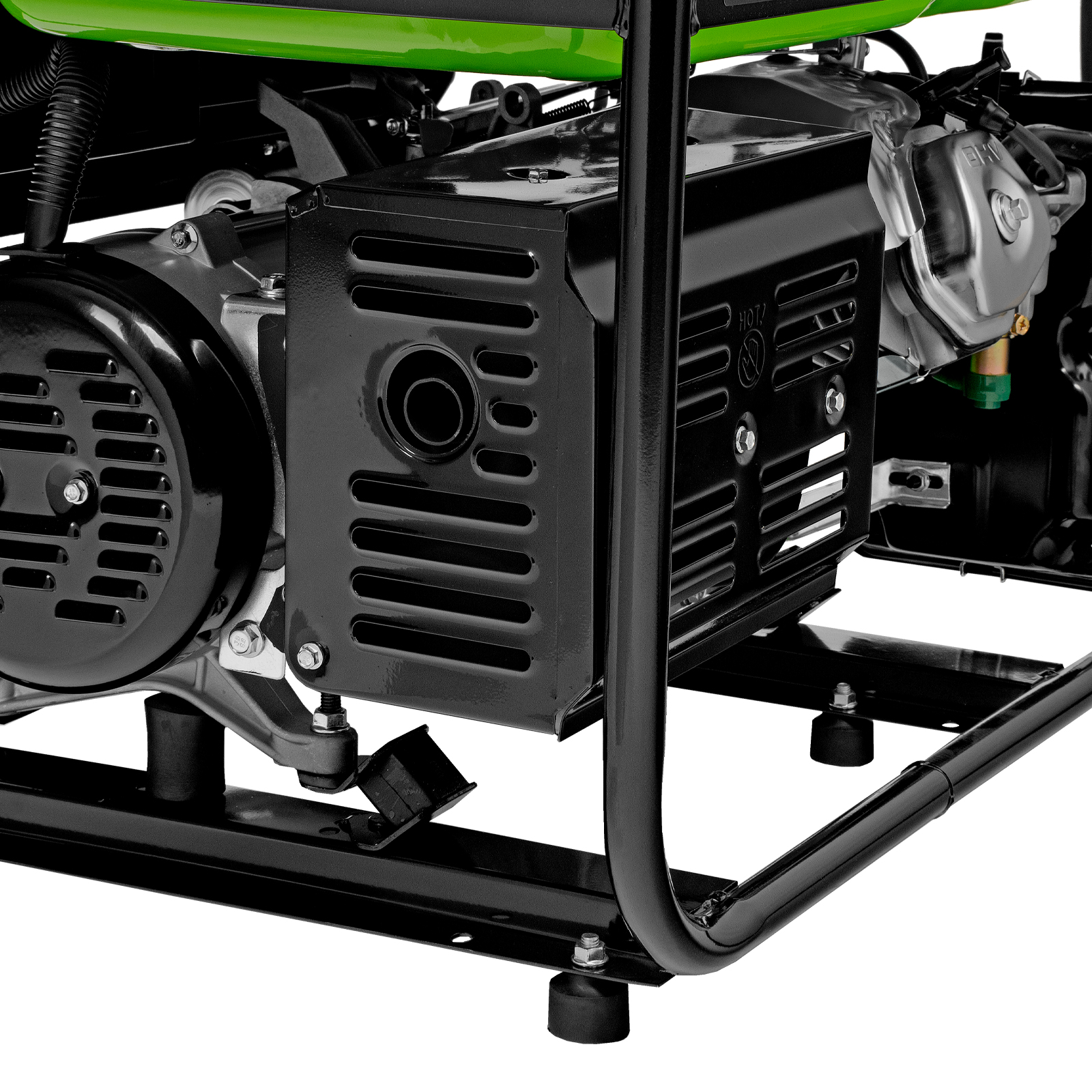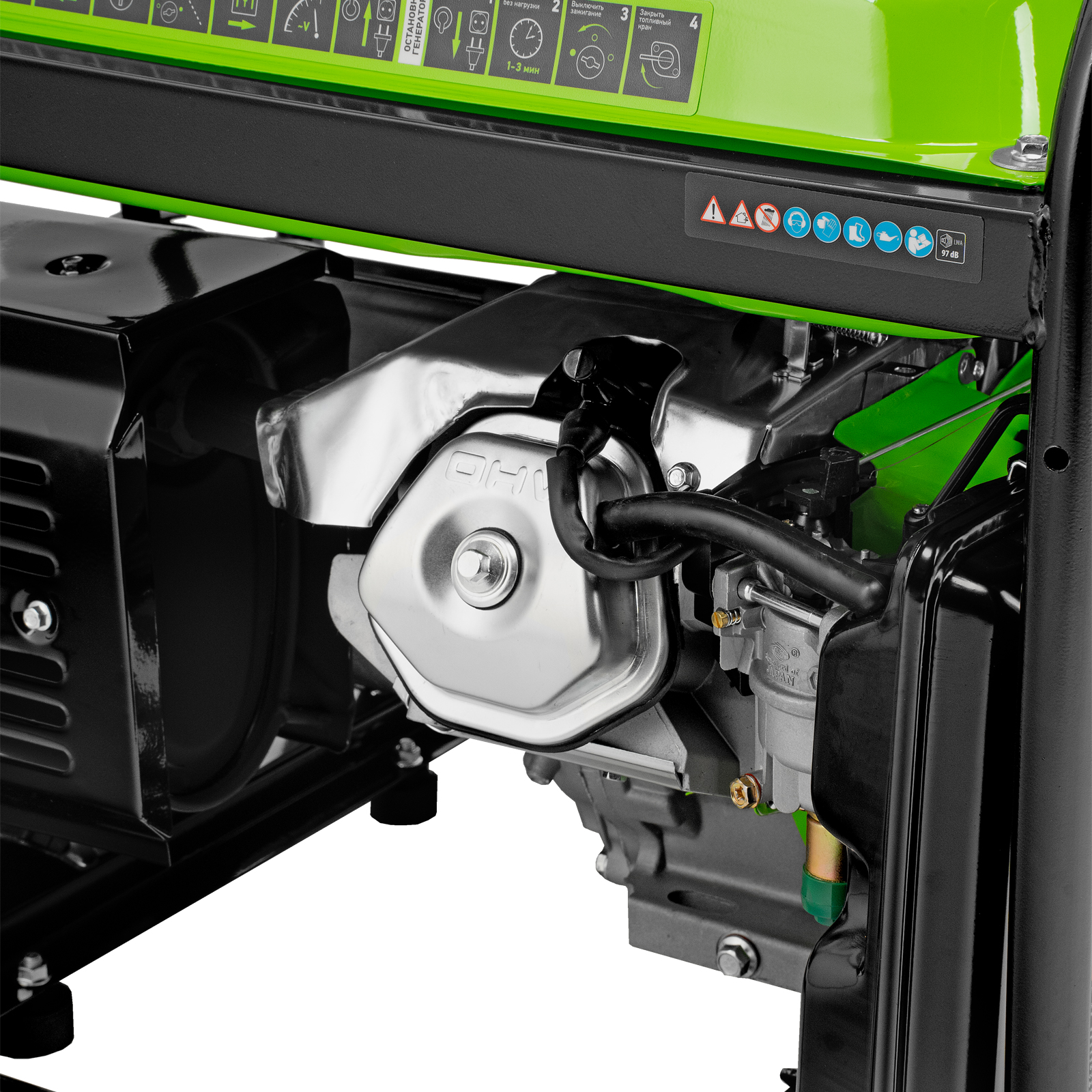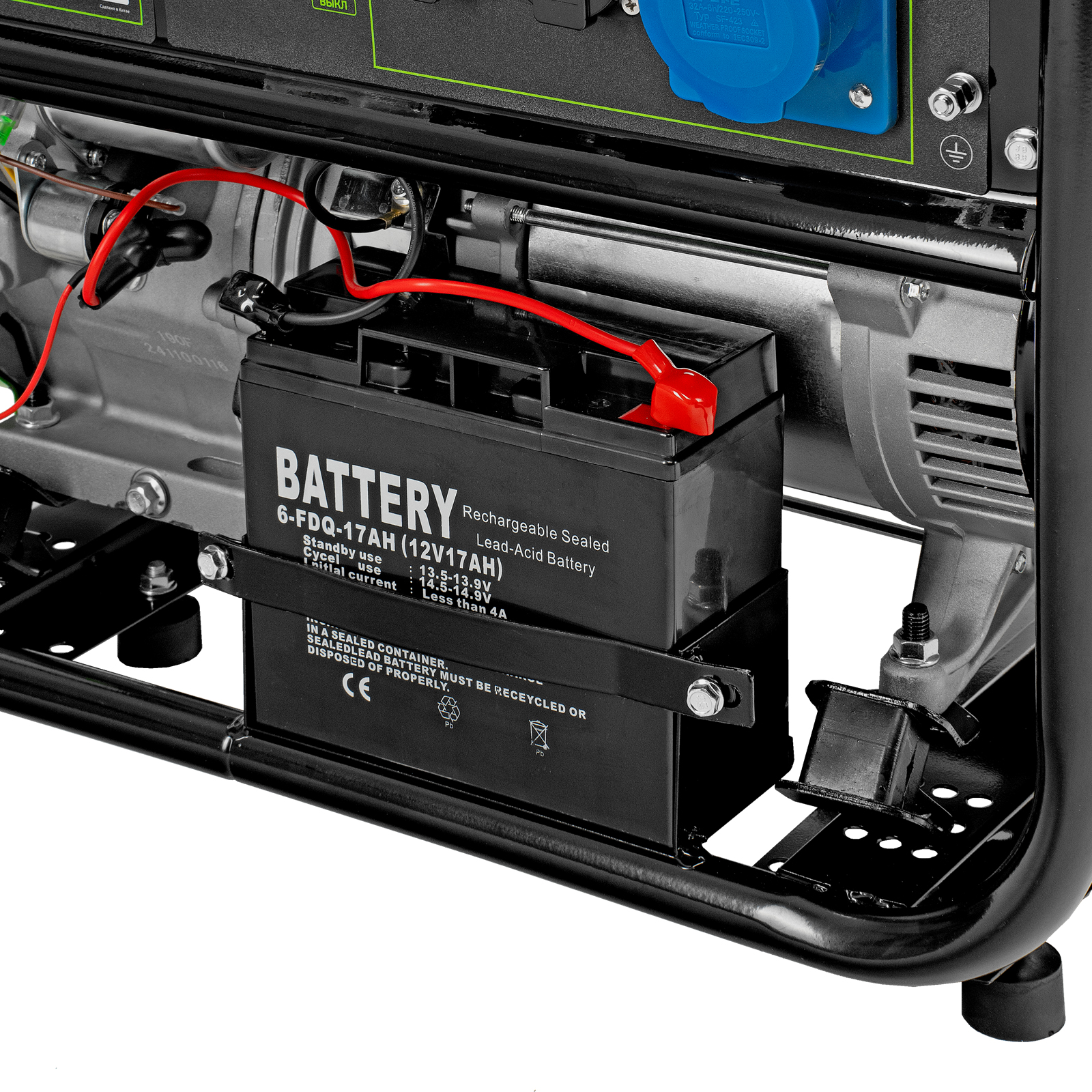 - Надежность — медная обмотка альтернатора и стальной распредвал выдерживают высокие нагрузки, прочная стальная рама защищает от повреждений.