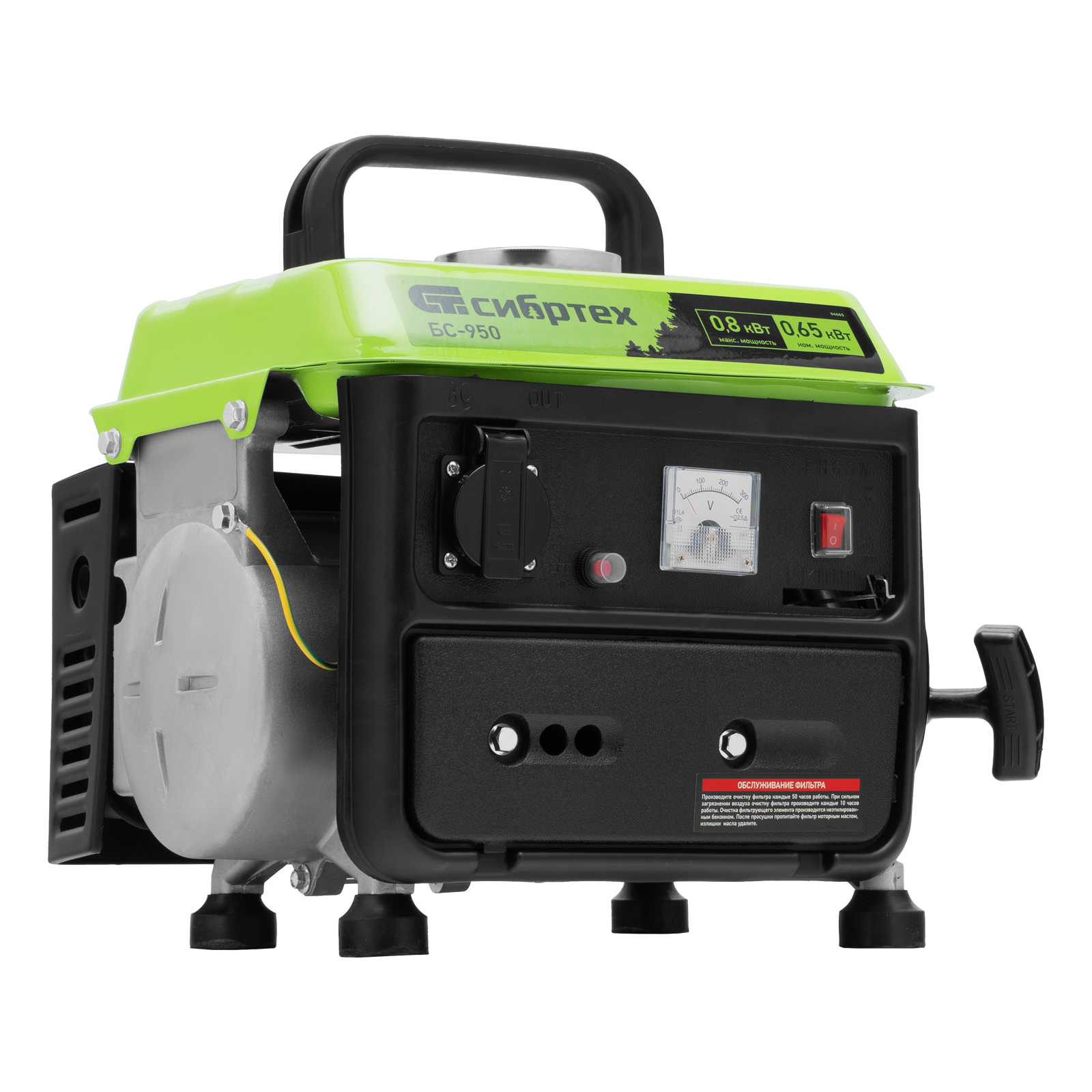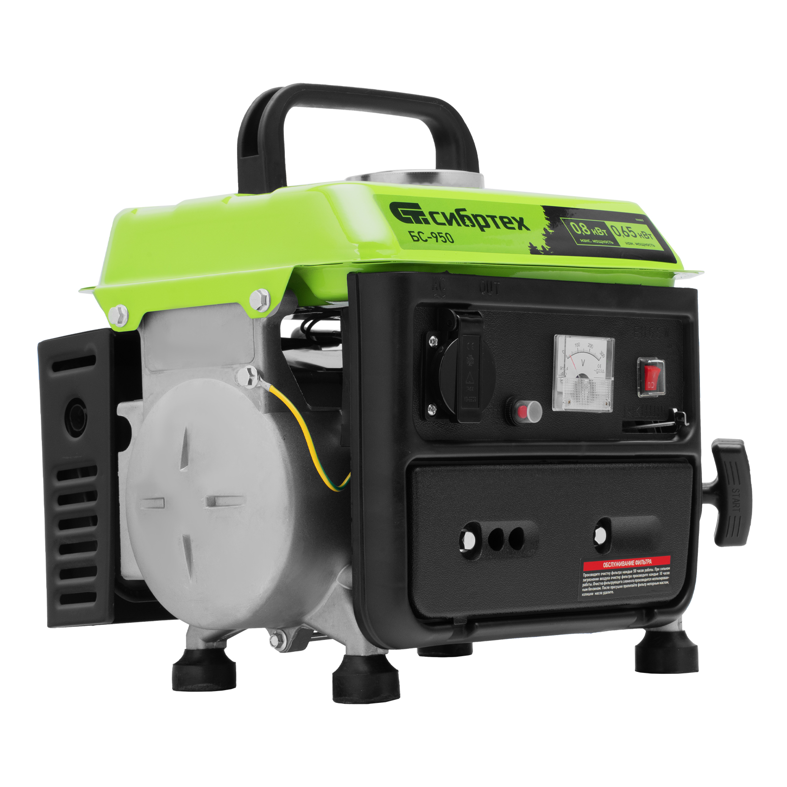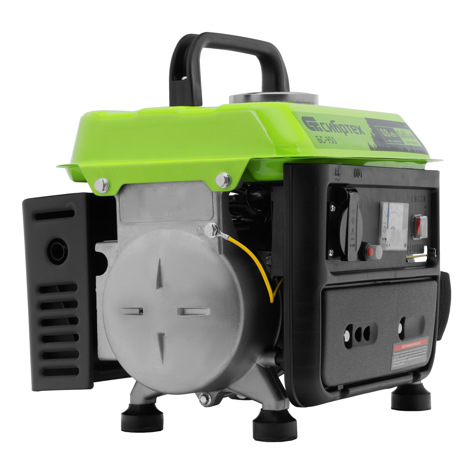 Генератор бензиновый БС-950, 0.8 кВт, 230 В, 2-х тактный, 4 л, ручной стартер Сибртех