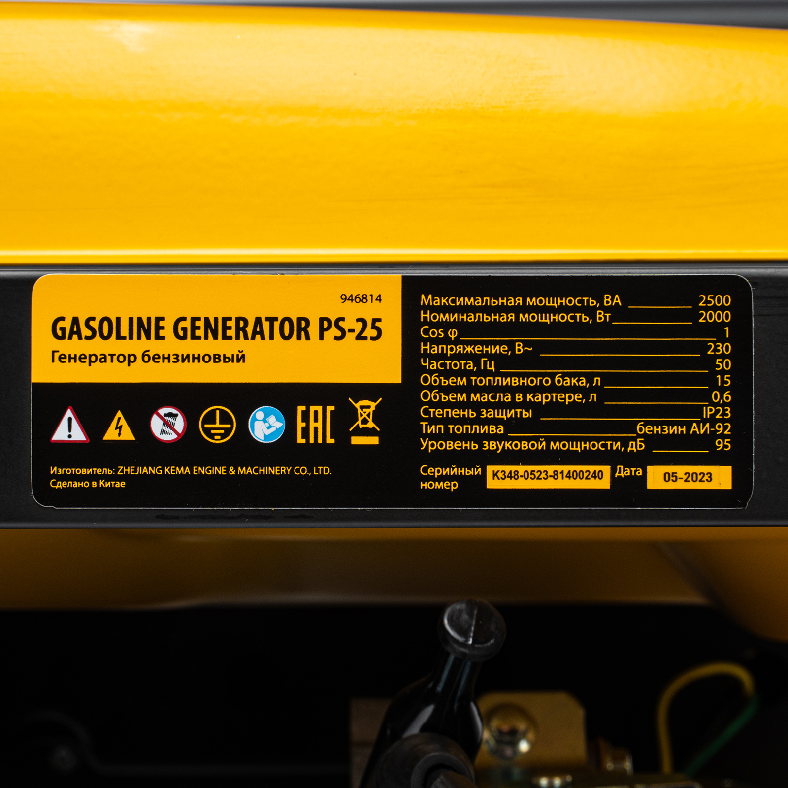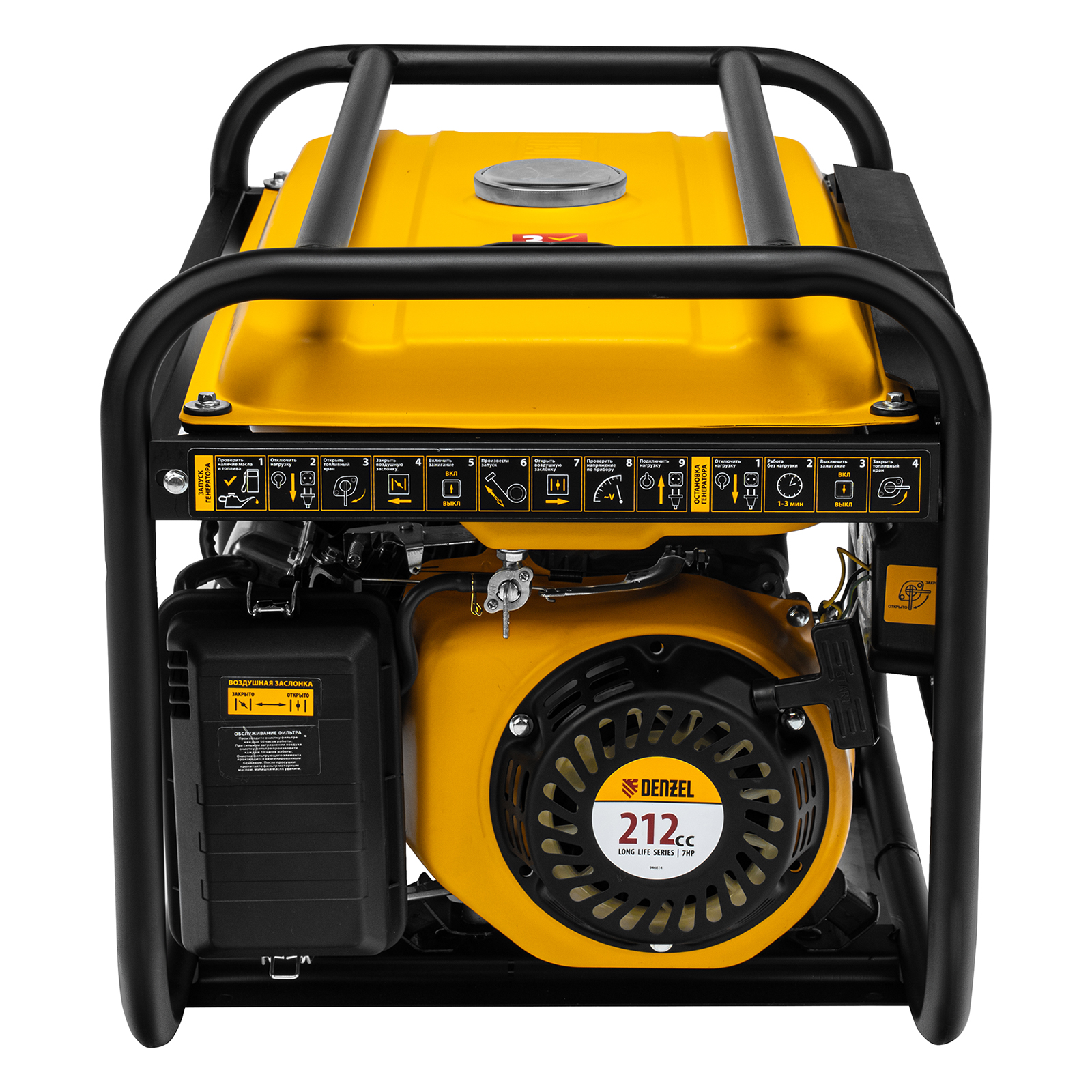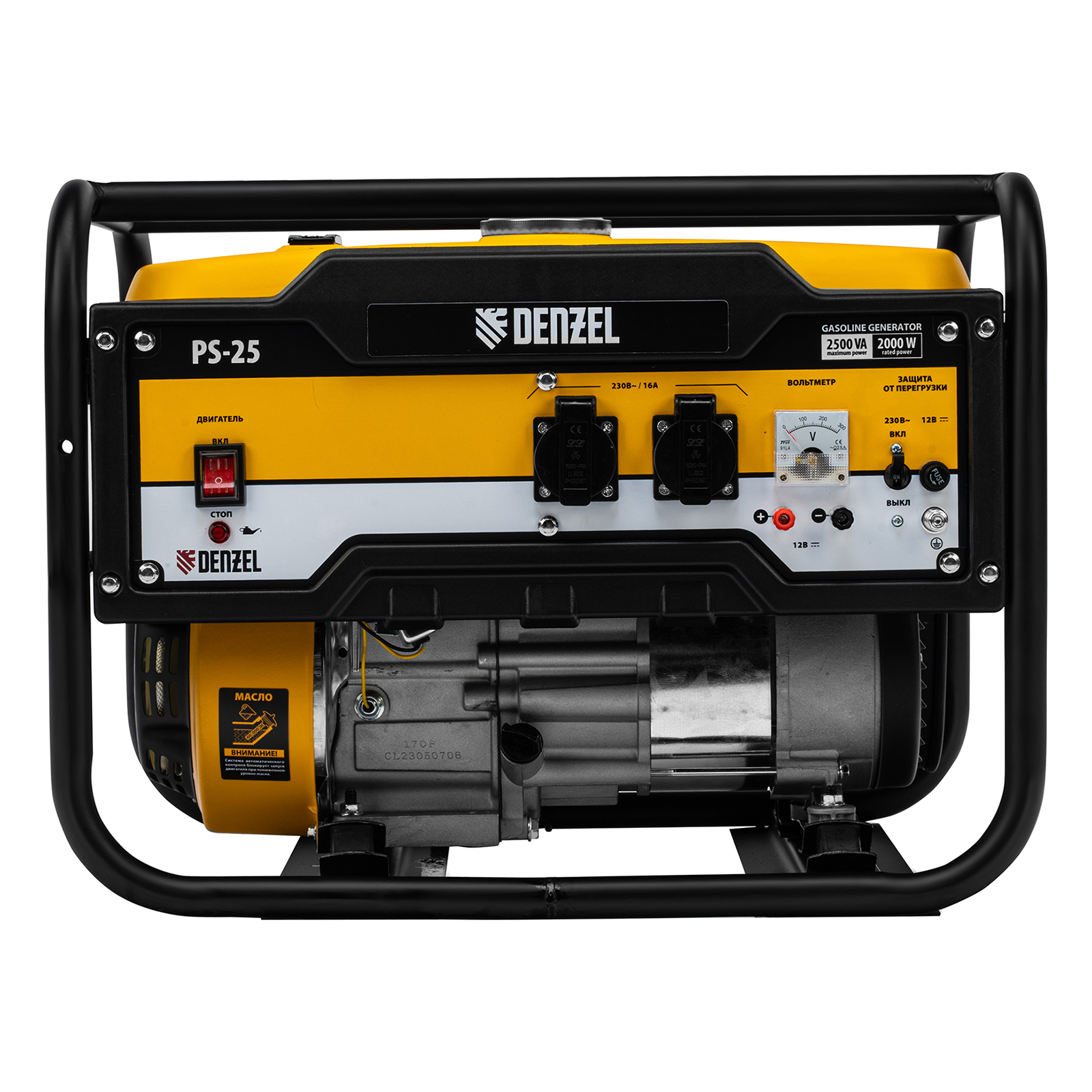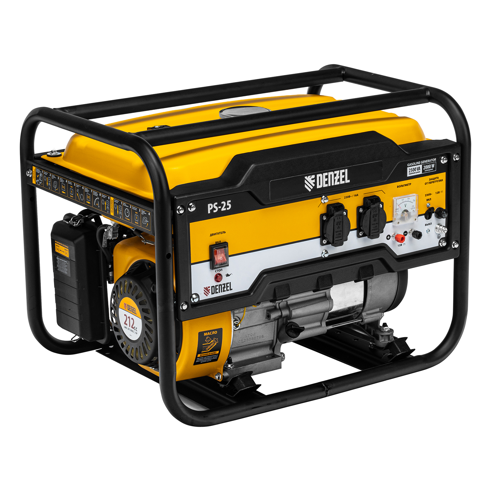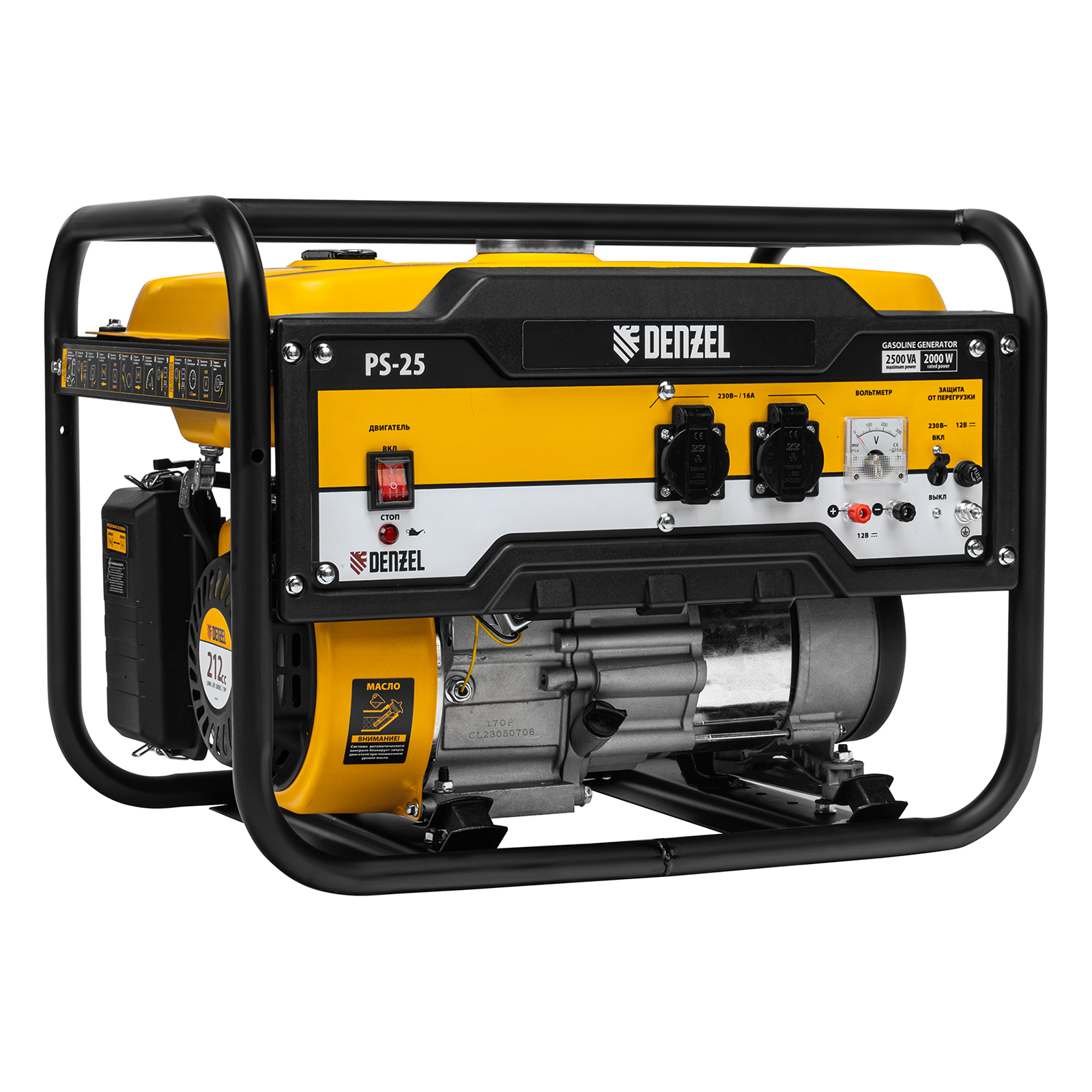 Бензиновый генератор Denzel PS-25 946814 мощностью 2,5 кВт, с баком объемом 15 л, работает от сети 230 В и подходит для дачи, палаточного лагеря, рыбалки, торговой точки. Он дает возможность подключать маломощные приборы и инструменты. Например, можно одновременно подключить 3 лампы накаливания, утюг, пылесос, холодильник. С интуитивно понятным управлением справится даже новичок.