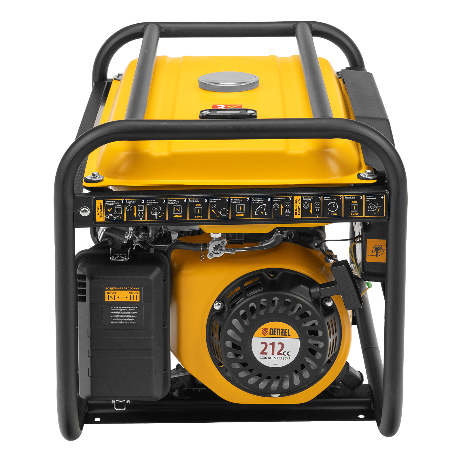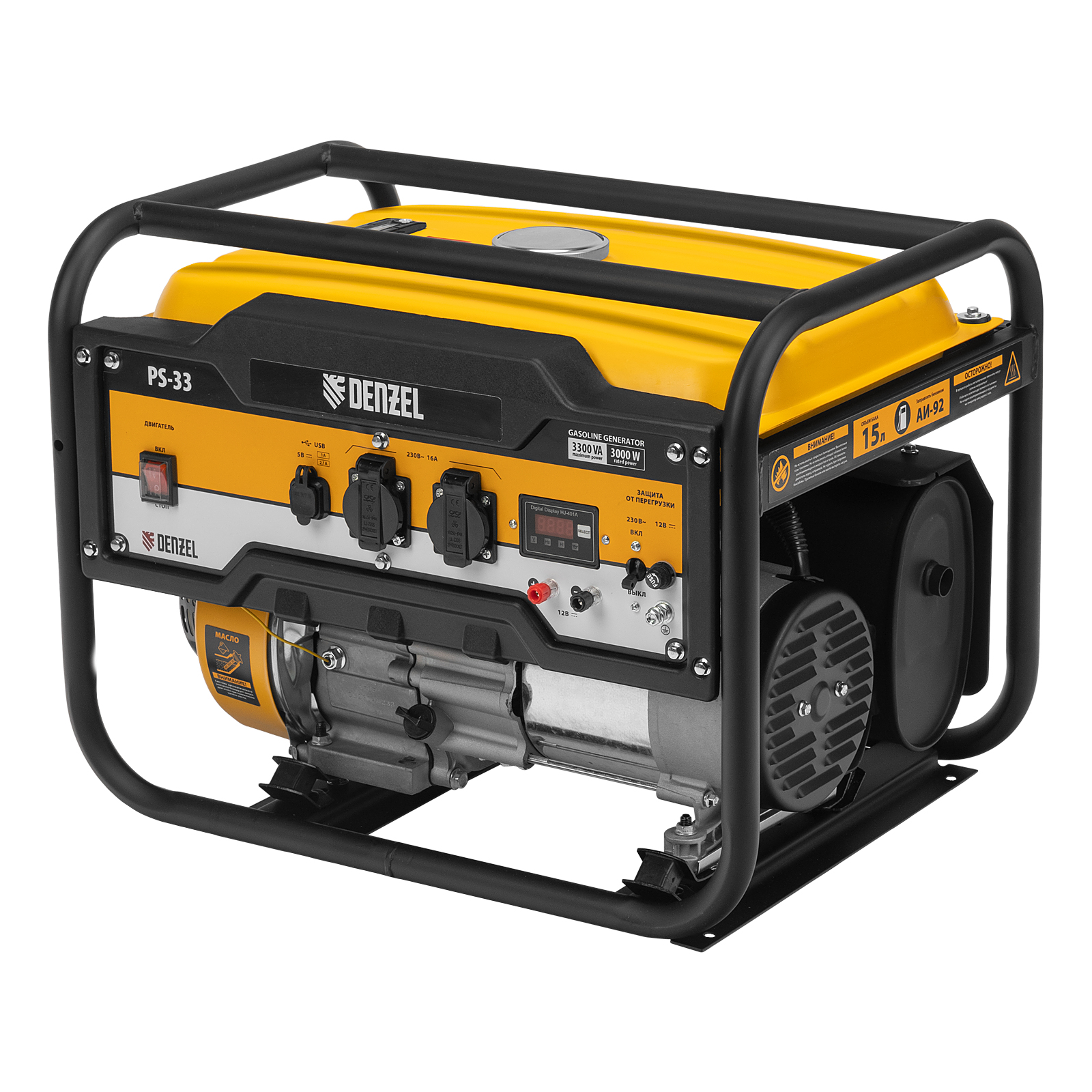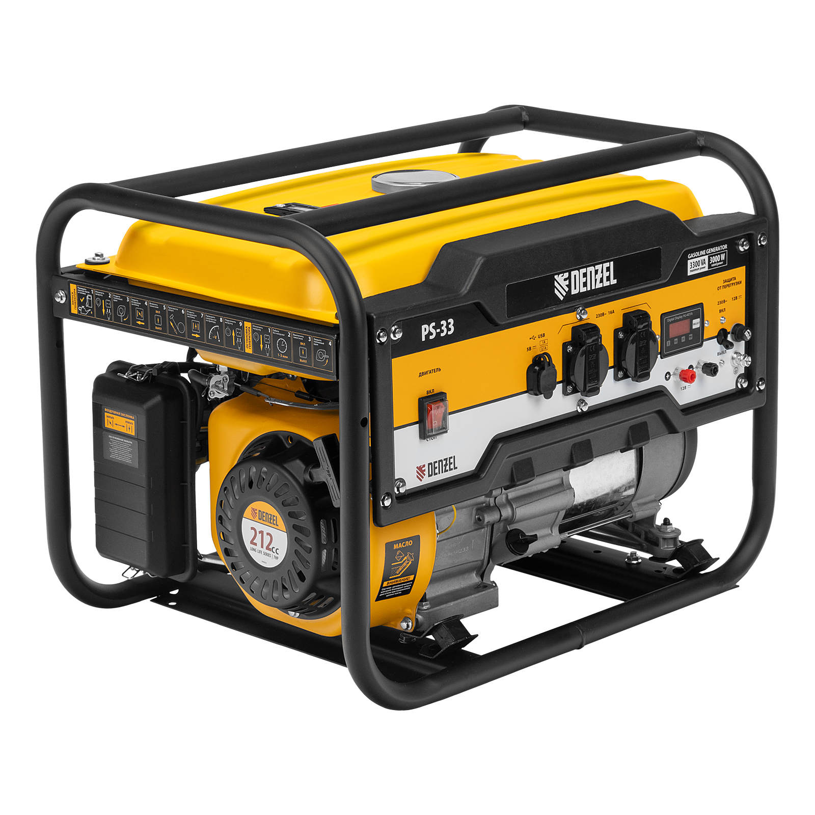 Генератор бензиновый Denzel PS 33 946834 максимальной мощностью 3,3 кВт при параметрах сети 230 В, оснащен ручным стартером и увеличенным бензобаком на 15 л. Предназначен для автономного электроснабжения однофазным током маломощного оборудования. Это экономичная и простая в использовании модель, оптимально подходящая для дачного участка, домашней мастерской, кемпинга и рыбалки, а также строительной площадки.