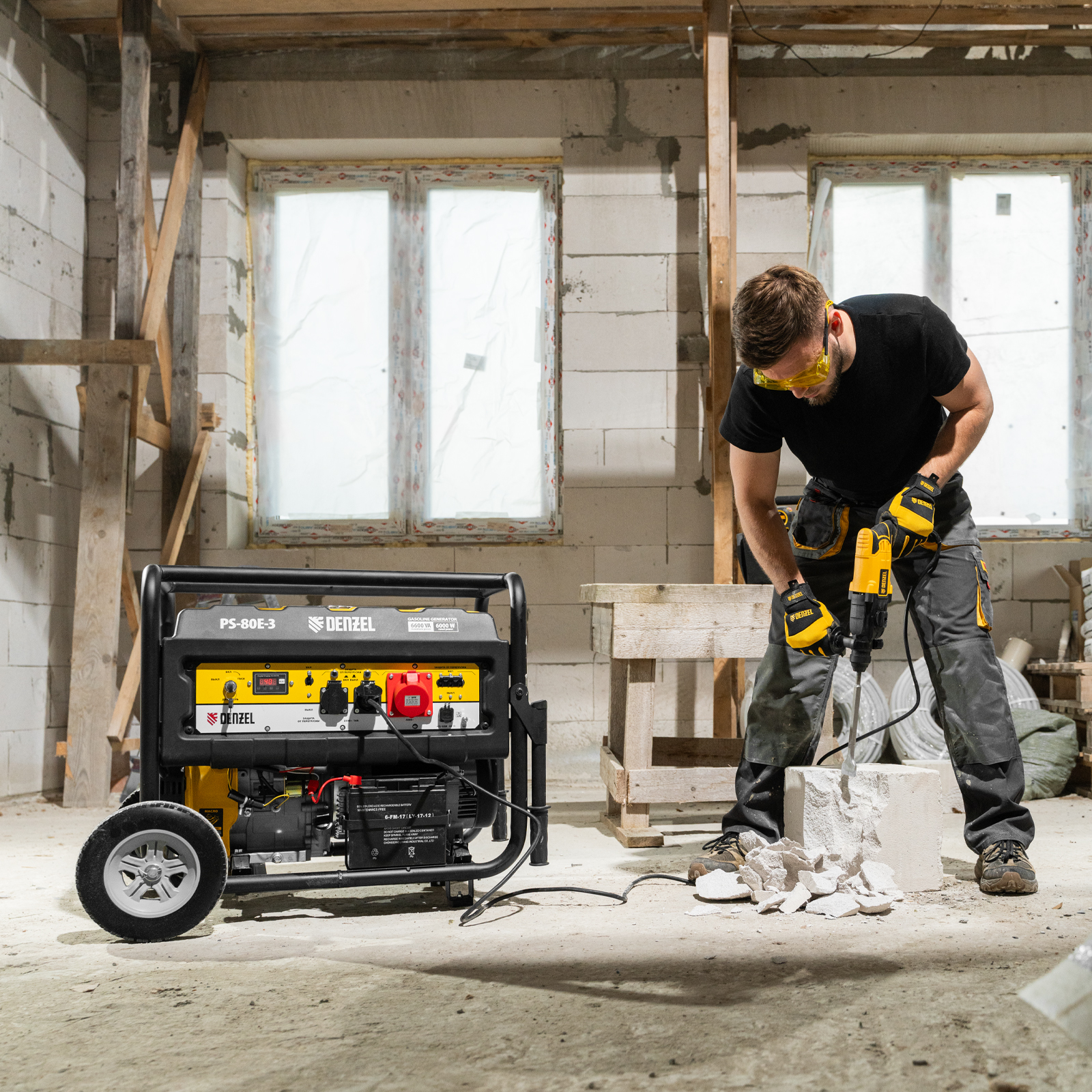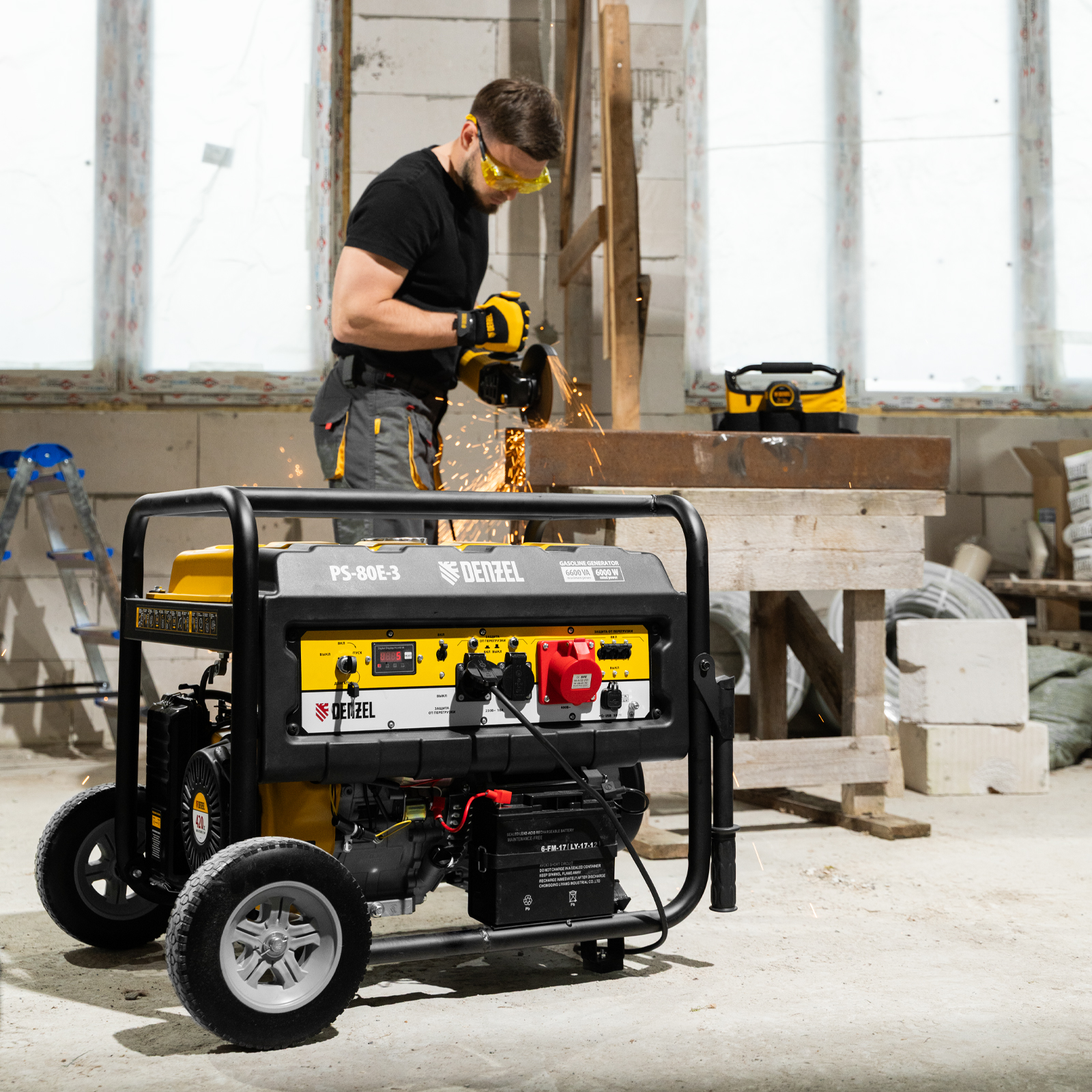Бензиновый генератор Denzel PS 80 E-3 946954 с топливным баком объемом 25 л и электростартером поддерживает напряжение в сети 230 В и 400 В и используется в качестве резервного источника питания для снабжения однофазным или трехфазным током различного оборудования суммарной мощностью до 6,6 кВт. Подходит для использования как в загородном доме, так и на строительной площадке. Благодаря увеличенному топливному баку генератор способен до 10 часов работать без дозаправки.