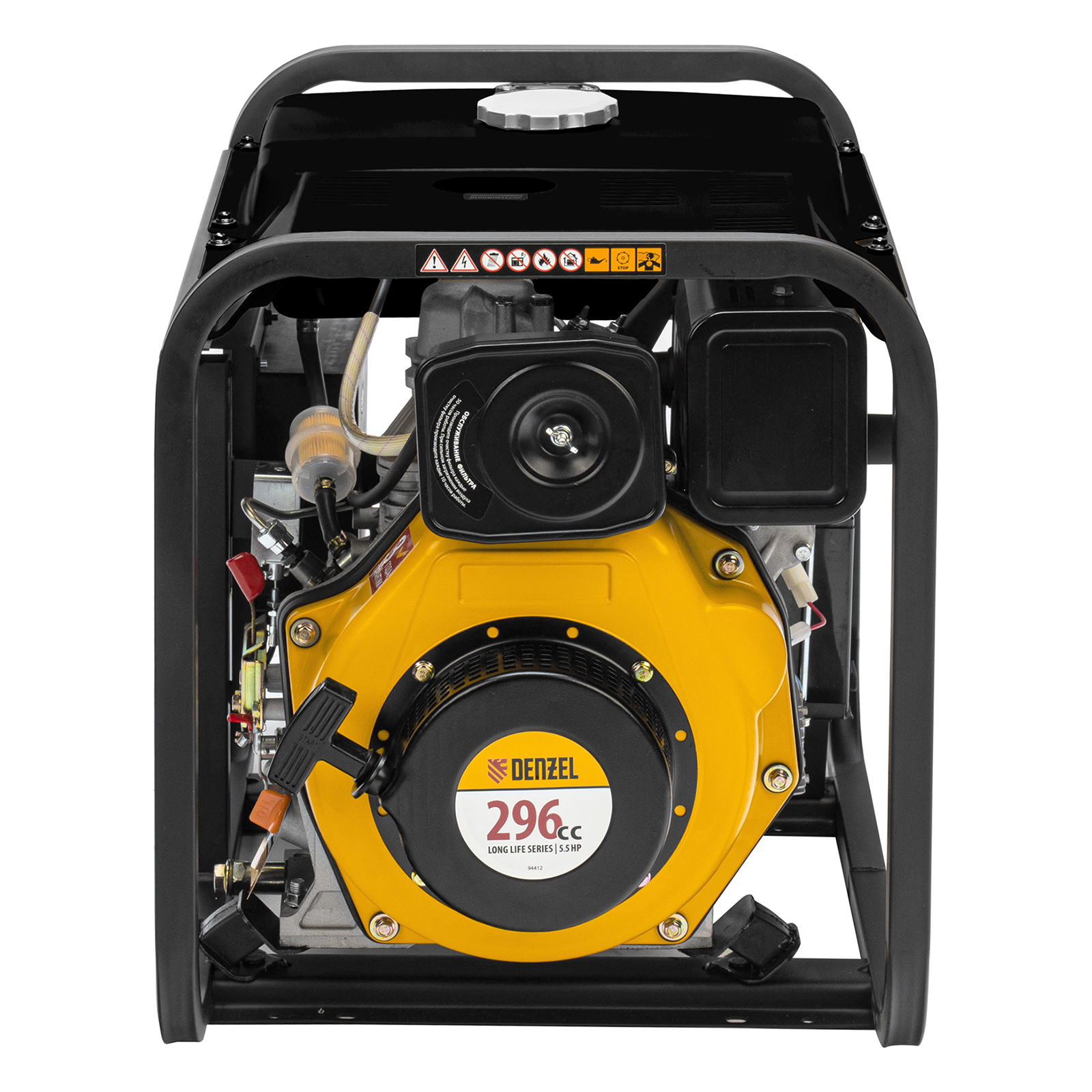 - Мобильность — к генератору можно приобрести транспортировочный комплект Denzel 94905 для перемещения по рабочей площадке.