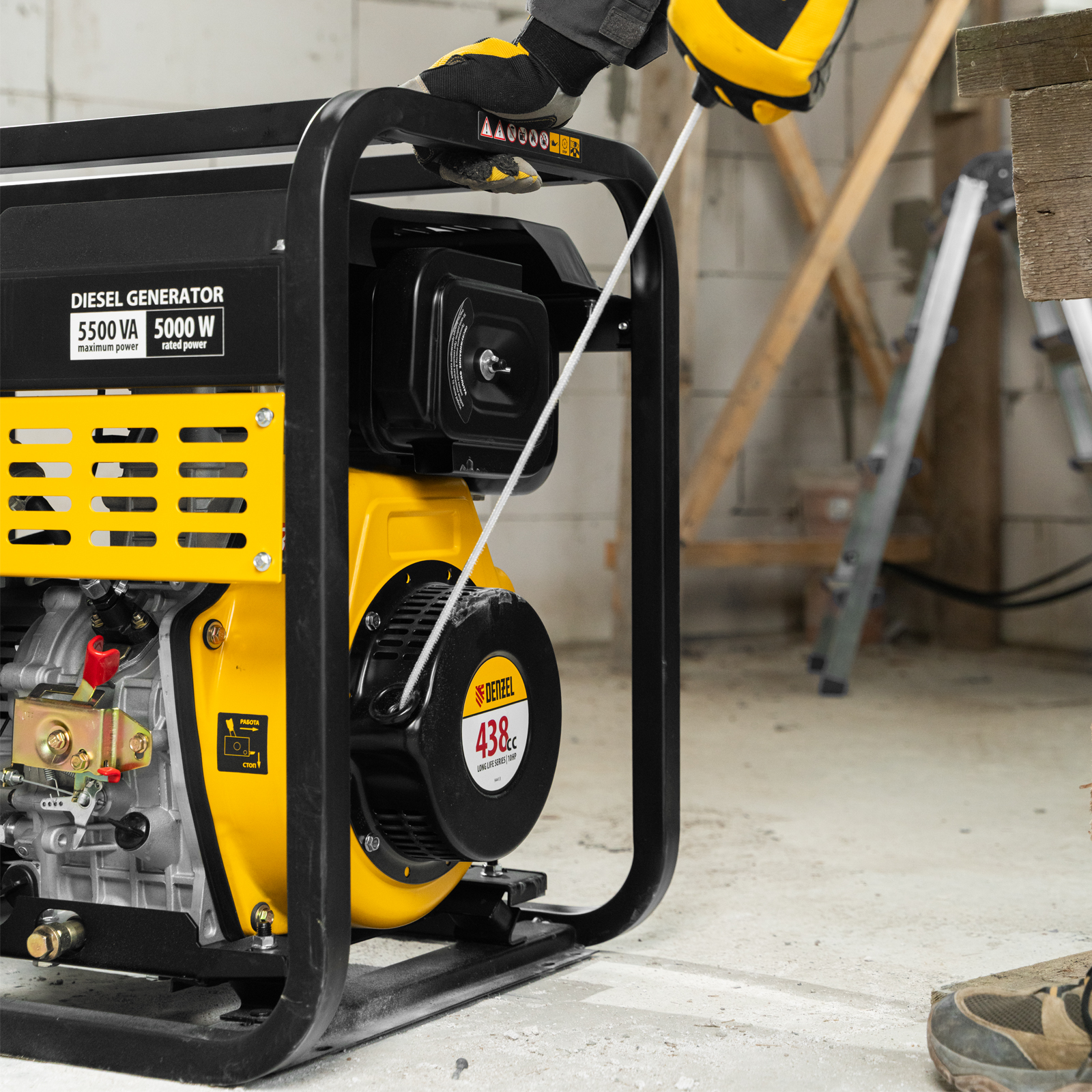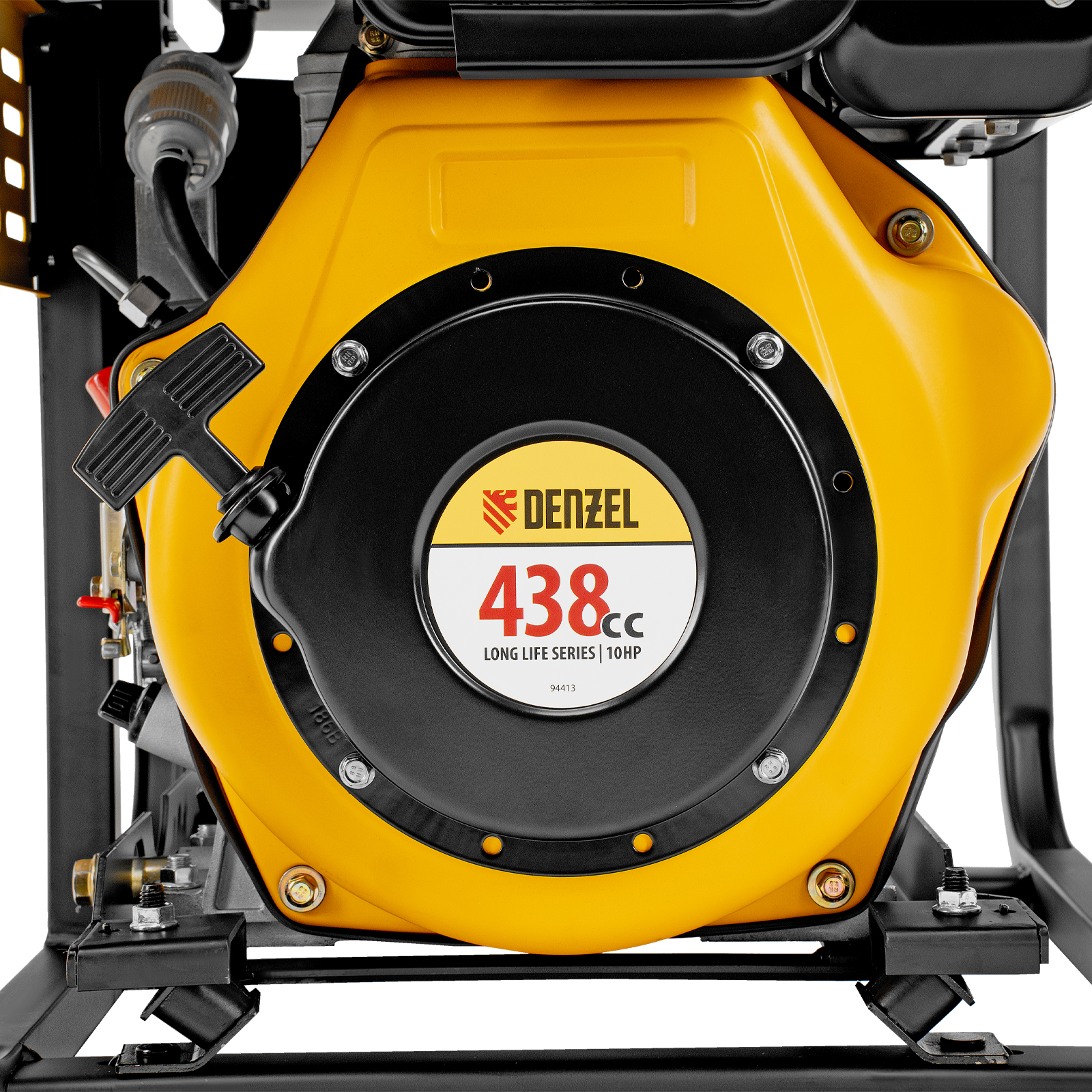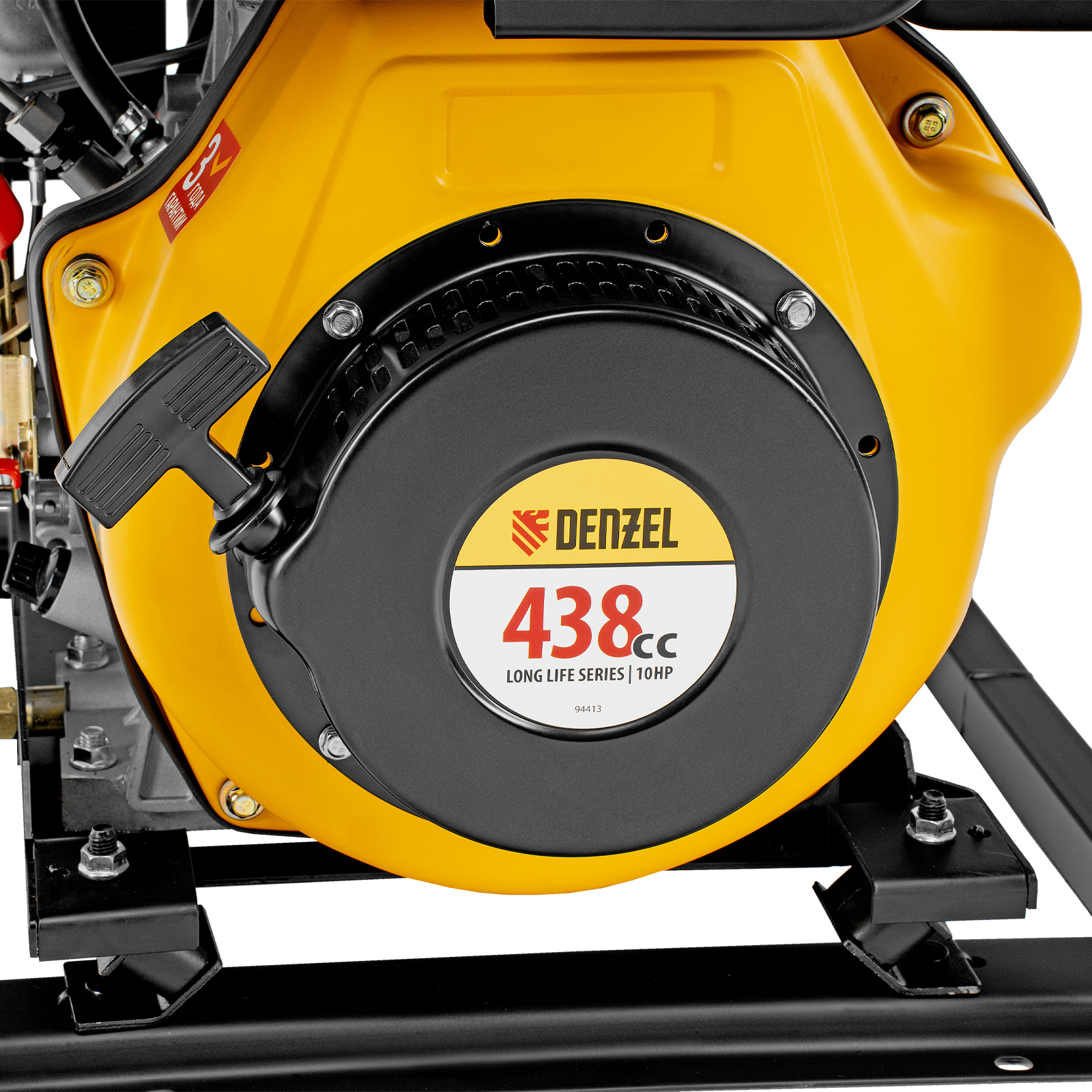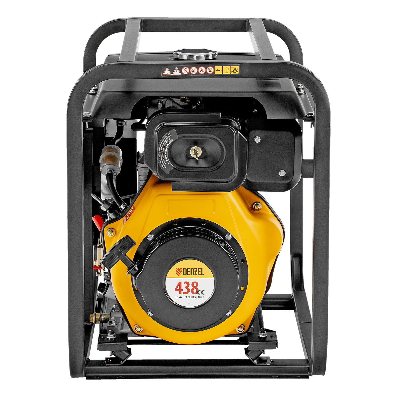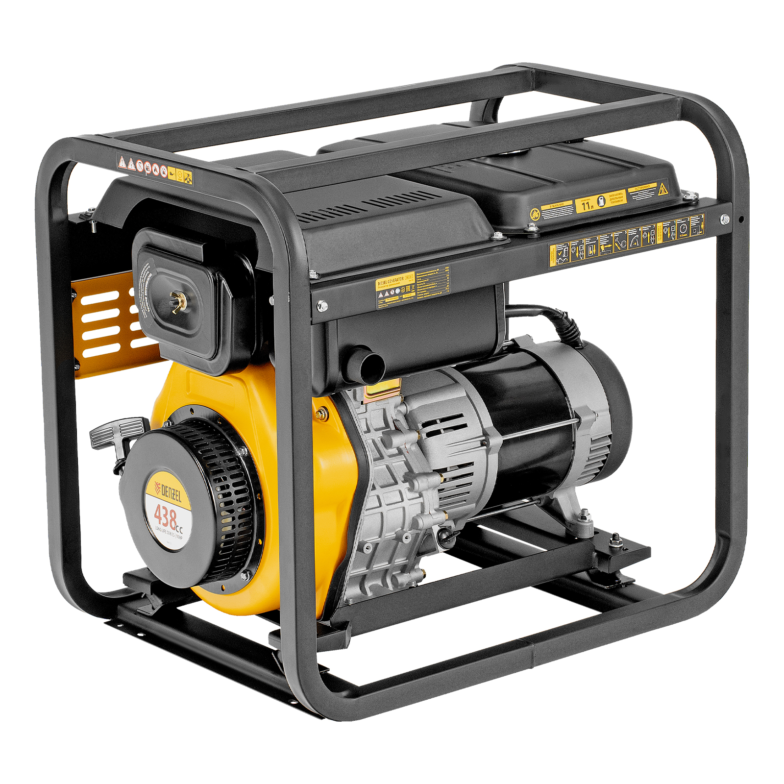 - Мобильность — к генератору можно приобрести транспортировочный комплект Denzel 94906 для перемещения по рабочей площадке.