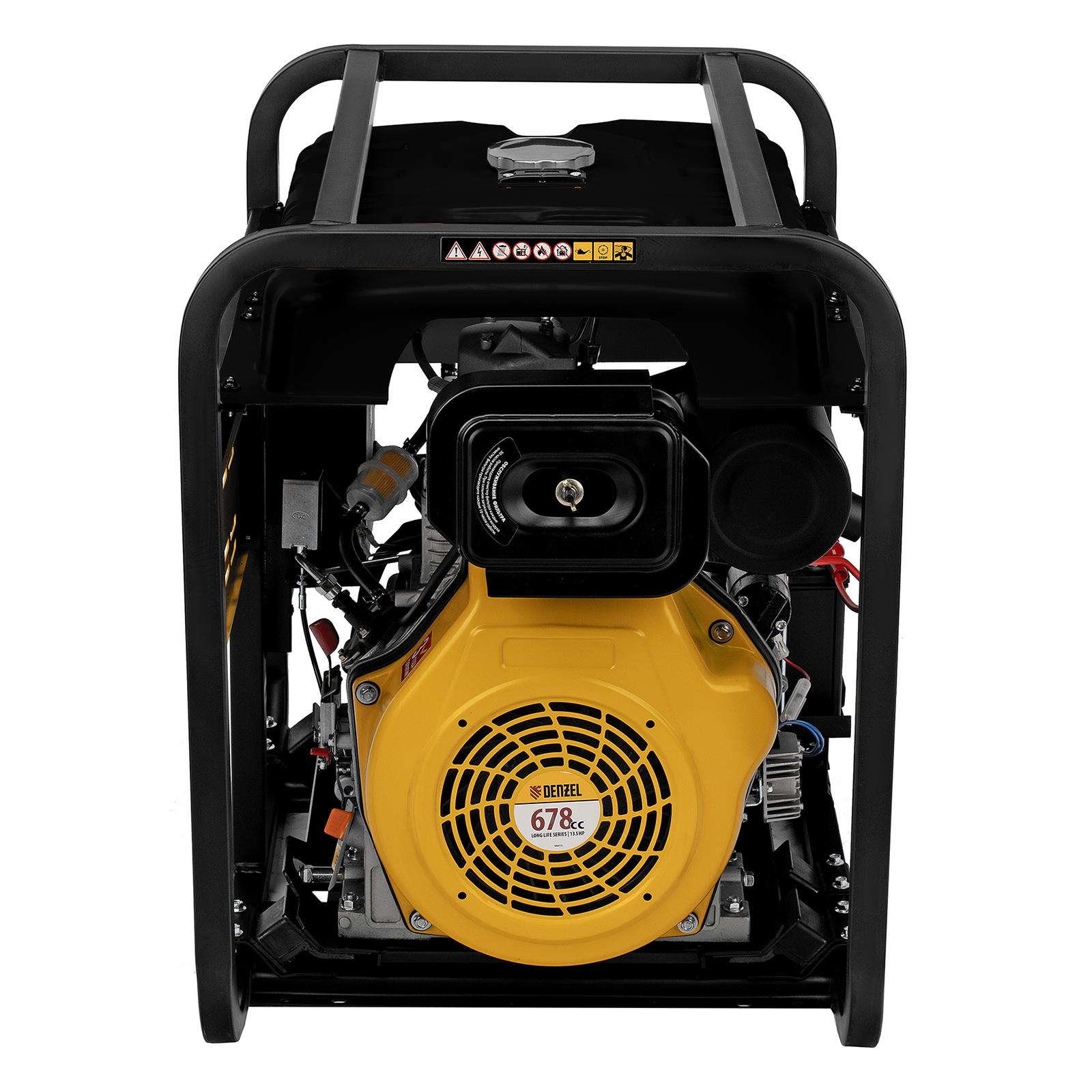 - Мобильность — к генератору можно приобрести транспортировочный комплект Denzel 94907 для перемещения по рабочей площадке.