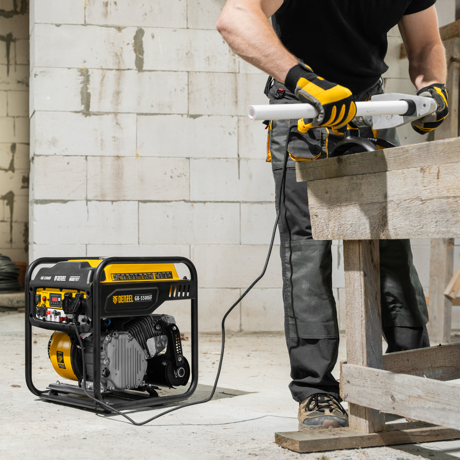 Инверторный генератор Denzel GK-2200iF 94709 максимальной мощностью 5,5 кВт, с ручным стартом, поддерживает напряжение 230 В и предназначен для питания осветительных приборов, бытовой техники, электроинструмента и т.д. в условиях отсутствия электросети или перебоев в ее работе. Обеспечивает подачу стабильного тока, подходит для подключения потребителей, чувствительных к качеству электроэнергии: газовых котлов, серверных станций, цифровой техники. Предусмотрена возможность подключения мобильных устройств к выходу USB 5 В. Клеммы постоянного тока 12 В можно использовать для зарядки автомобильных аккумуляторов. Если требуется снять полную мощность, необходимо использовать для подключения силовые клеммы переменного тока 230 В. Генератор незаменим на дачном участке.