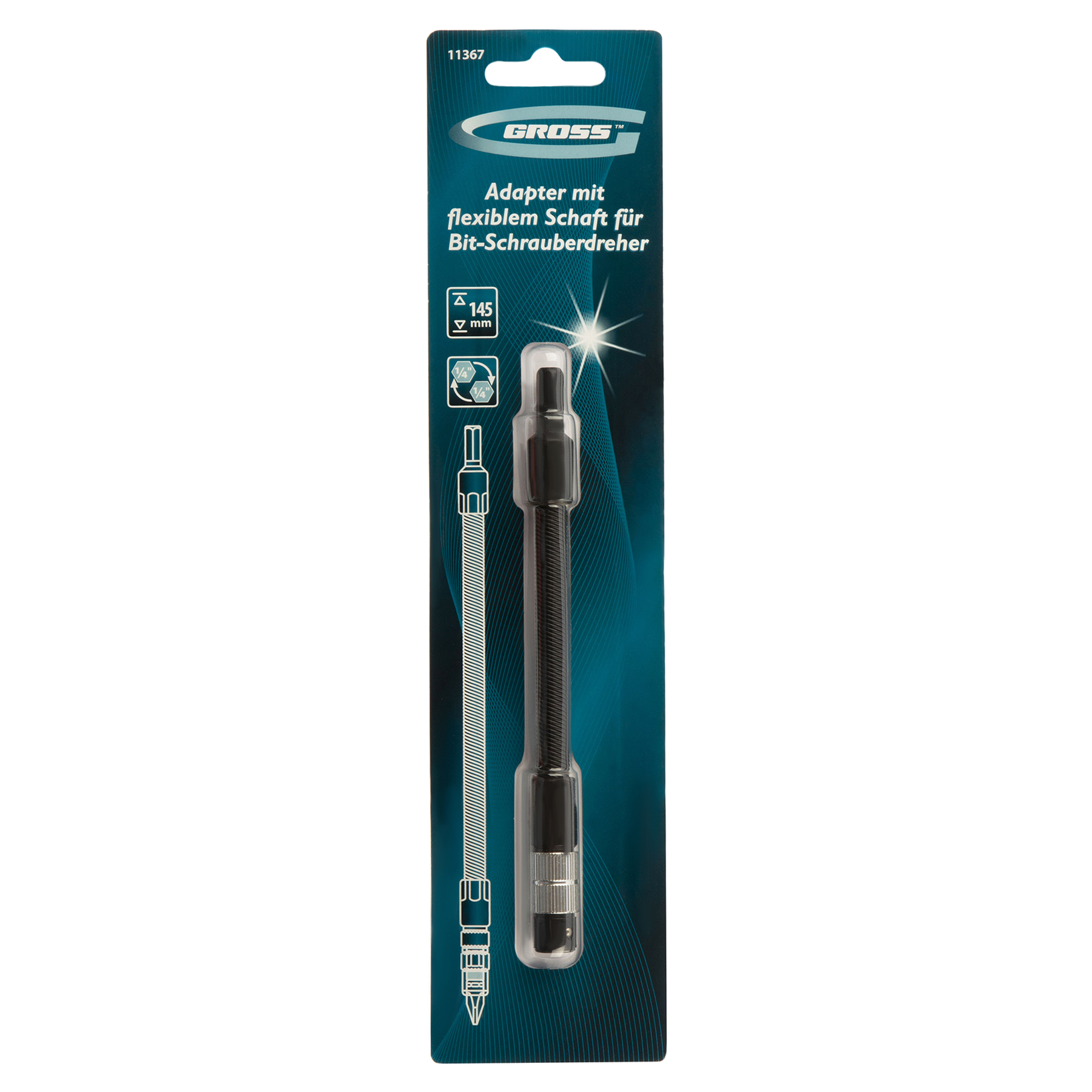 Гибкий переходник для бит Gross 11367 длиной 145 мм, с присоединительным размером 1/4″, облегчает монтаж и демонтаж резьбовых соединений в труднодоступных местах. Позволяет работать со стандартными битами, легко меняя их. Устанавливается в патрон шуруповерта.