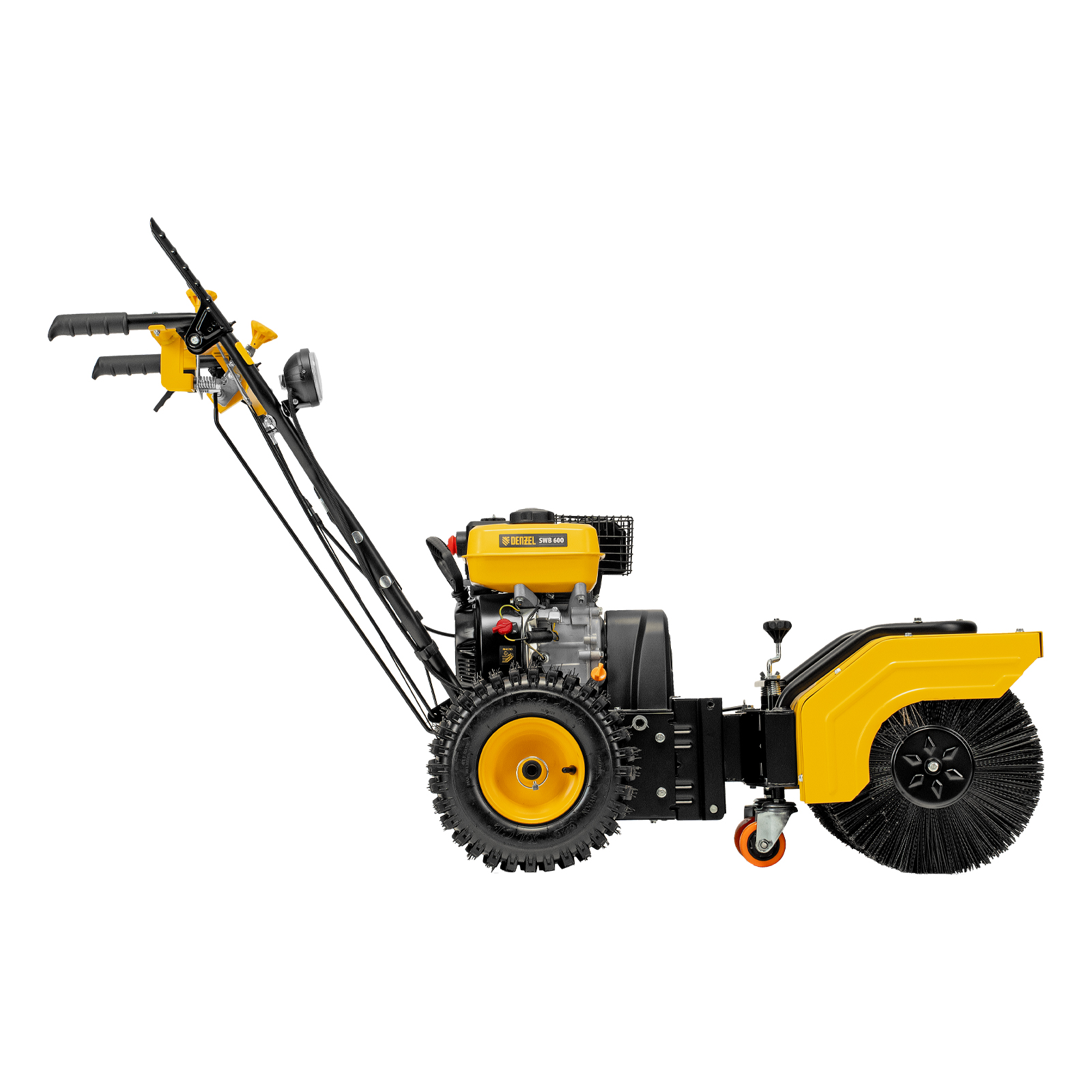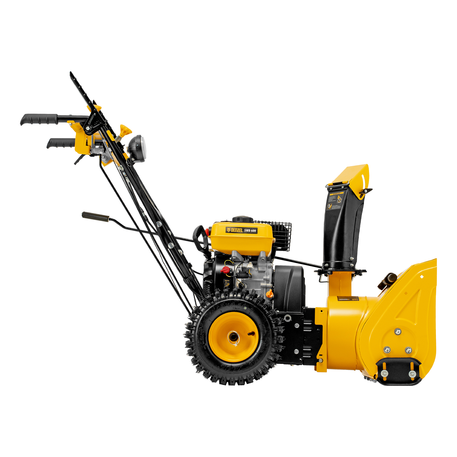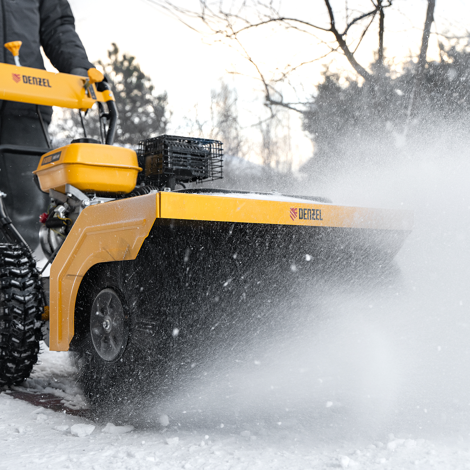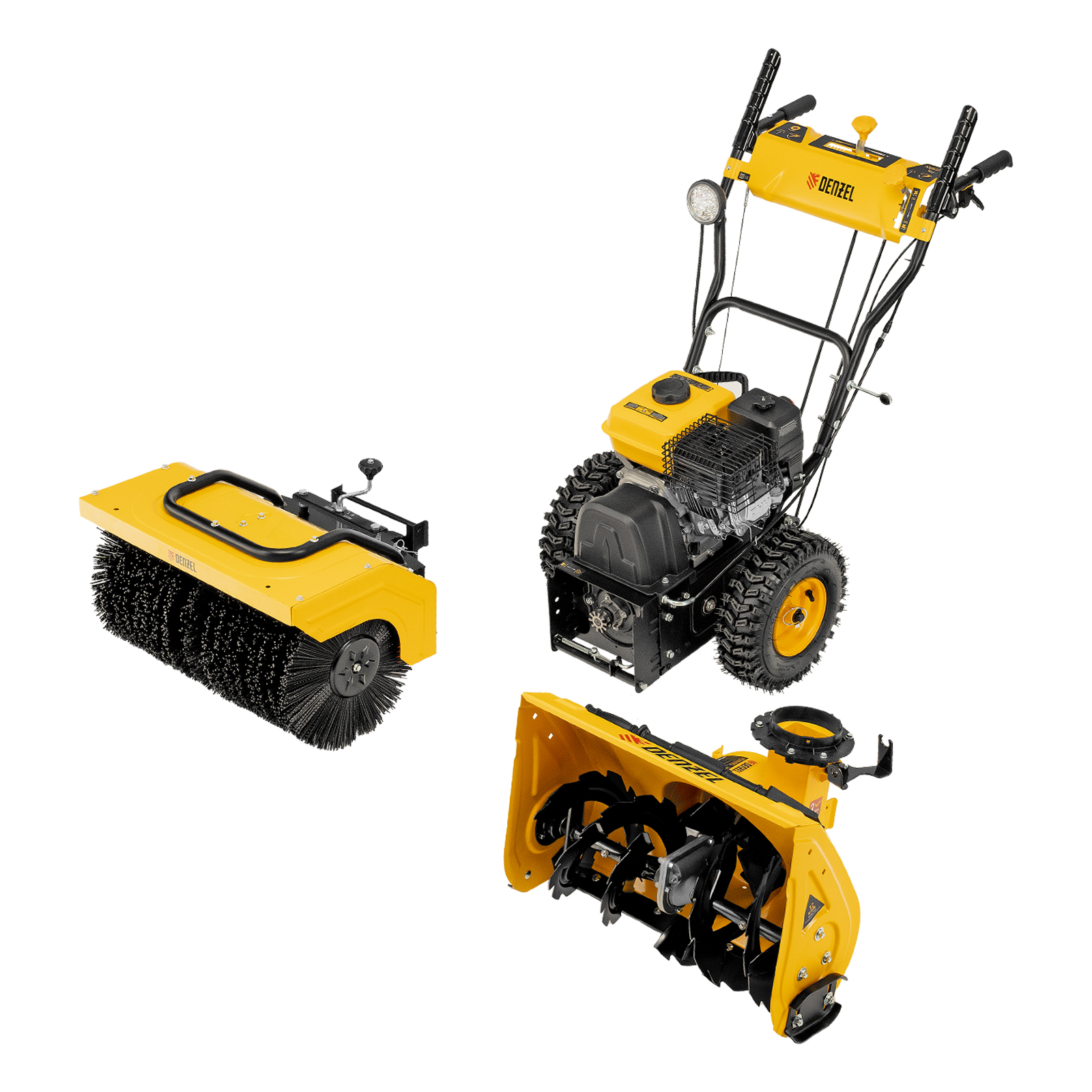 Гибридная снегоуборочная машина Denzel SWB-600 97661 с двигателем объемом 212 см3, ручным стартером и 2 насадками, предназначена для очистки территории от снега, а благодаря функции подметания справляется также с уборкой листвы, пыли и мусора. Ширина обработки щеткой составляет 700 мм (с учетом подрезателей Denzel 97102), ширина шнека — 560 мм при высоте захвата 430 мм, поэтому машина оптимальна для применения на дачном участке.