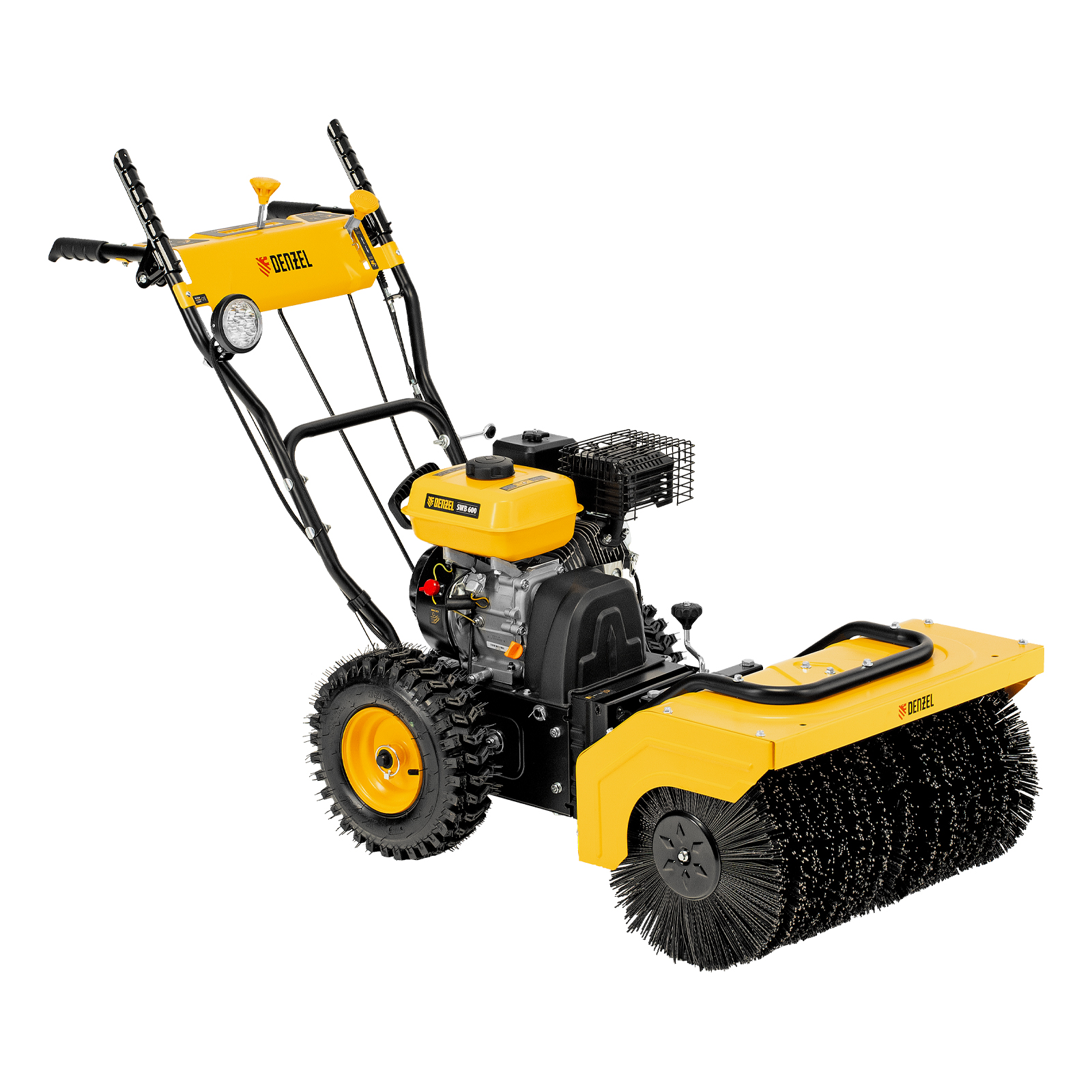 - 6 передач вперед и 2 назад — можно выбрать оптимальный темп движения в зависимости от количества и плотности убираемого снега или мусора.
