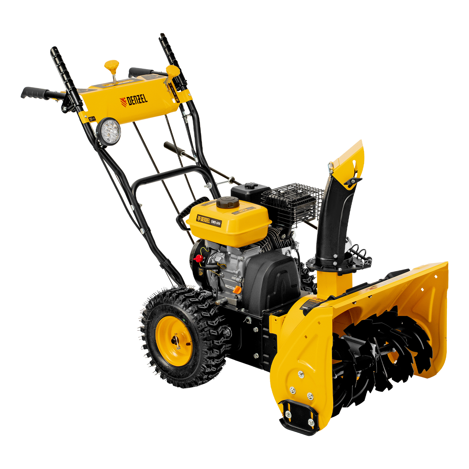 - Возможность увеличения ширины захвата 700 мм — на кожух шнека можно установить подрезатели Denzel 97102 (не входят в комплект поставки).