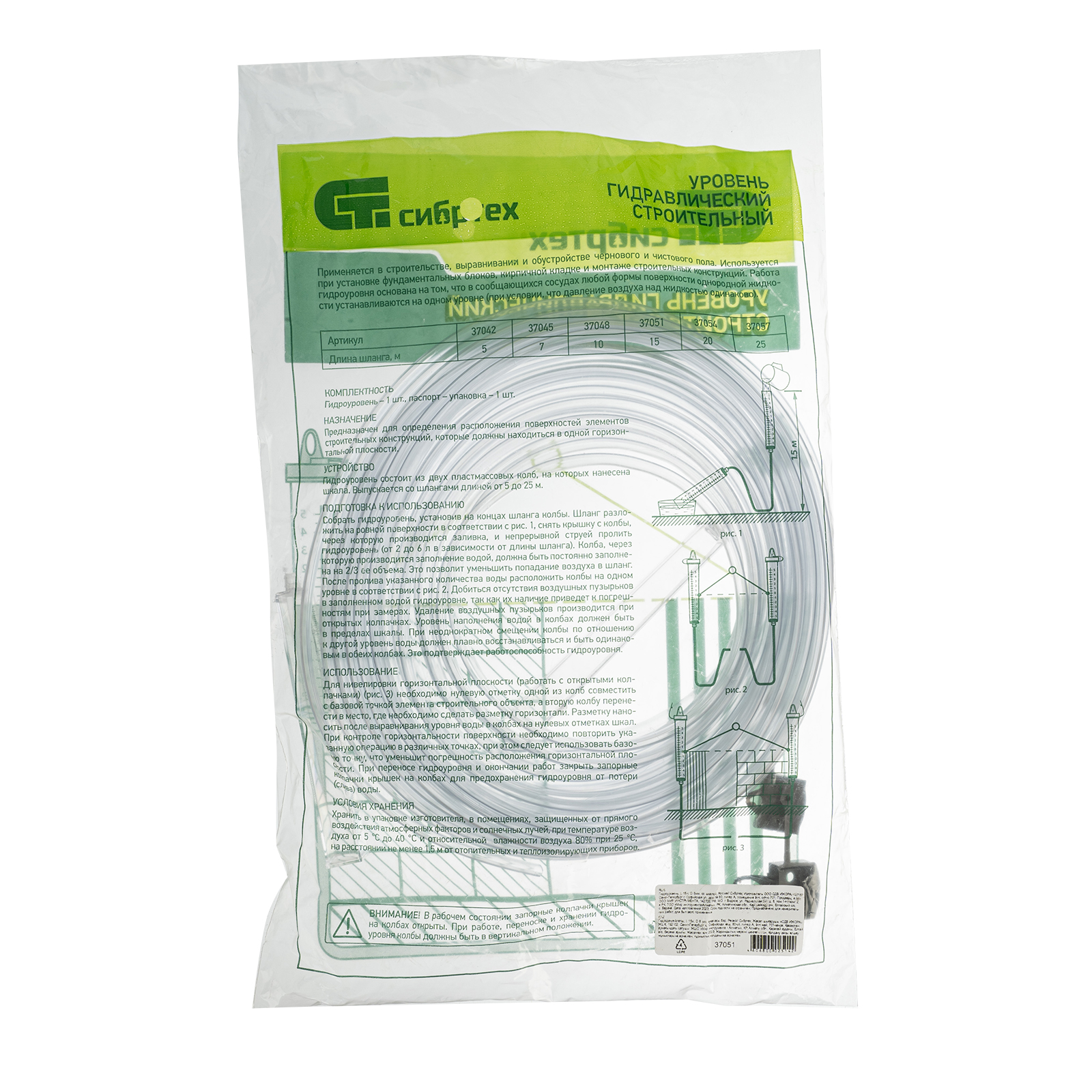 Гидроуровень Сибртех 37051 со шкалой и шлангом диаметром 8 мм используется для выравнивания объектов, расположенных на расстоянии до 15 м друг от друга. Простой и точный, он пригодится на строительной площадке и в быту: для изготовления опалубки, размещения предметов на одном уровне, стяжки пола, разметки стен под полки и других работ.