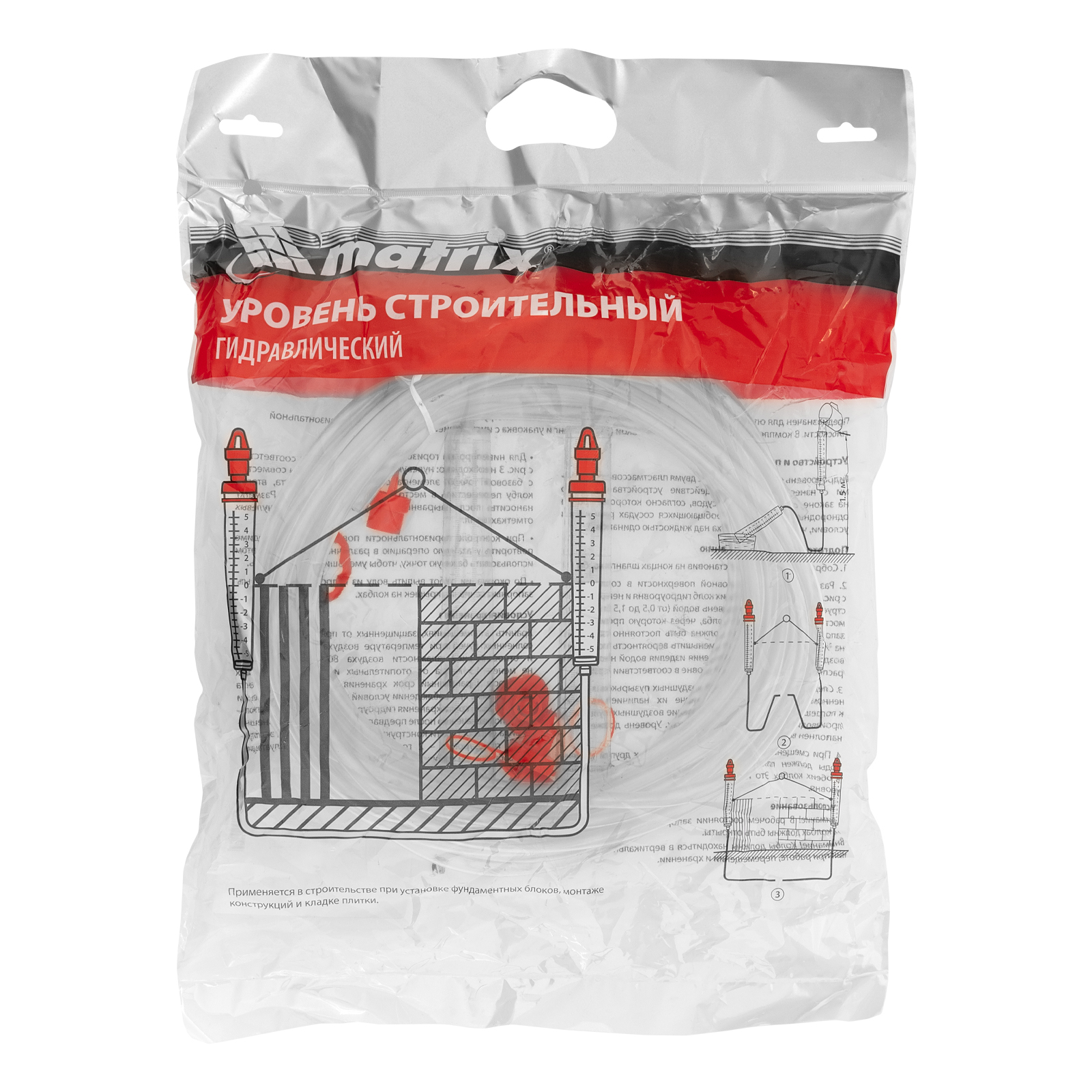 Гидроуровень Matrix 37093 с удлиненными колбами и рельефной градуировкой предназначен для выравнивания объектов на расстоянии до 15 м. Используется при проведении ремонтно-строительных работ: изготовлении опалубки, установке фундамента, кладке плитки. Особо светлые колбы с рельефной градуировкой облегчают считывание результатов измерения.