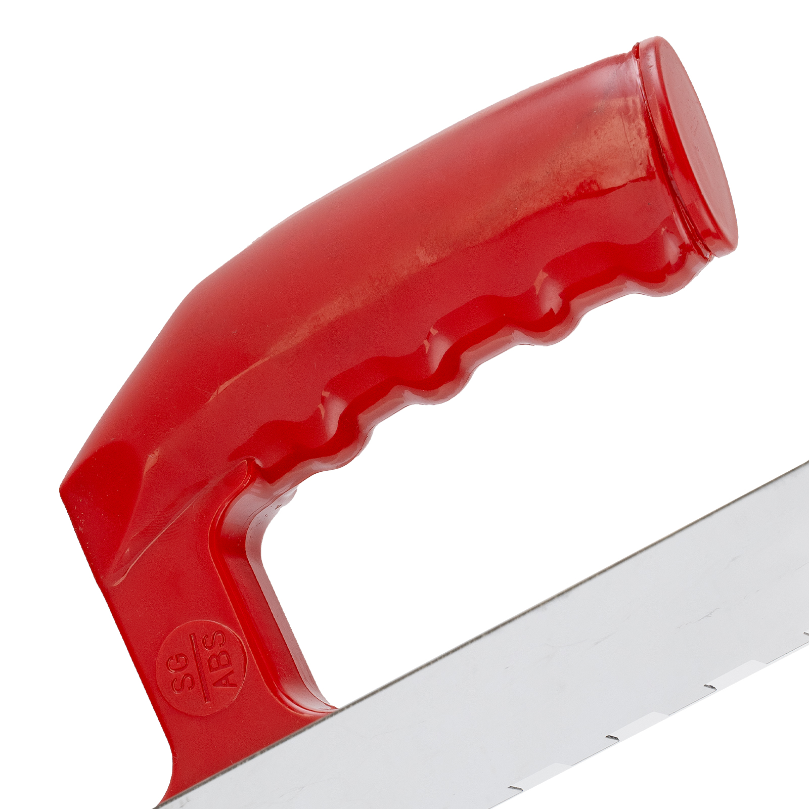- Долговечность — гладилка из нержавеющей стали не боится коррозии, обладает оптимальным соотношением упругости и прочности.
