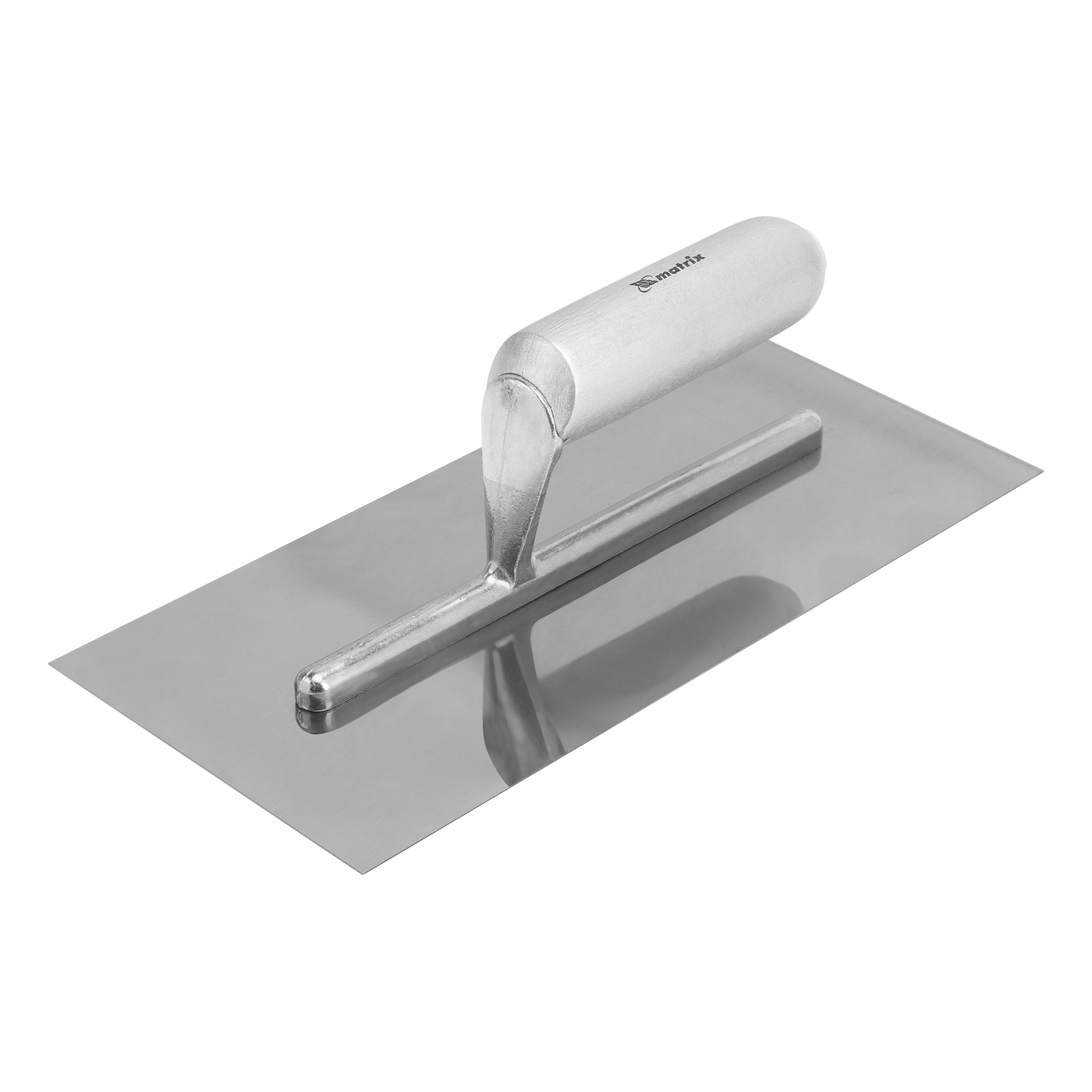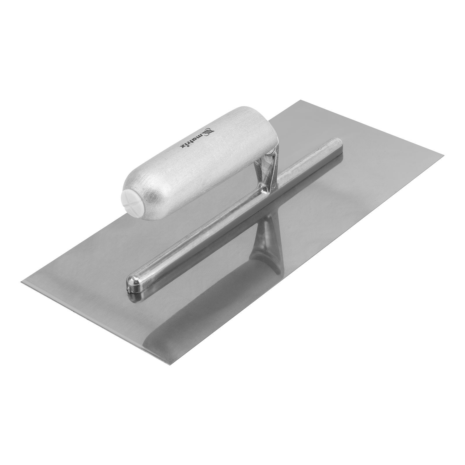 Стальная гладилка Matrix 86732 размером 280 x 130 мм, с зеркальной полировкой и деревянной ручкой, используется для нанесения клеевых составов, штукатурки и других строительных смесей. Позволяет создать идеально ровное покрытие.