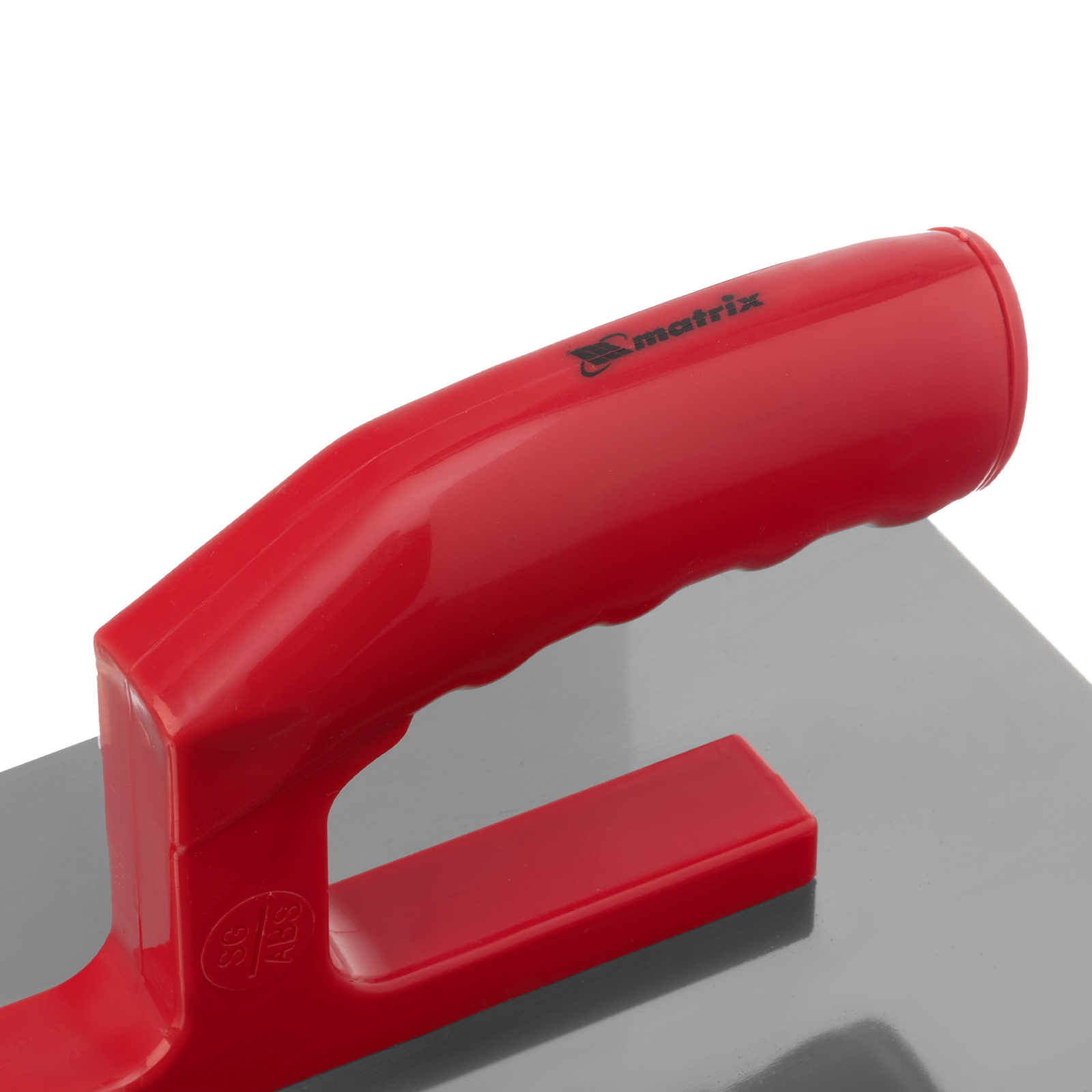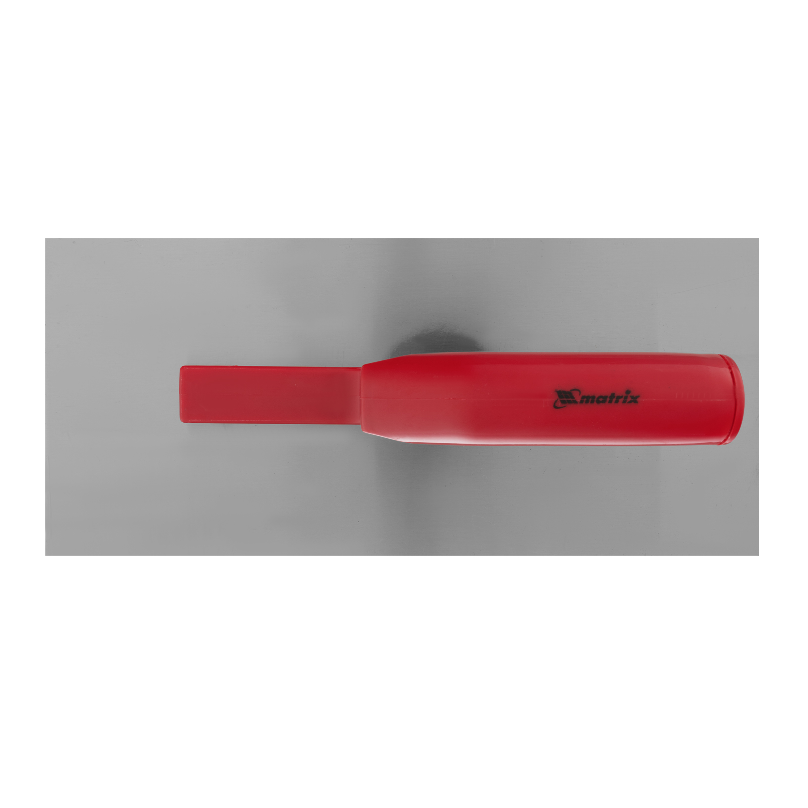 Стальная гладилка Matrix 86774 размером 280 x 130 мм, с зеркальной полировкой и пластмассовой ручкой, предназначена для равномерного распределения штукатурных растворов и клеевых составов по поверхности. Используется во время проведения отделочных работ.
