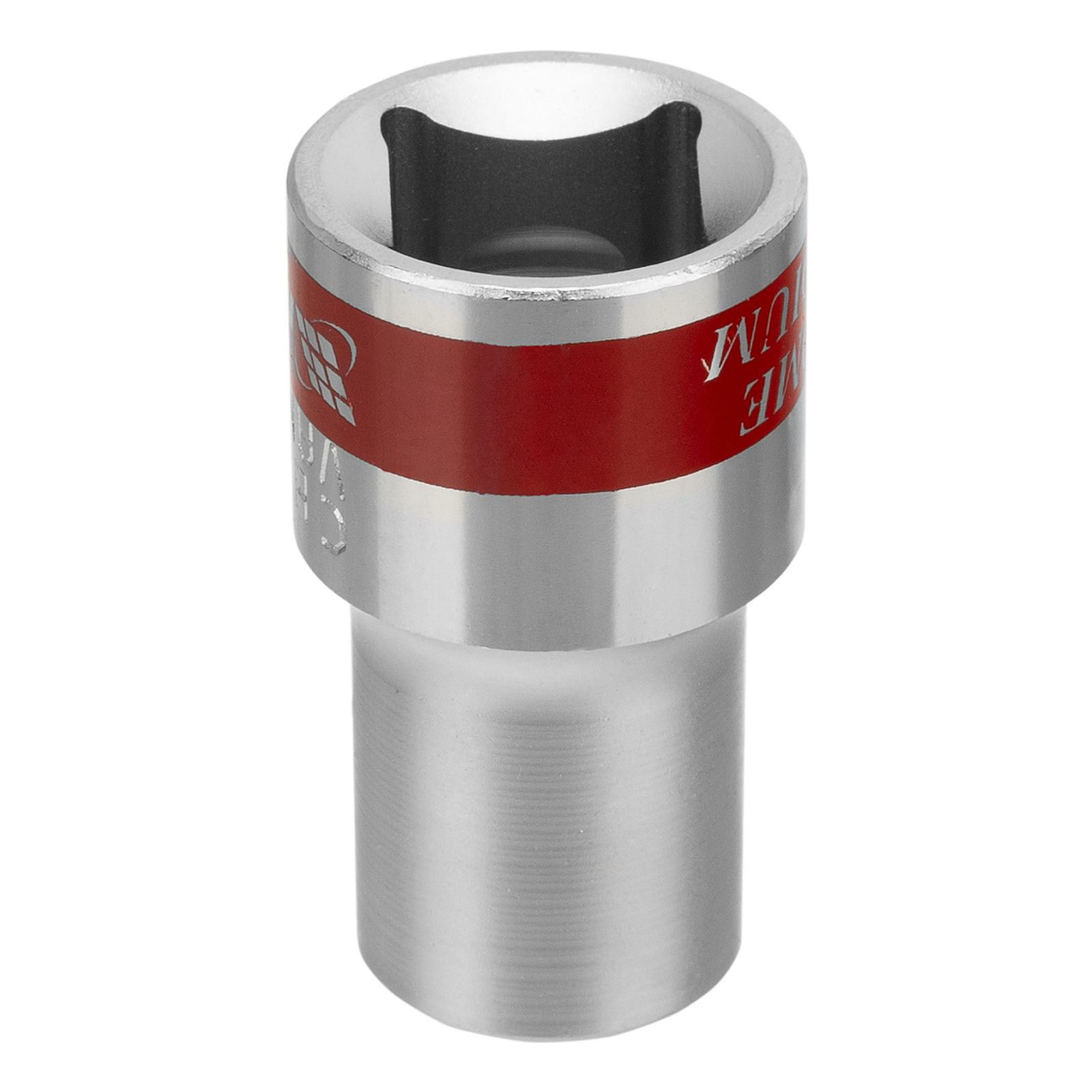 - Быстрый поиск насадки среди других инструментов — торцевая головка маркирована красной полосой, на корпус нанесено обозначение типоразмера.