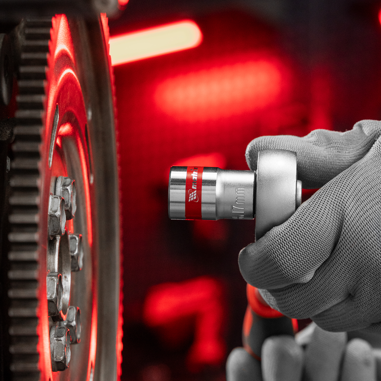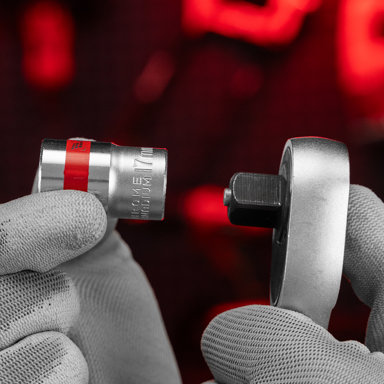 - Быстрый поиск среди других насадок — торцевая головка маркирована красной полосой, на корпусе указан типоразмер.