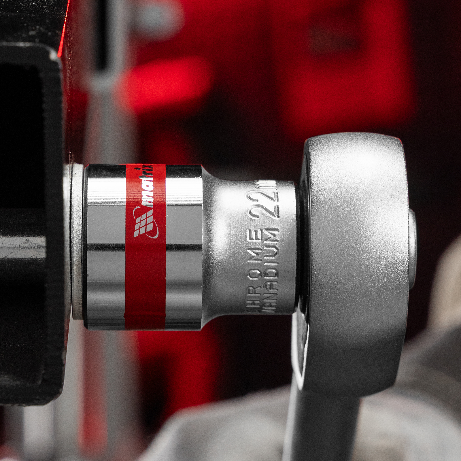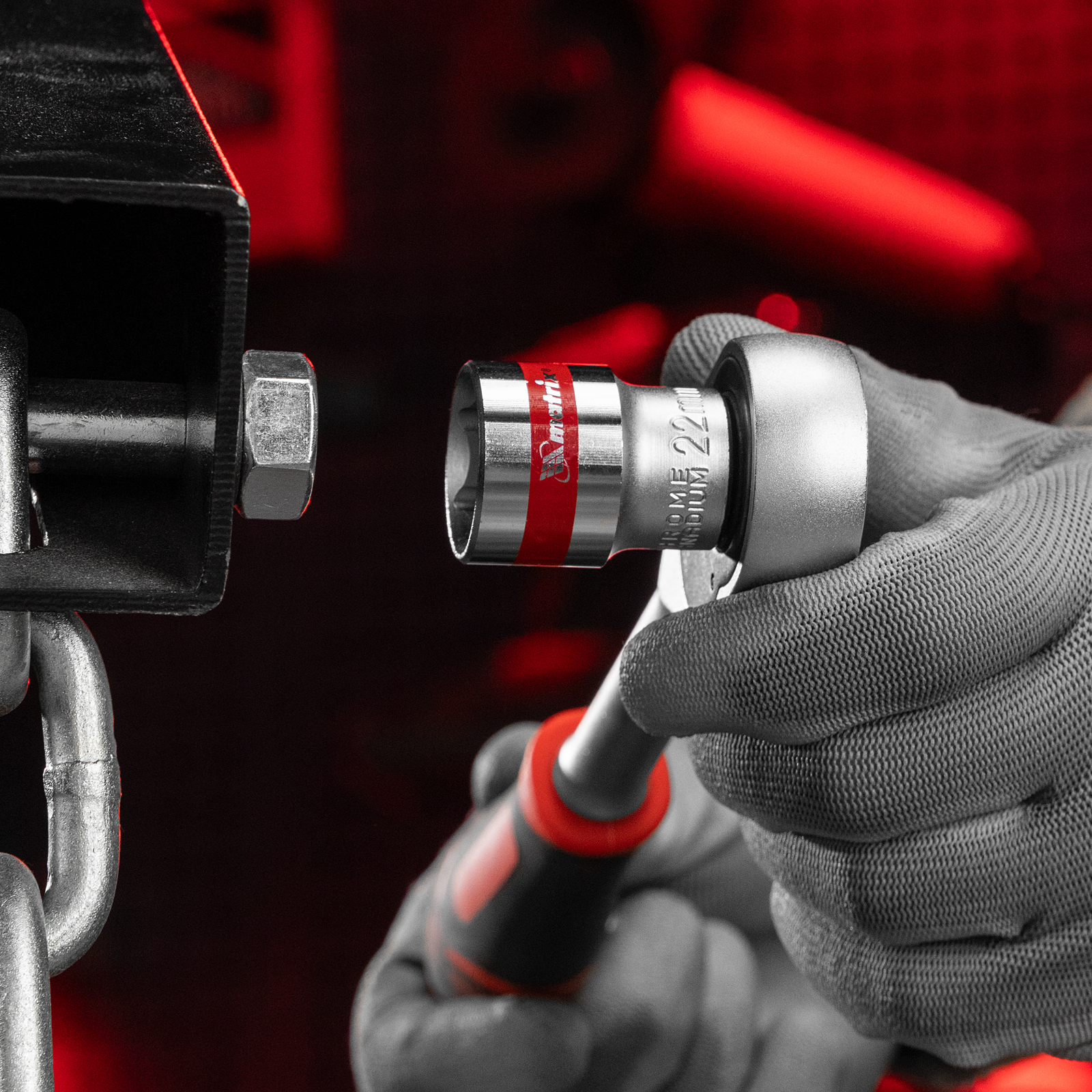 - Быстрый поиск среди других насадок — торцевая головка маркирована красной полосой, на корпусе указан типоразмер.