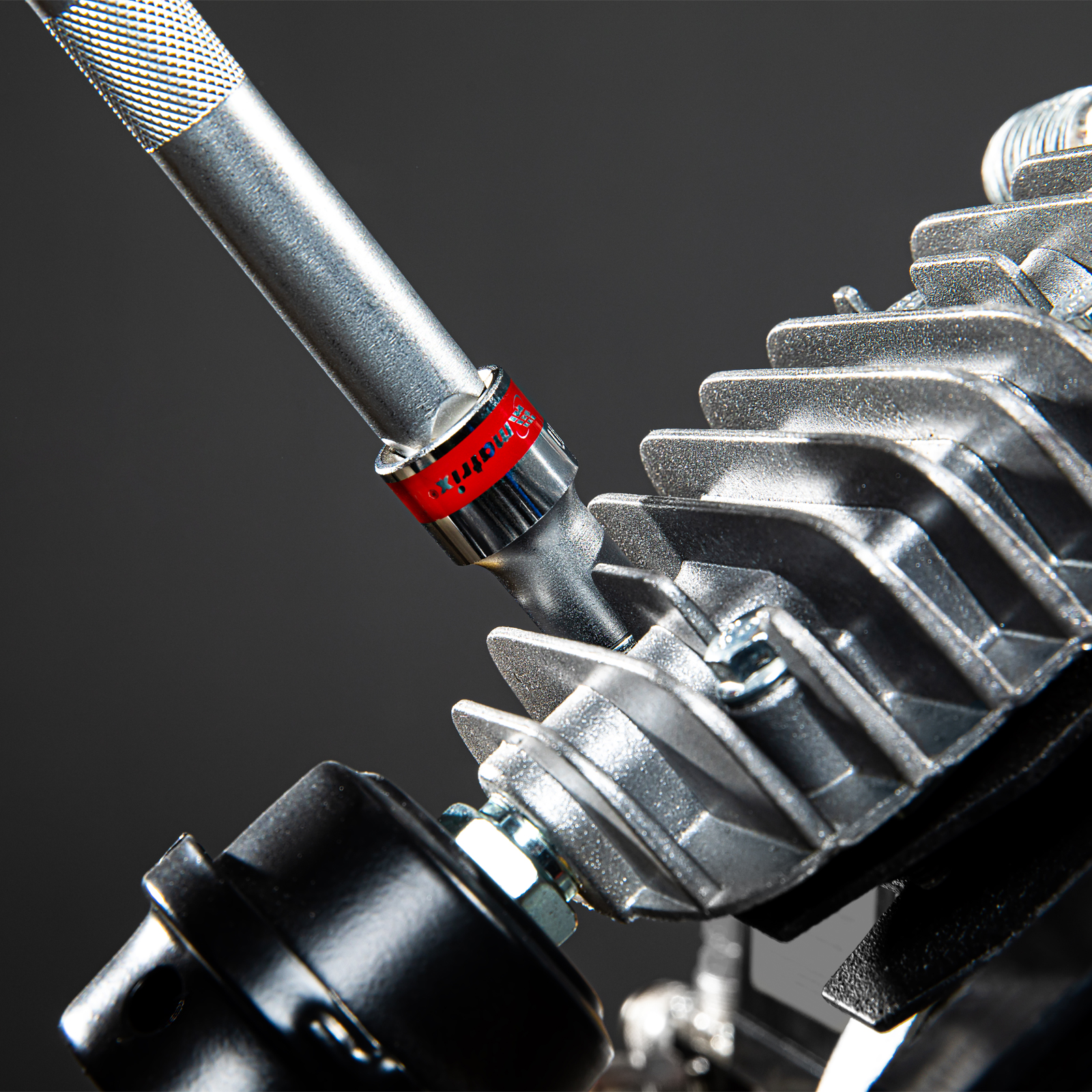 - Быстрый поиск среди других насадок — торцевая головка маркирована красной полосой, на корпусе указан типоразмер.