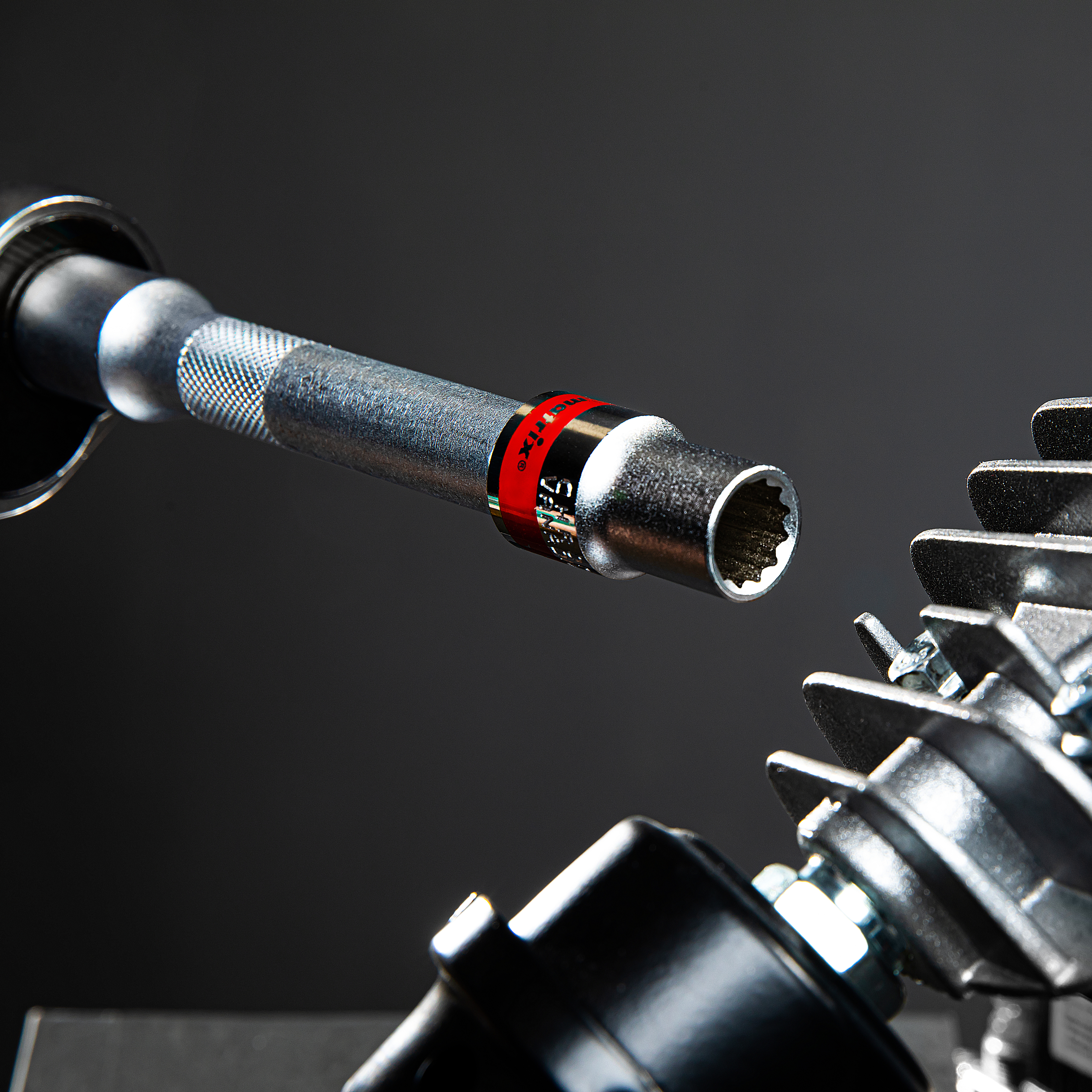 - Быстрый поиск среди других насадок — торцевая головка маркирована красной полосой, на корпусе указан типоразмер.