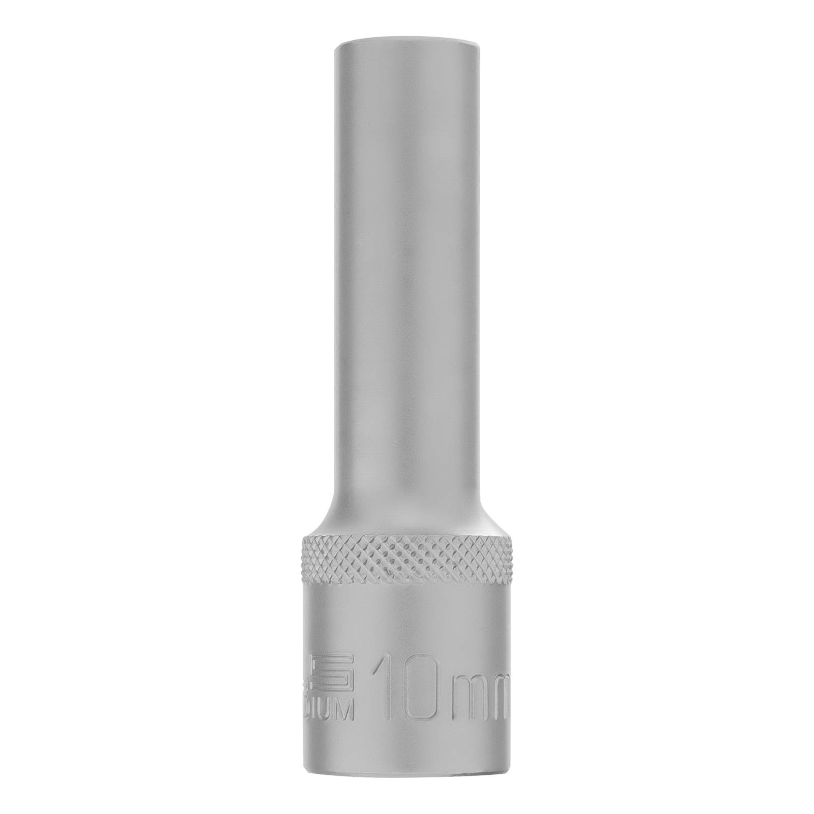 Удлиненная 6-гранная торцевая головка Stels 13839 из стали CrV, размером 10 мм, под квадрат 1/2 дюйма, предназначена для монтажа и демонтажа болтовых соединений. Удлиненный профиль позволяет работать в труднодоступных местах, а также закручивать и откручивать крепежи на высоких шпильках.