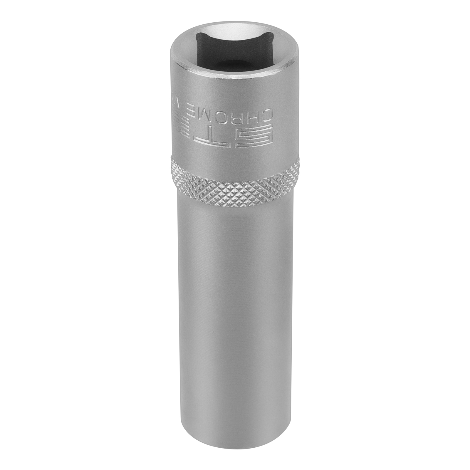 Удлиненная 6-гранная торцевая головка Stels 13847 из стали CrV, размером 14 мм, под квадрат 1/2 дюйма, предназначена для монтажа и демонтажа болтовых соединений. Удлиненный профиль позволяет работать в труднодоступных местах, а также закручивать и откручивать крепежи на высоких шпильках.