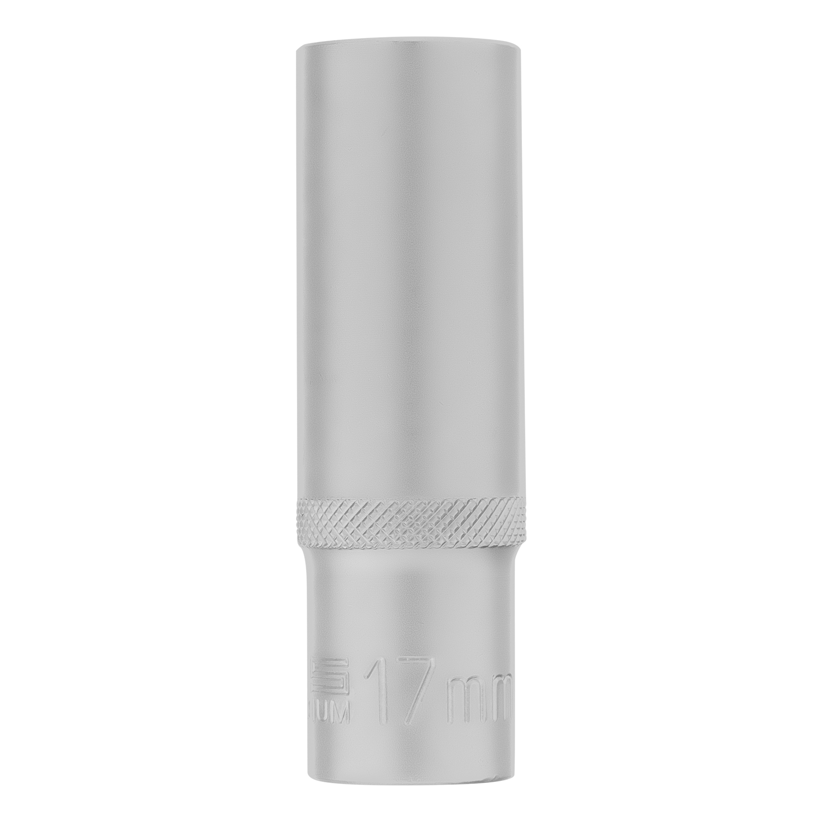 Удлиненная 6-гранная торцевая головка Stels 13849 из стали CrV, размером 17 мм, под квадрат 1/2 дюйма, предназначена для монтажа и демонтажа болтовых соединений. Удлиненный профиль позволяет работать в труднодоступных местах, а также закручивать и откручивать крепежи на высоких шпильках.
