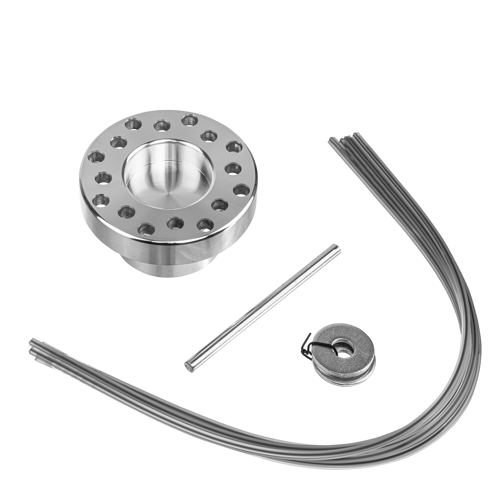 - Универсальность — головка комплектуется шайбами различных типоразмеров, что позволяет устанавливать ее на триммеры с разными типами крепления.