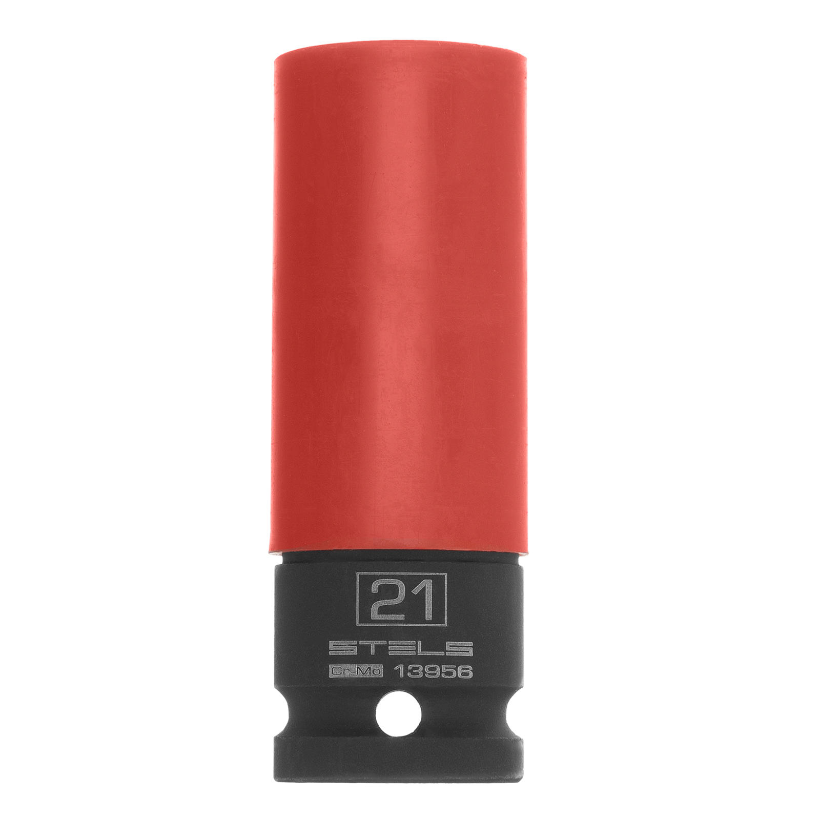 Ударная шестигранная головка Stels 13956 размером 21 мм, с посадочным квадратом 1/2 дюйма, устанавливается на пневматический или электрический гайковерт для работ с колесными дисками. Она легко выдерживает высокие ударные нагрузки и подходит для профессионального применения.