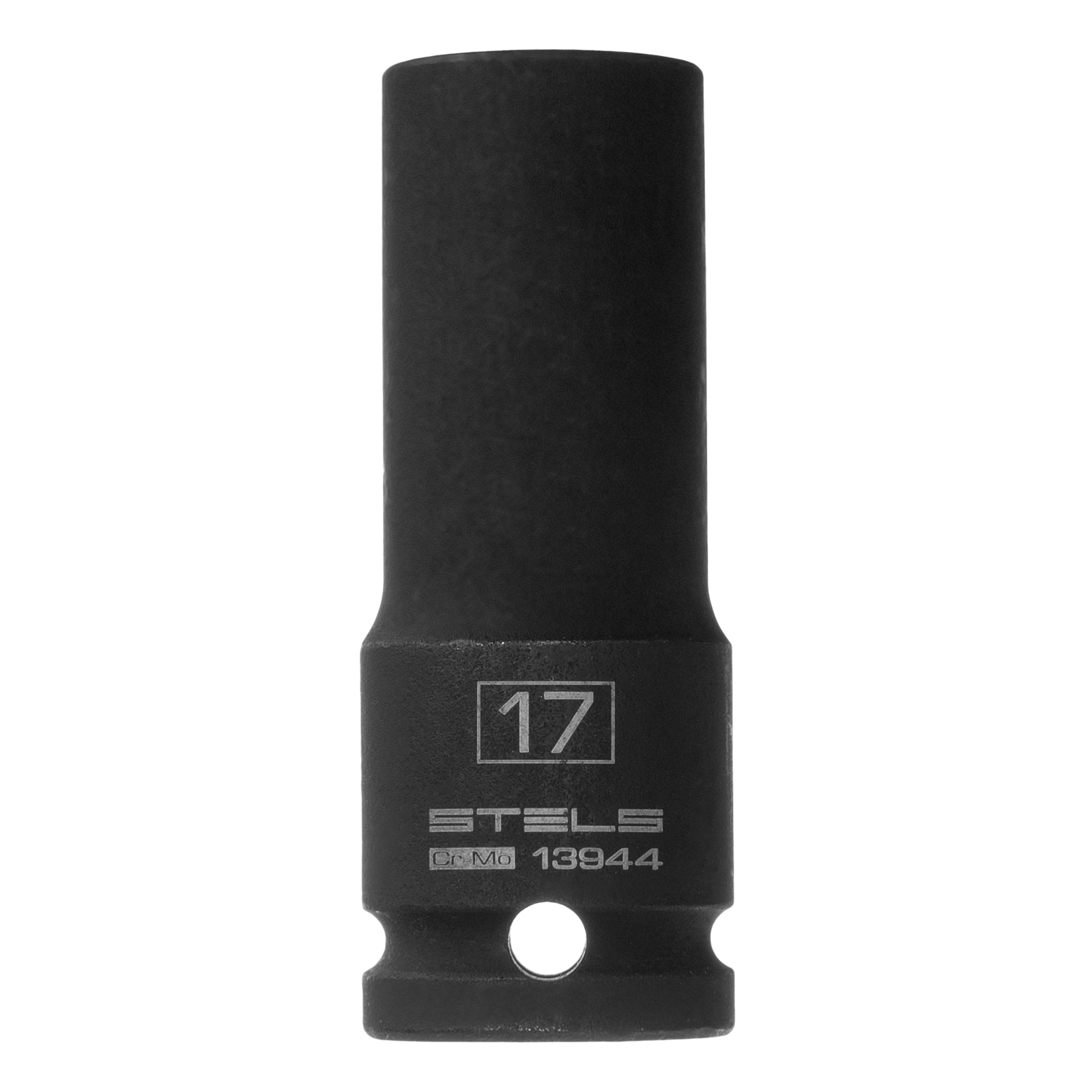 Ударная удлиненная шестигранная головка Stels 13944 размером 17 мм, из стали CrMo, с присоединительным квадратом 1/2 дюйма, предназначена для монтажа и демонтажа резьбовых соединений с помощью пневматического или электрического гайковерта. Подходит для профессионального применения на строительной площадке и в автомастерской, т.к. выдерживает интенсивную эксплуатацию с высокими динамическими нагрузками. Головка имеет удлиненный профиль, что облегчает работу в труднодоступных местах.